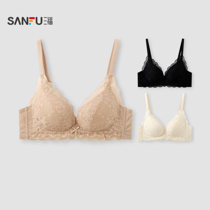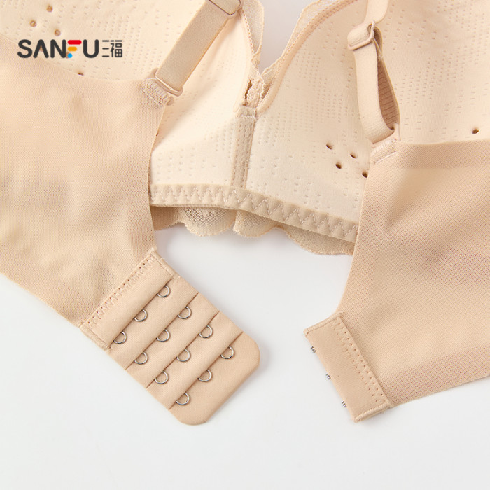【透氣洞洞杯】三福內衣女士薄杯無鋼圈聚攏文胸蕾絲性感法式胸罩