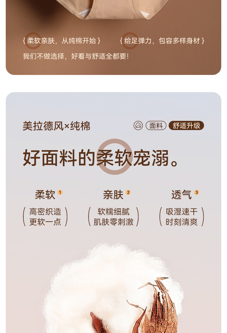 無痕內褲女士純棉100%全棉抗菌中腰美拉德運動秋冬大碼女生三角褲