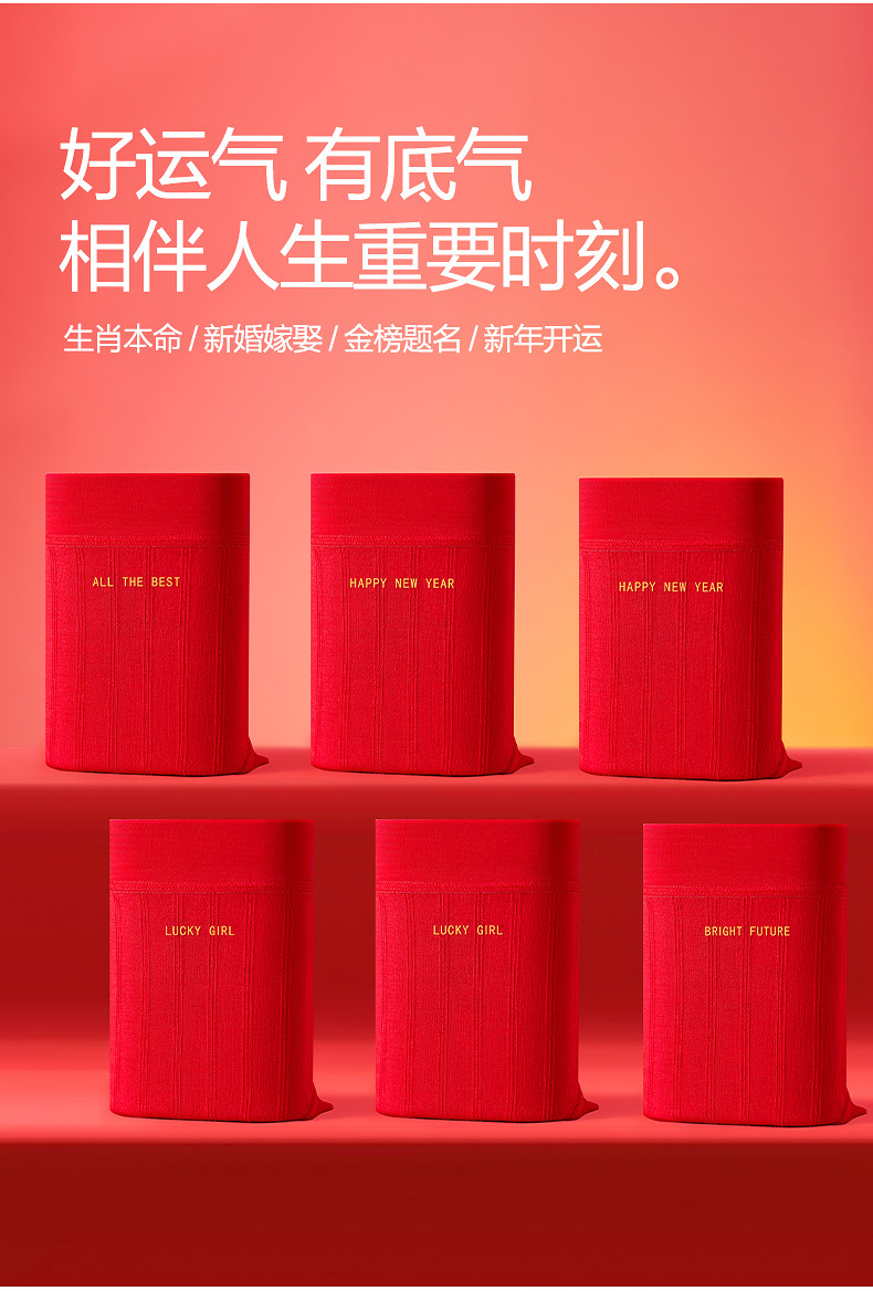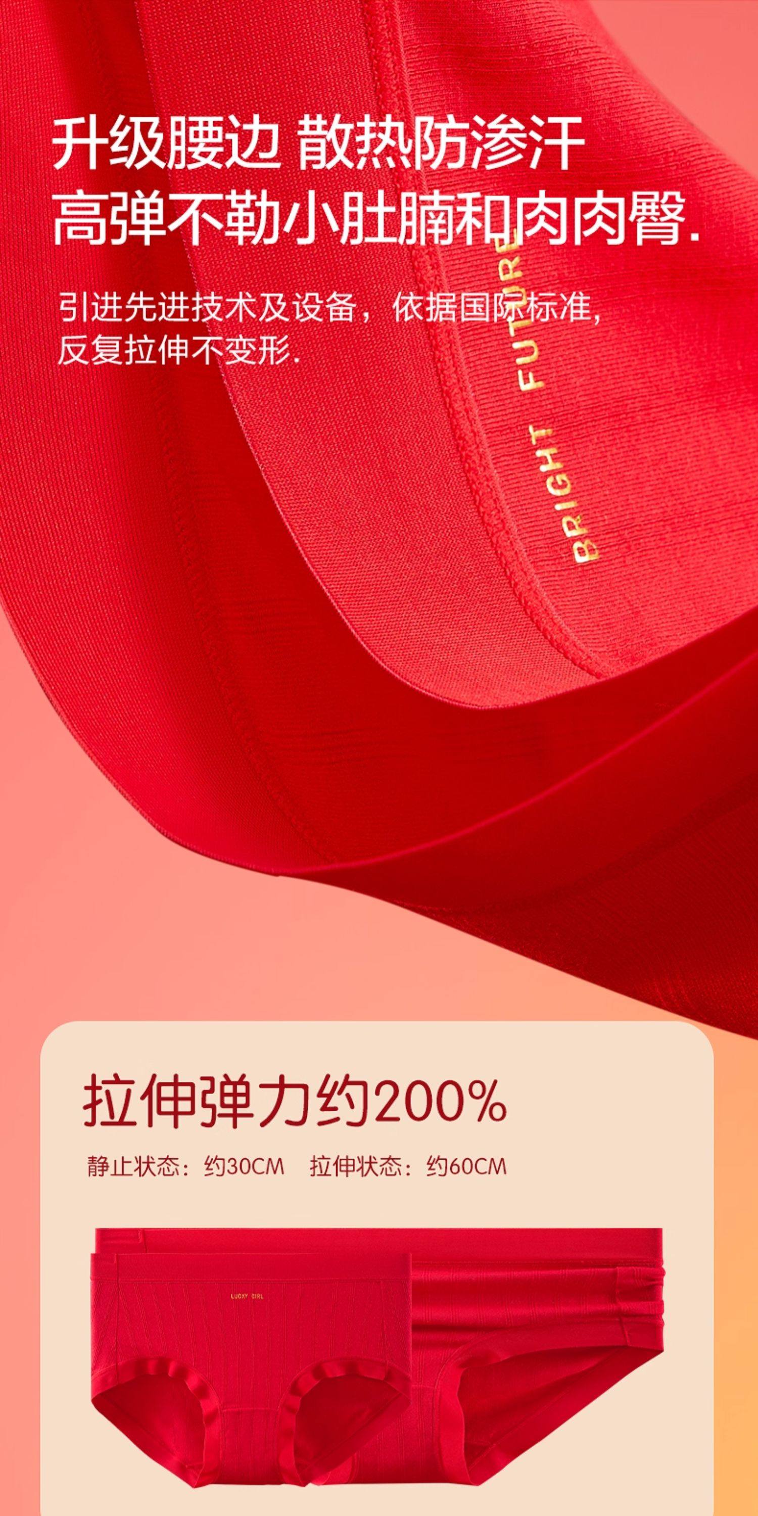 恒源祥本命年內褲女純棉抗菌無痕莫代爾大紅色蛇年結婚禮物三角褲