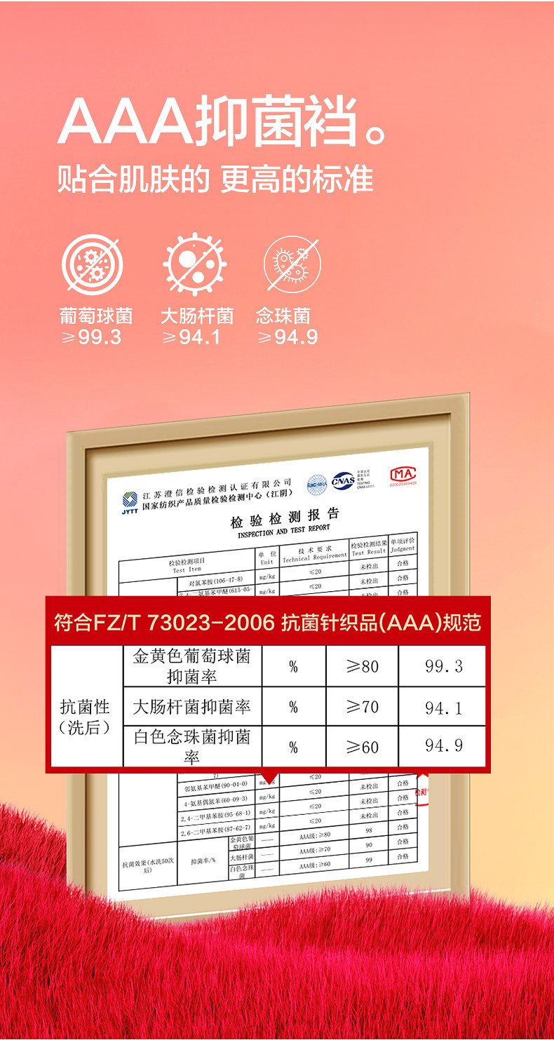 | 襠部材質成分 | 棉95% 聚氨酯彈性纖維(氨綸)5% |