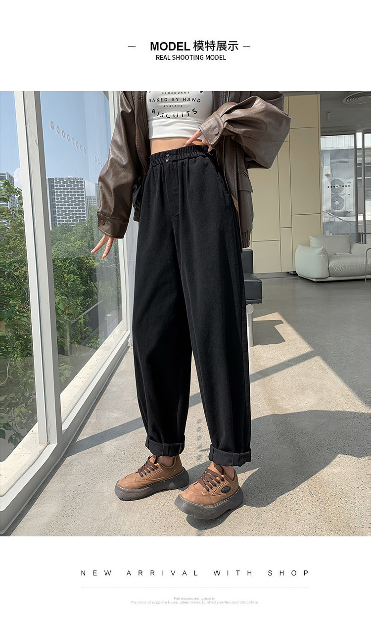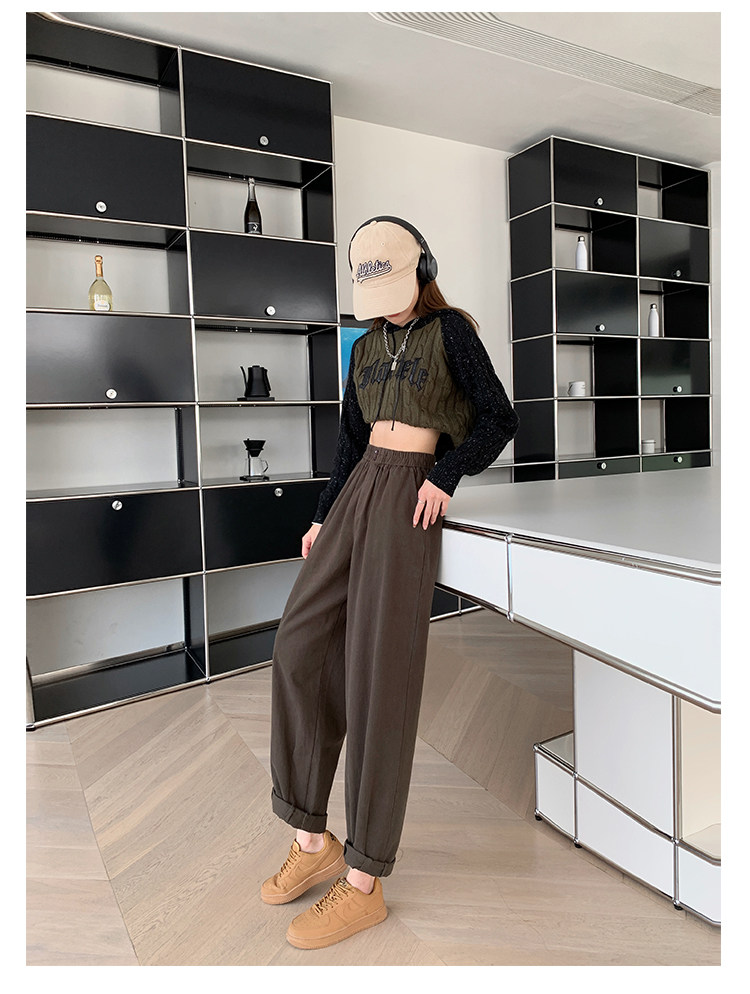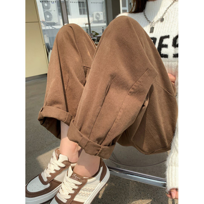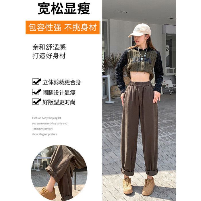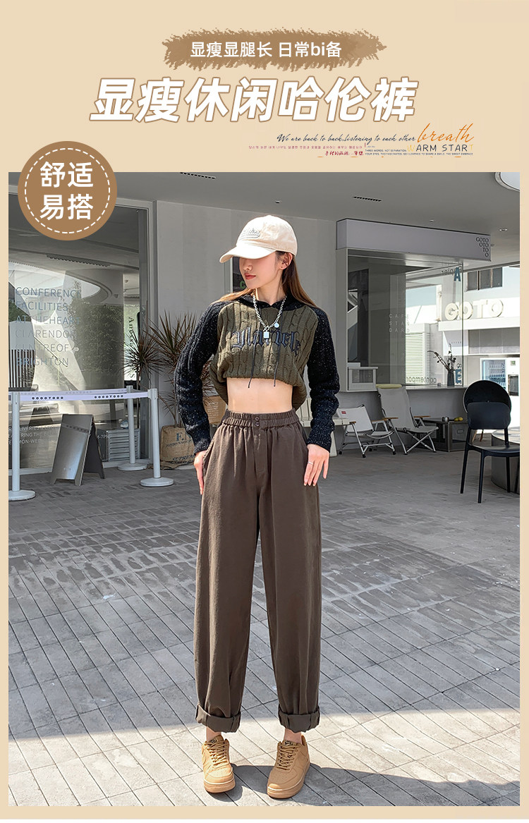 日系哈倫褲女春秋2026新款松緊高腰顯瘦寬鬆休閒小個子蘿蔔老爹褲