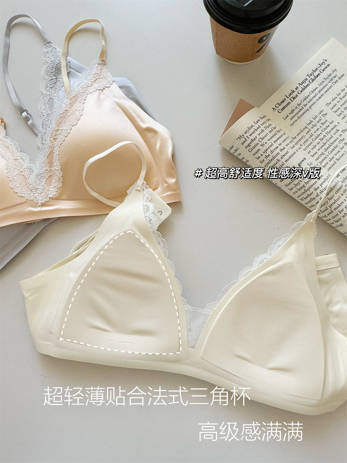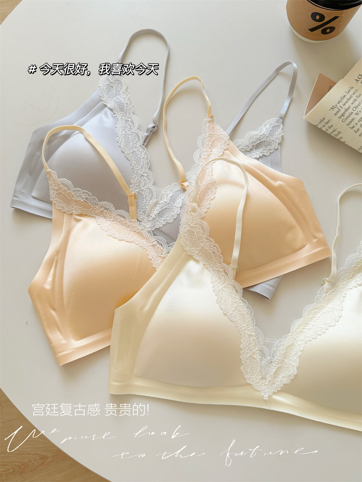 【法式杯】蕾絲三角杯內衣女夏季薄款胸罩細肩帶緞面文胸2025新款
