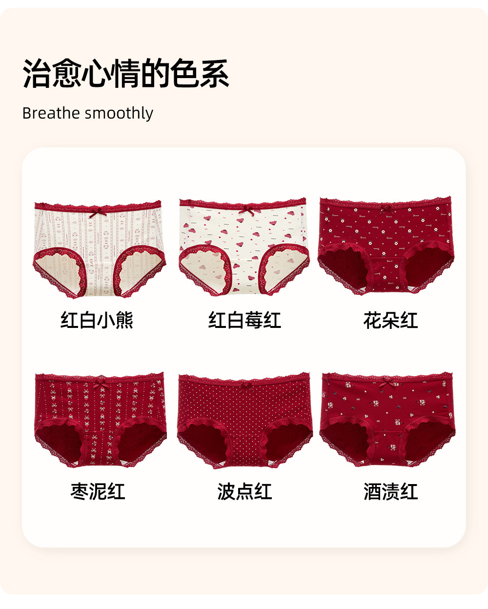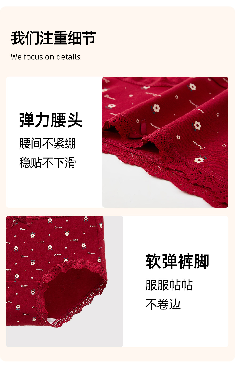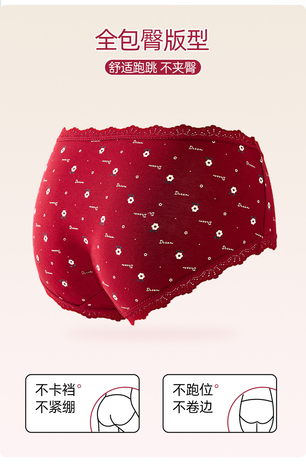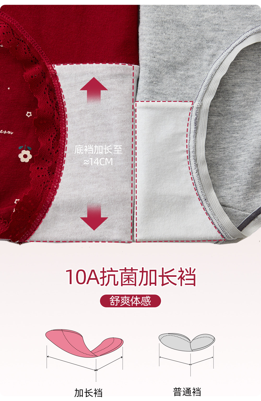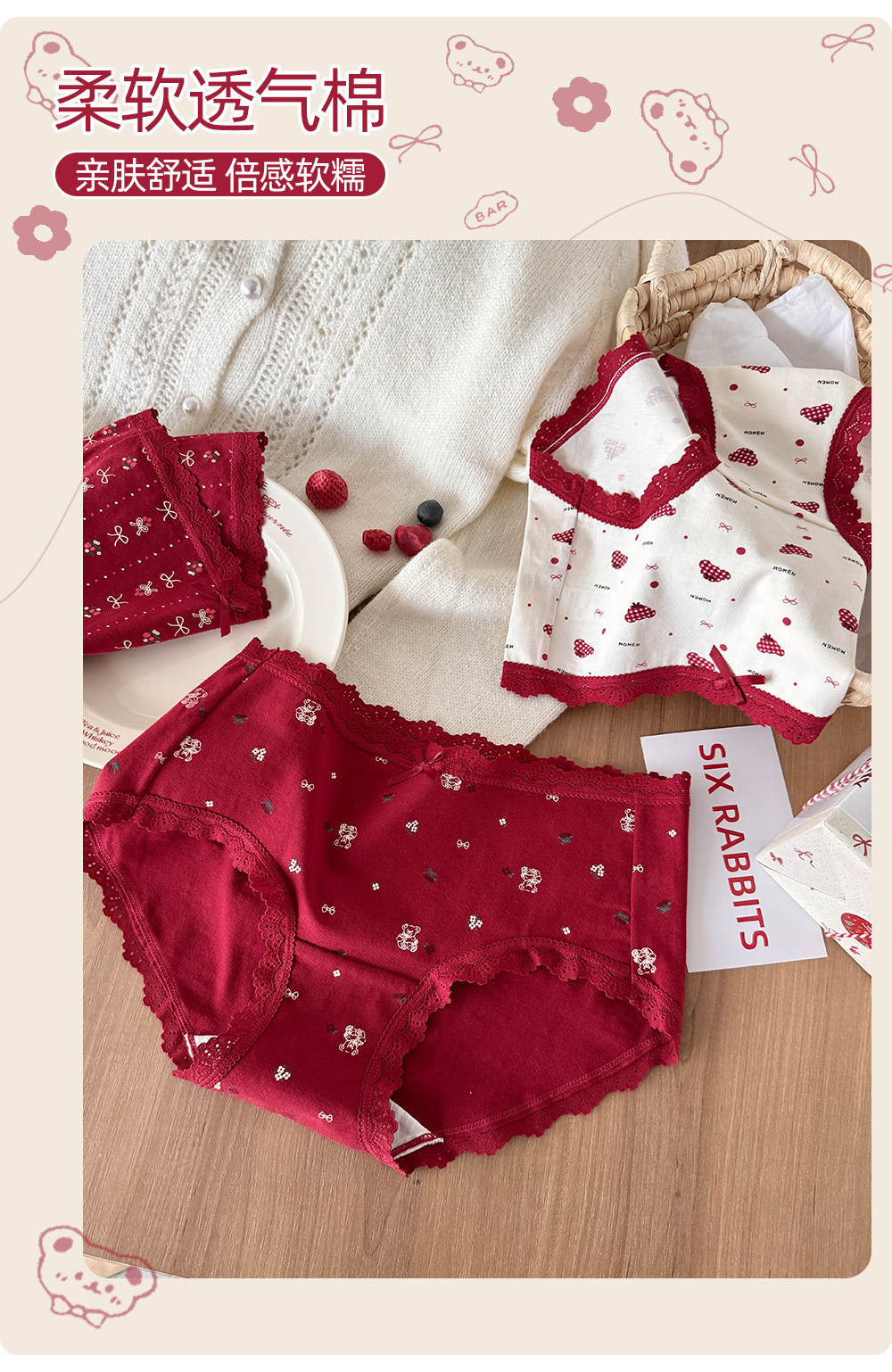 六隻兔子3條裝紅色內褲女10A抑菌襠加長純棉襠中腰本命年三角褲