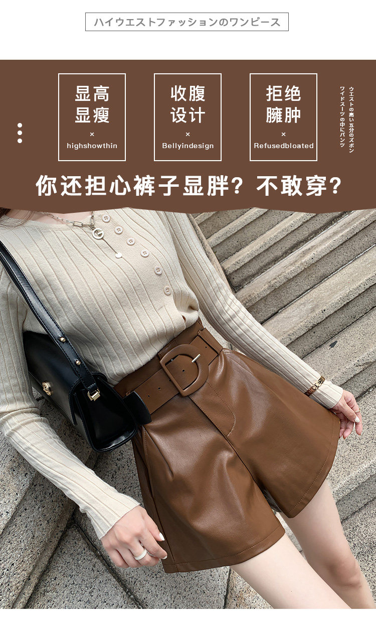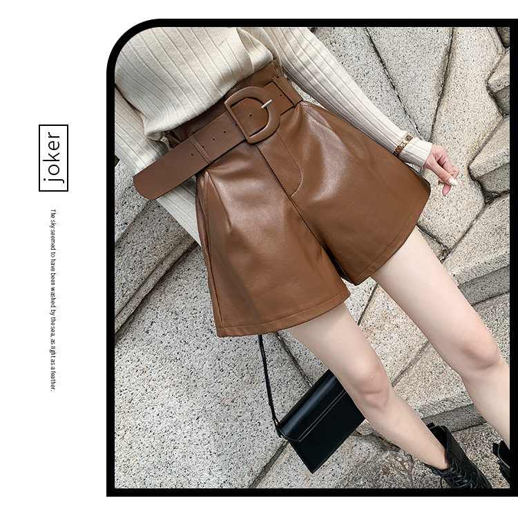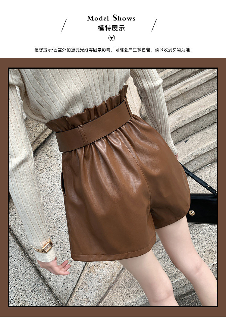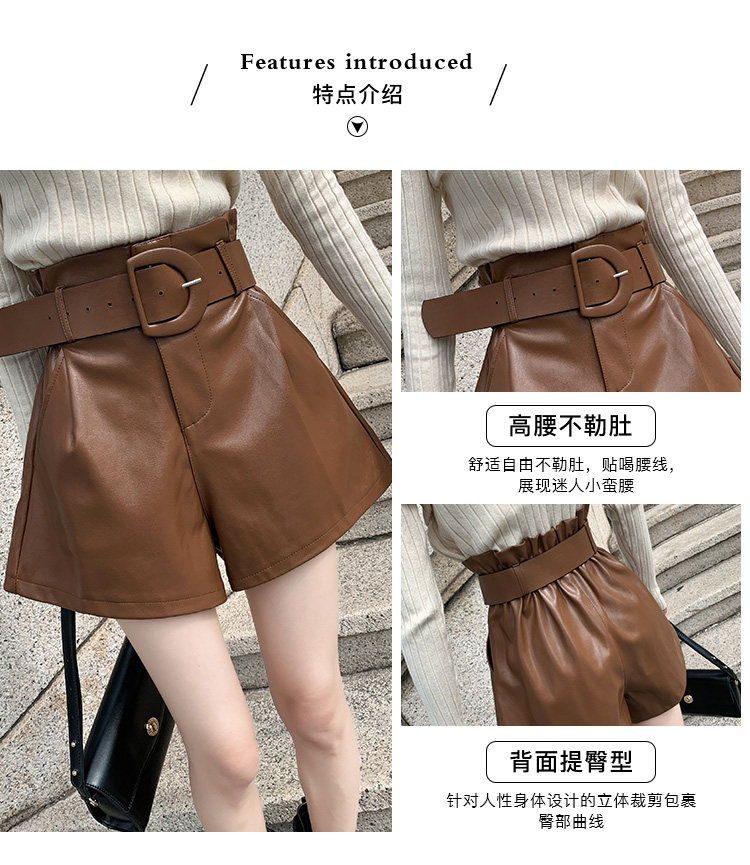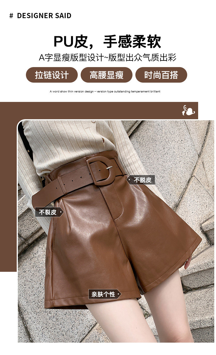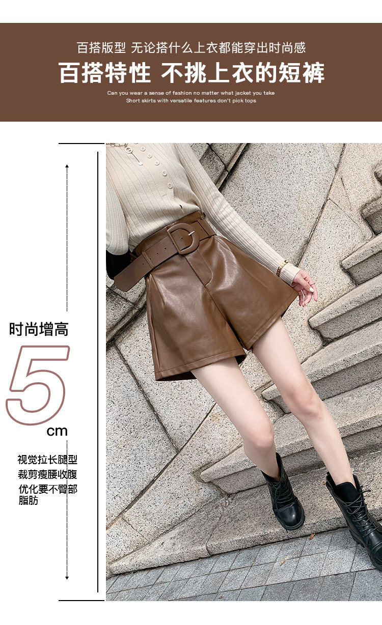 棕色春秋冬季新款配靴子的褲衩濶腿外穿黑色皮短褲女靴褲