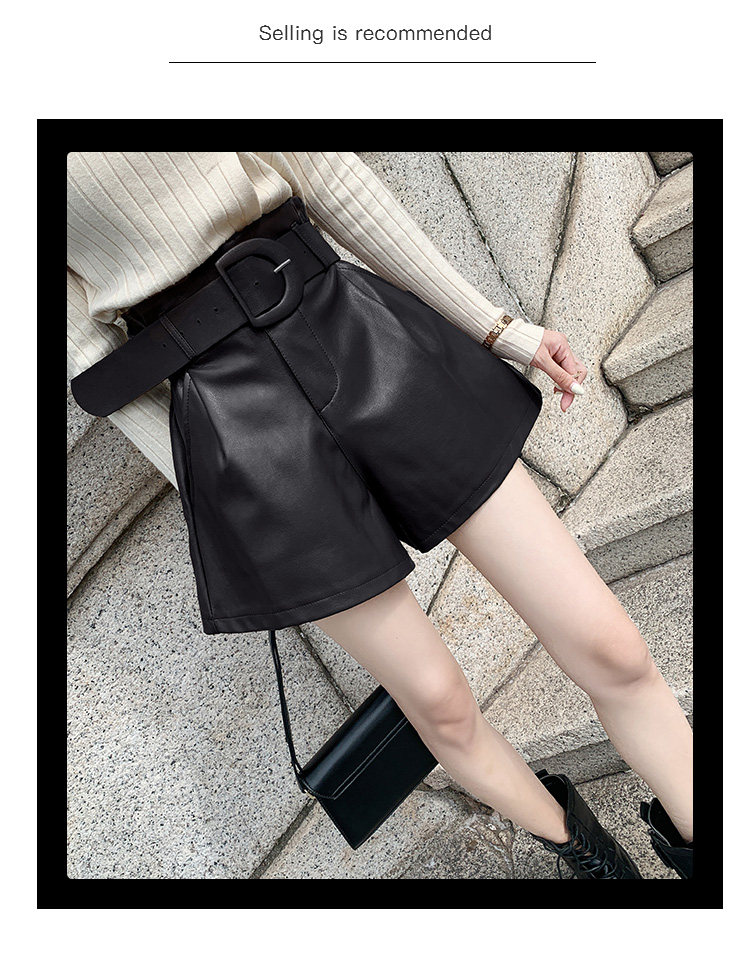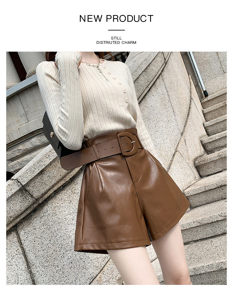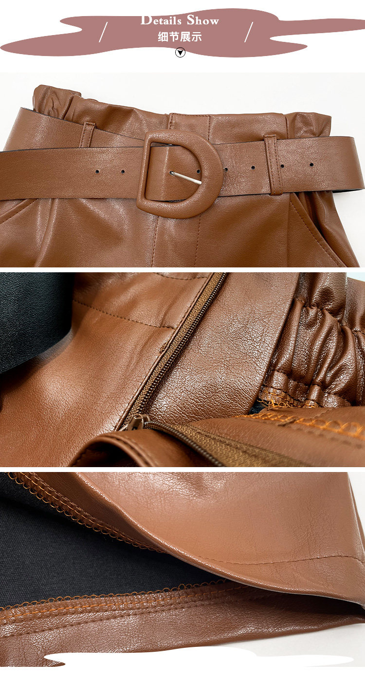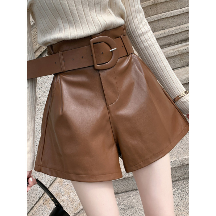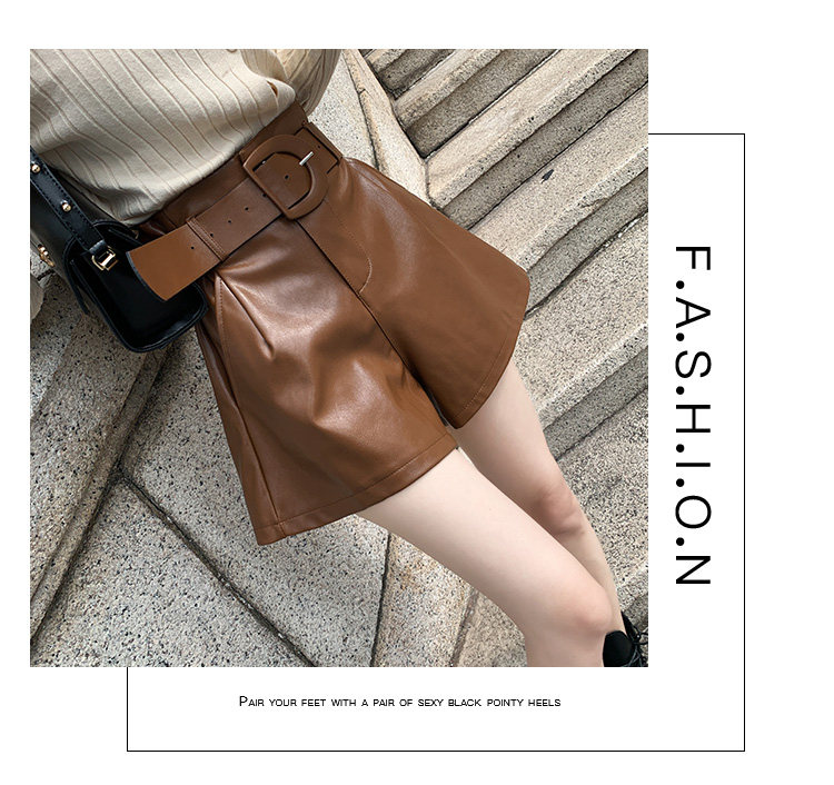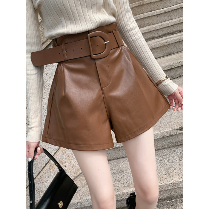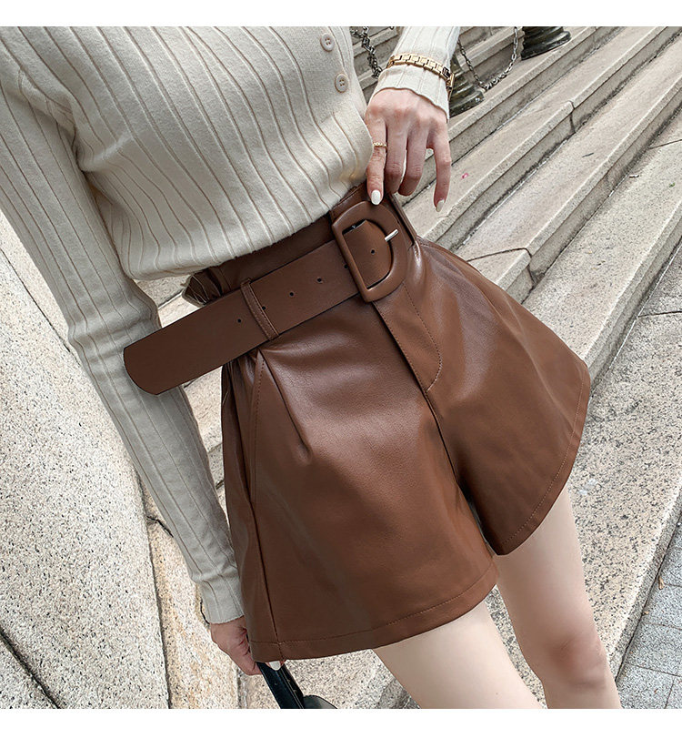 棕色春秋冬季新款配靴子的褲衩濶腿外穿黑色皮短褲女靴褲