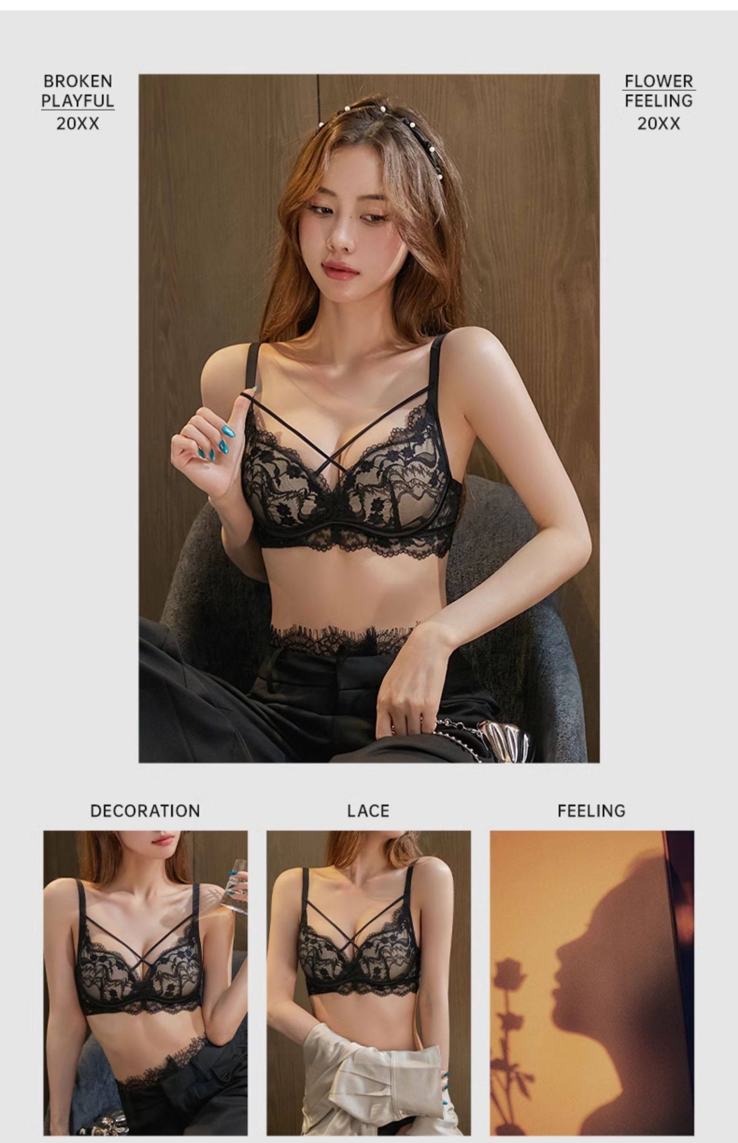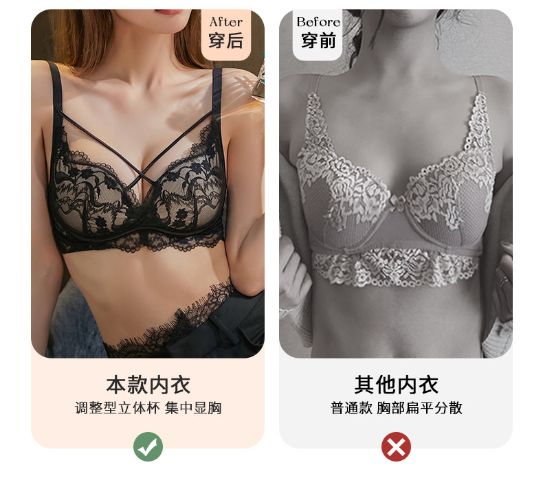 內衣女性感蕾絲新款小胸聚攏顯大收副乳防下垂調整型文胸套裝夏季