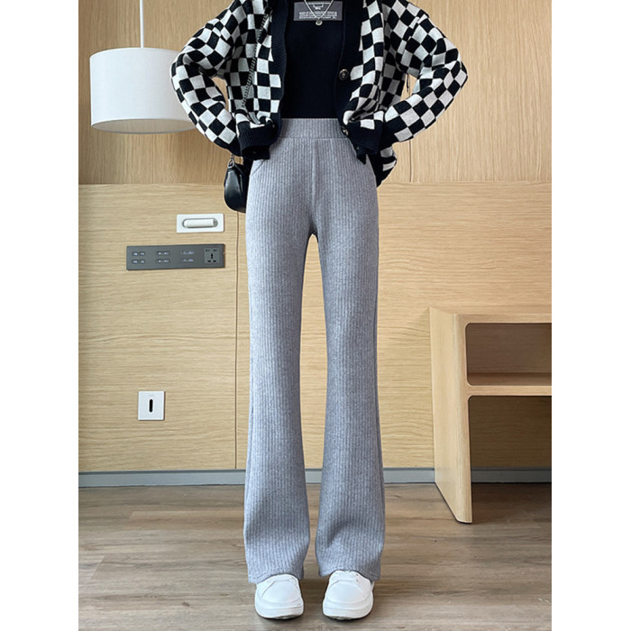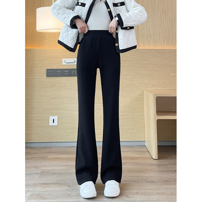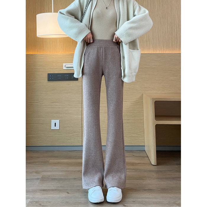 145矮小個子微喇叭褲女秋冬季加絨褲子150高腰顯瘦羊絨針織濶腿褲