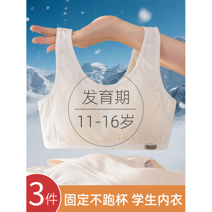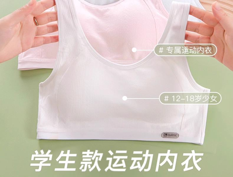 少女發育期背心內衣初中學生純棉文胸運動高中固定杯跑步防震女童