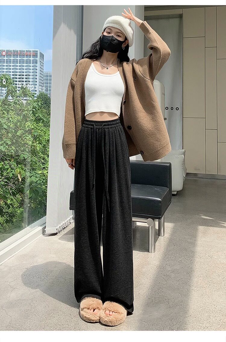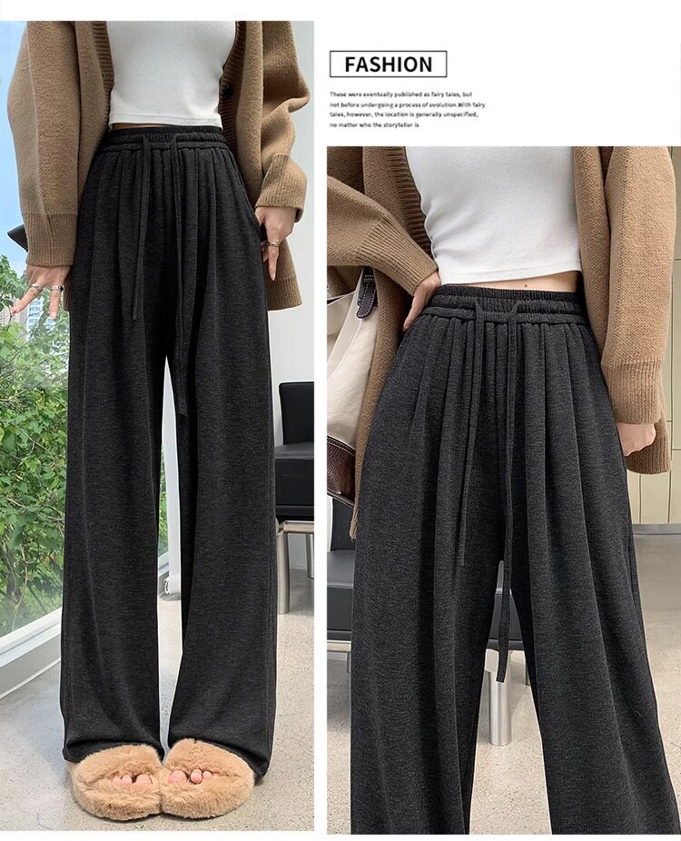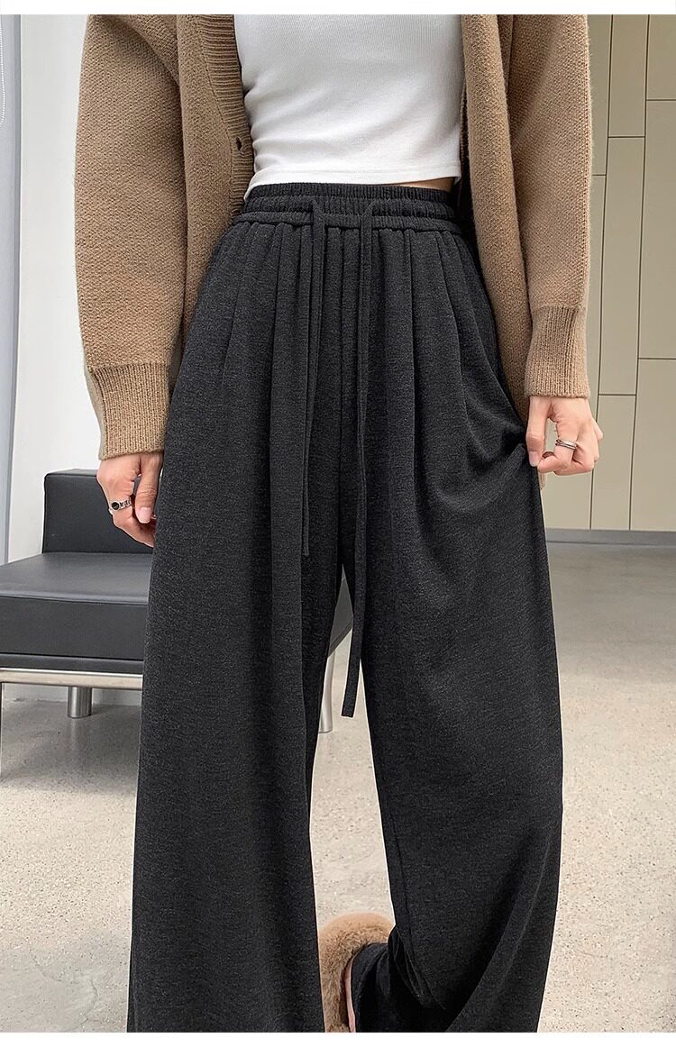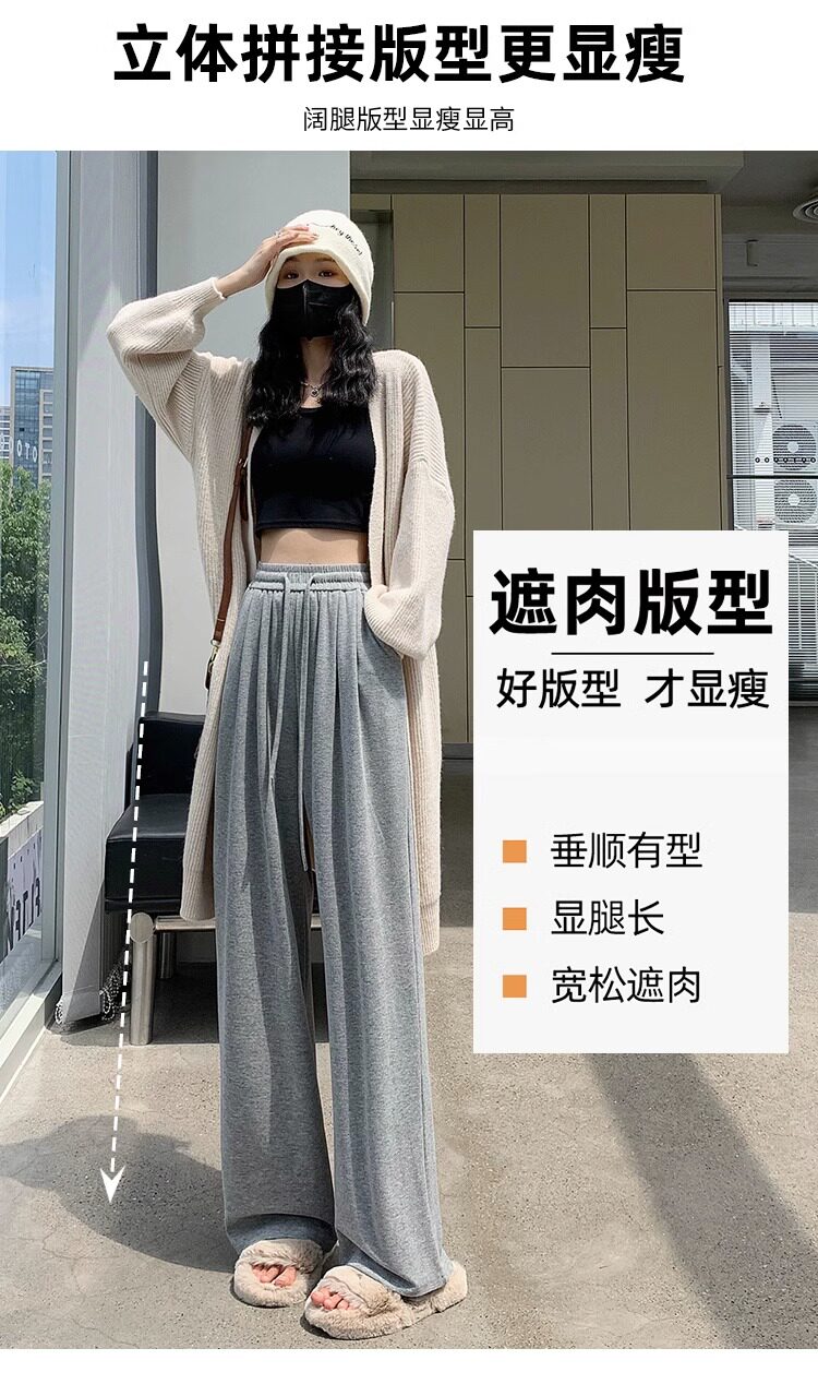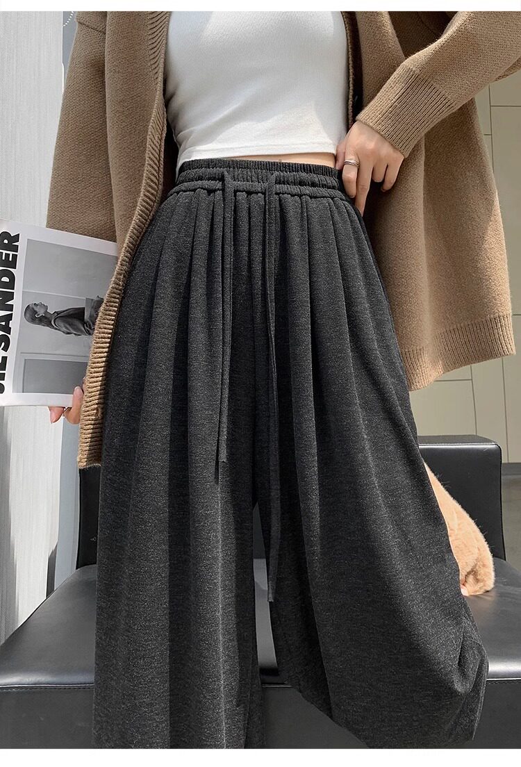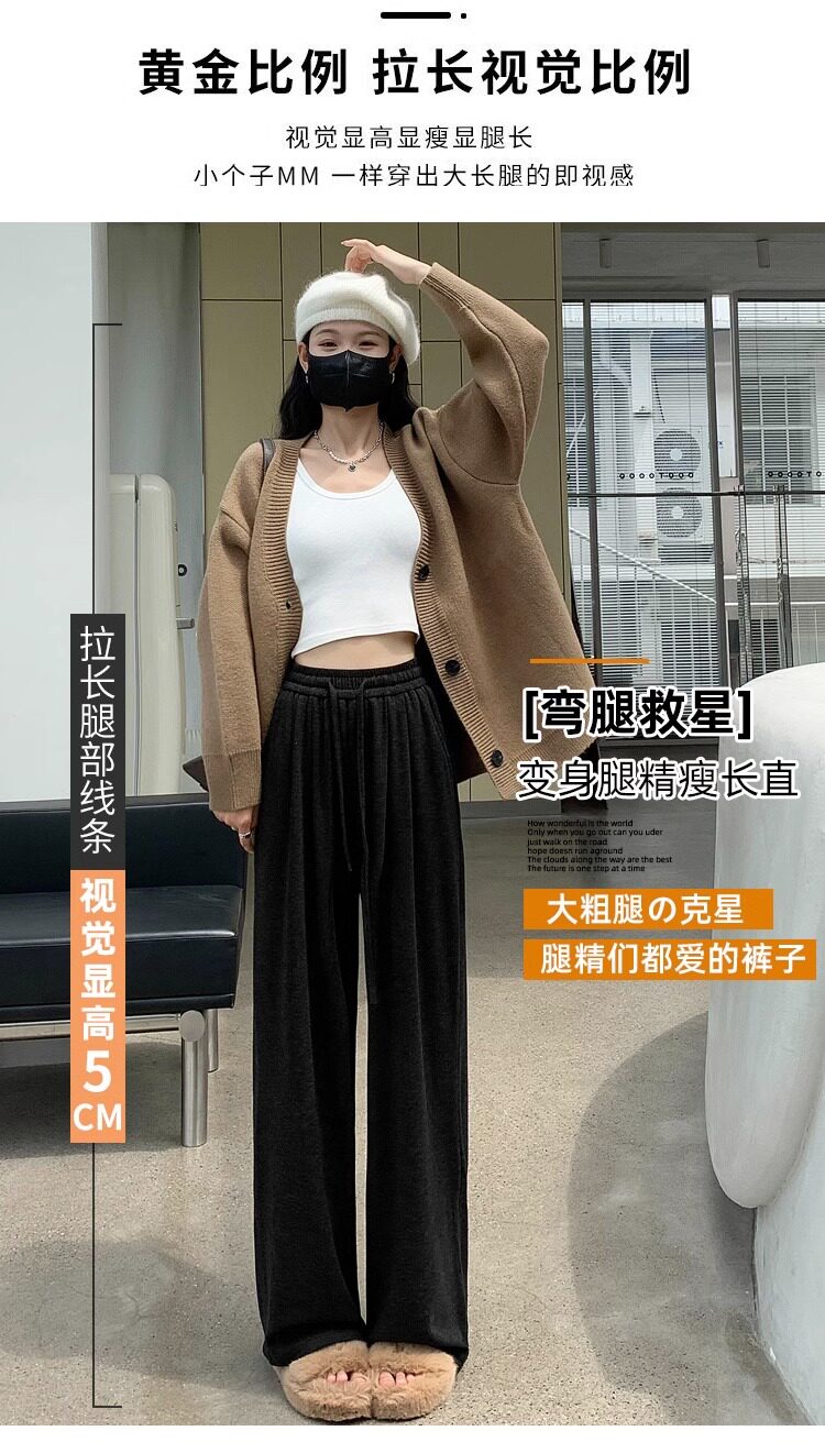 小個子150深灰色針織糯米褲子女夏季新款高腰垂感直筒休閒濶腿褲