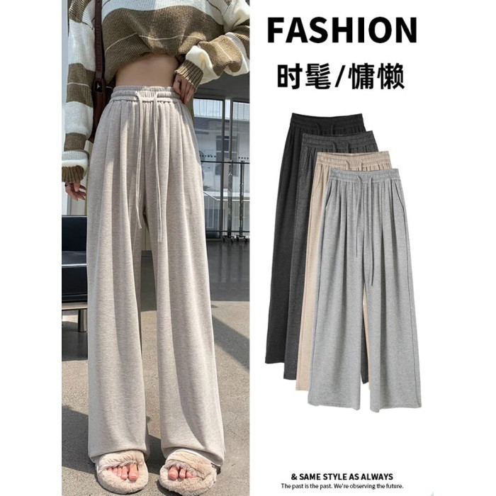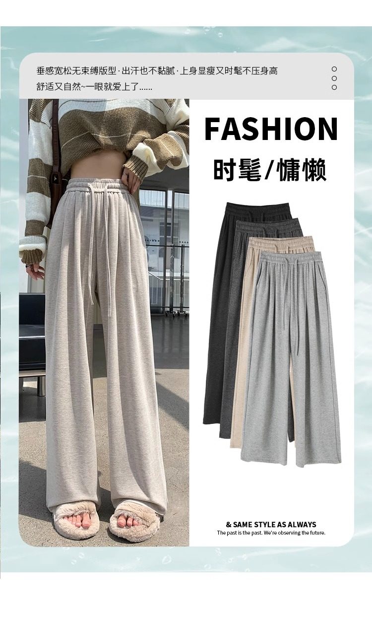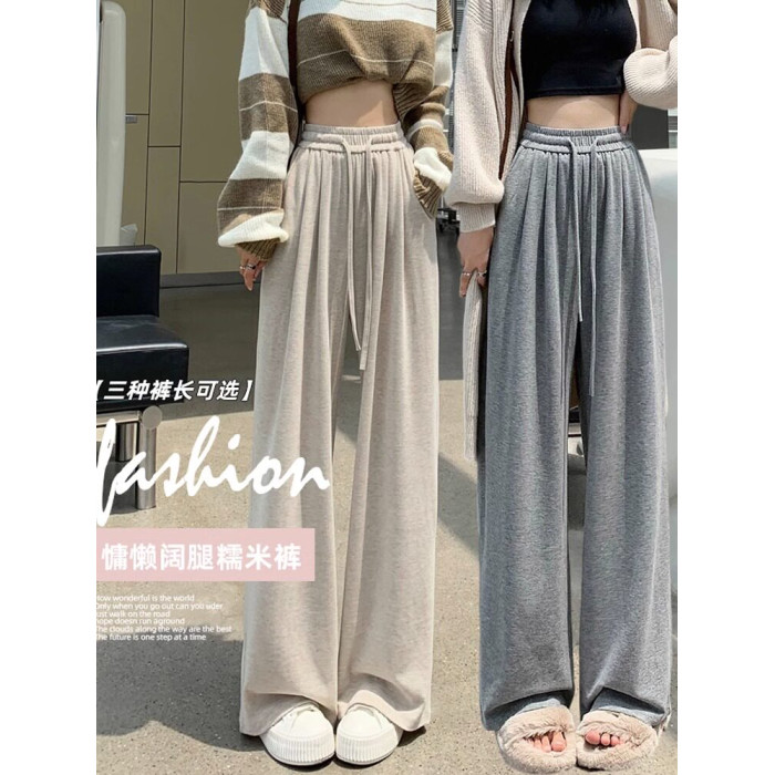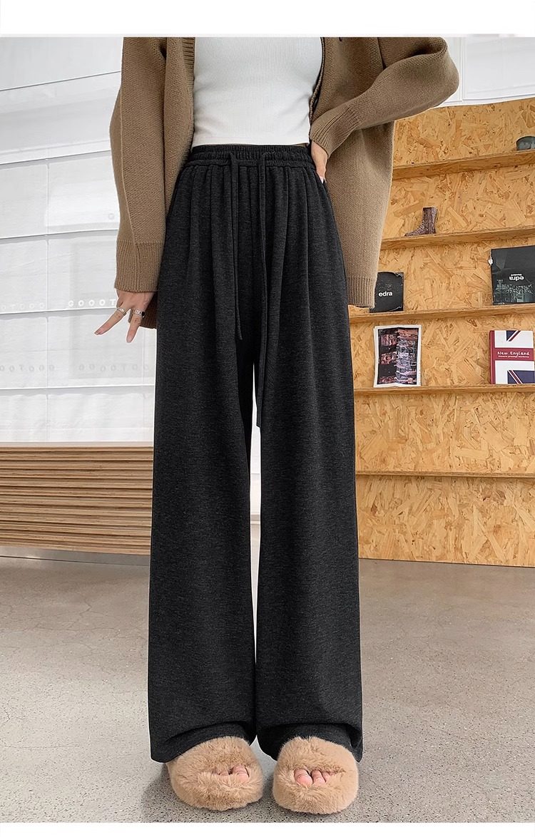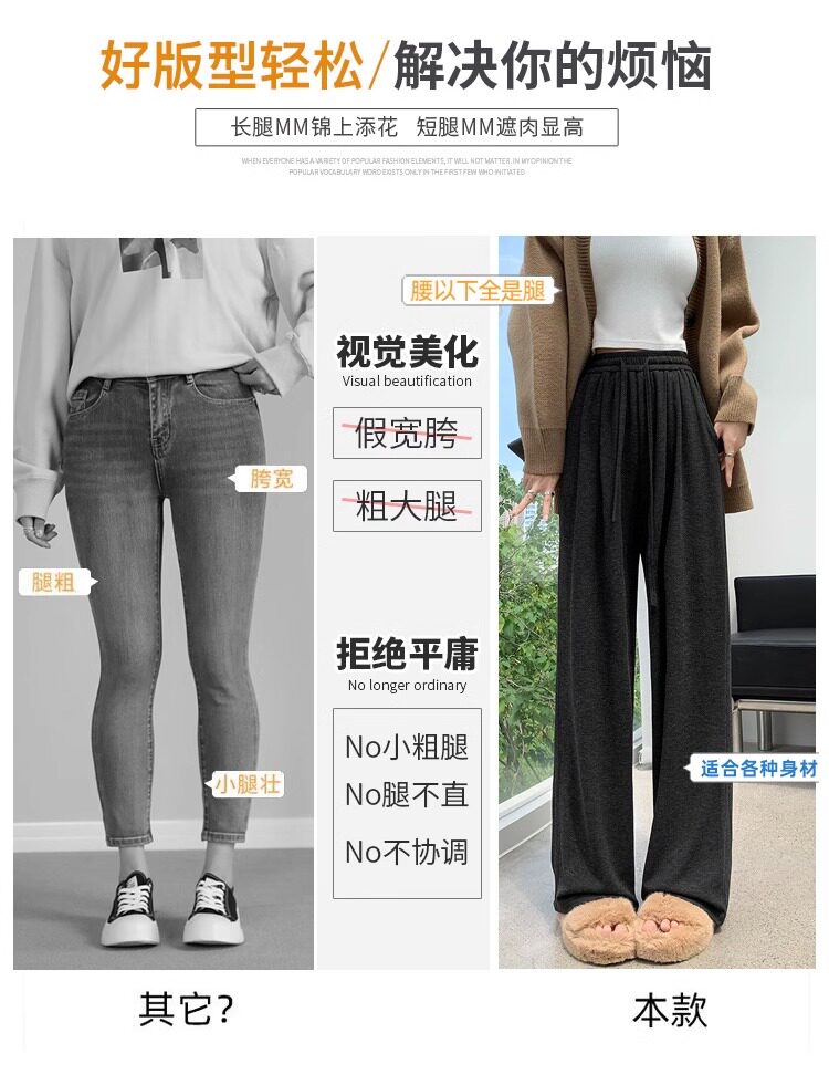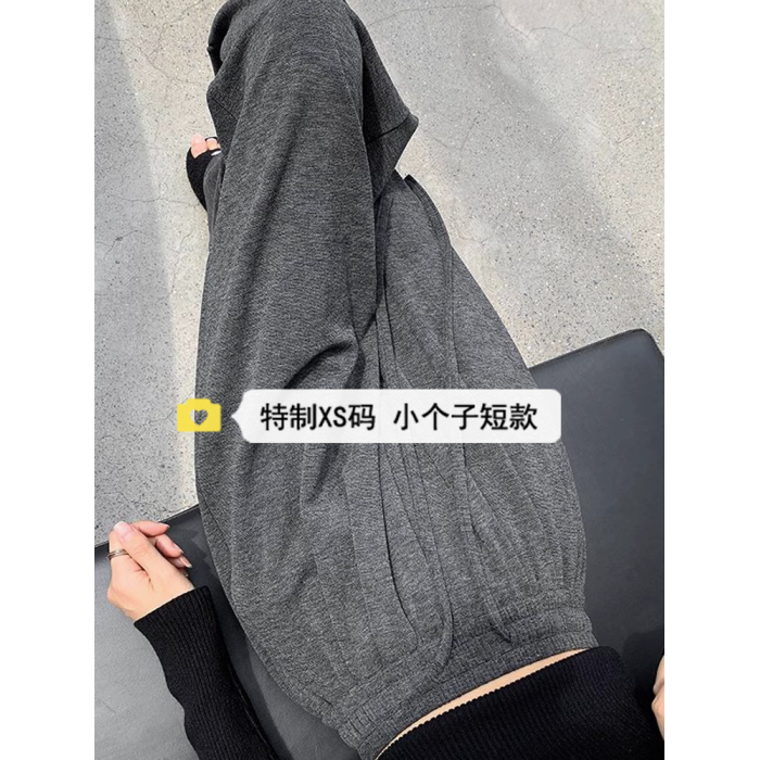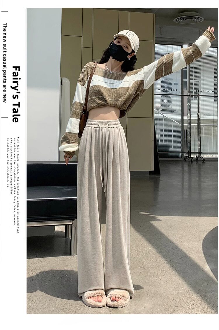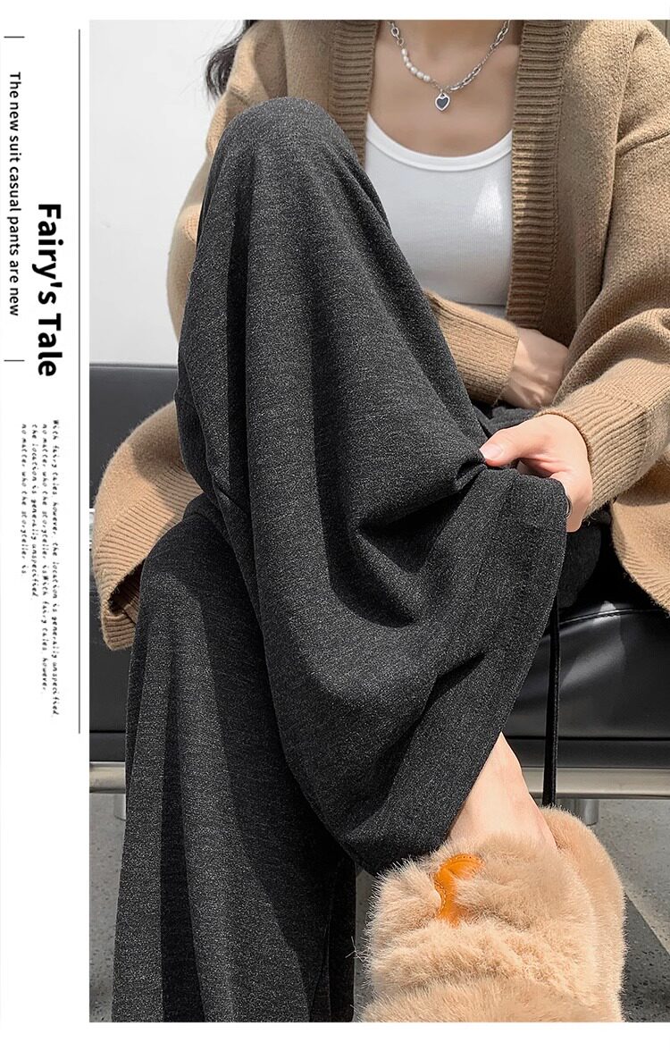 小個子150深灰色針織糯米褲子女夏季新款高腰垂感直筒休閒濶腿褲