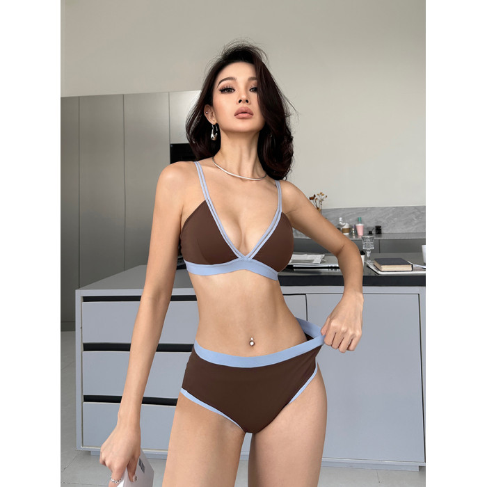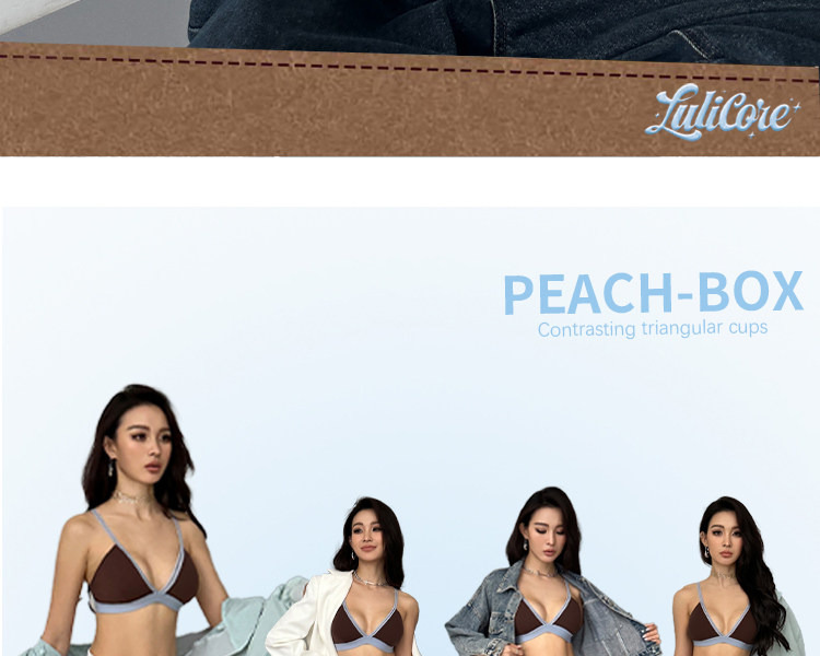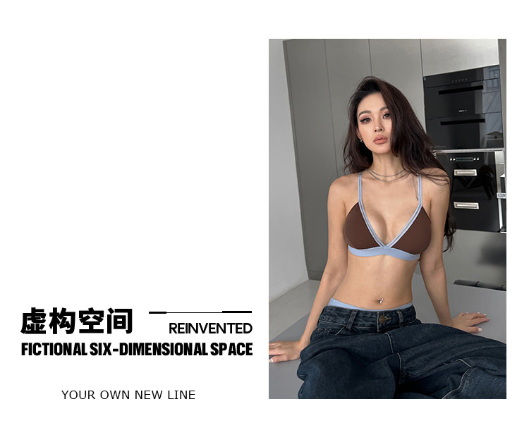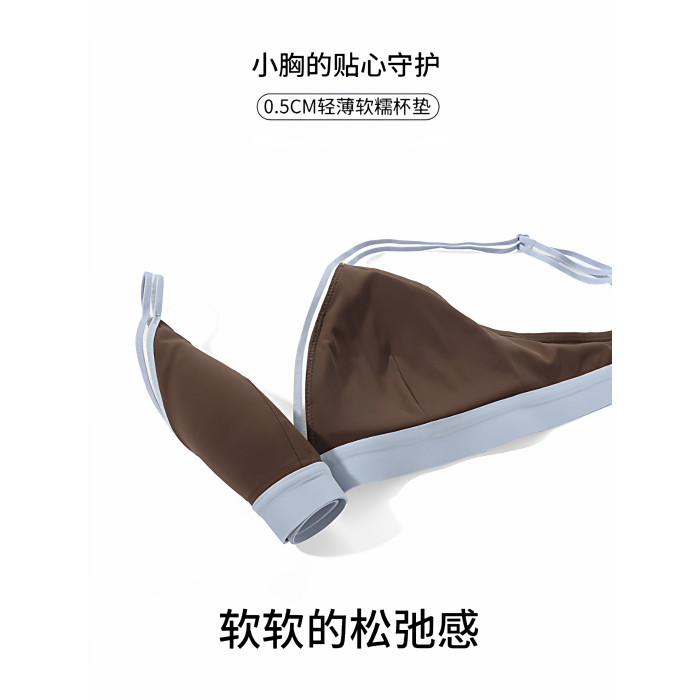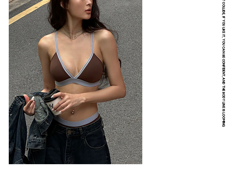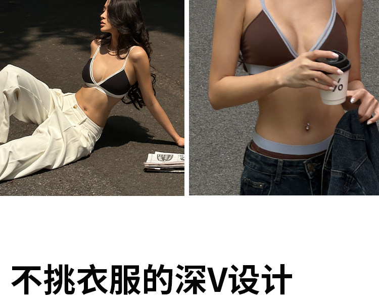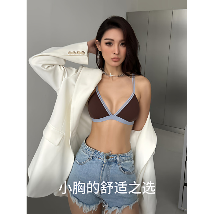 三角杯內衣女夏季薄款外穿文胸小胸無鋼圈撞色可露麗風套裝2025年