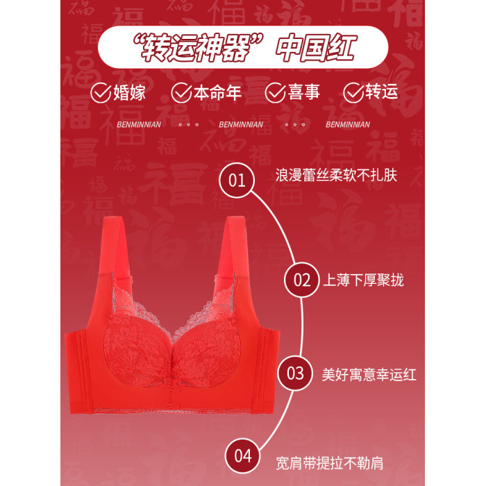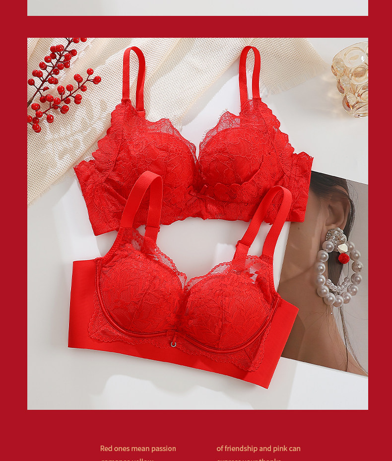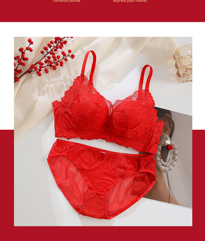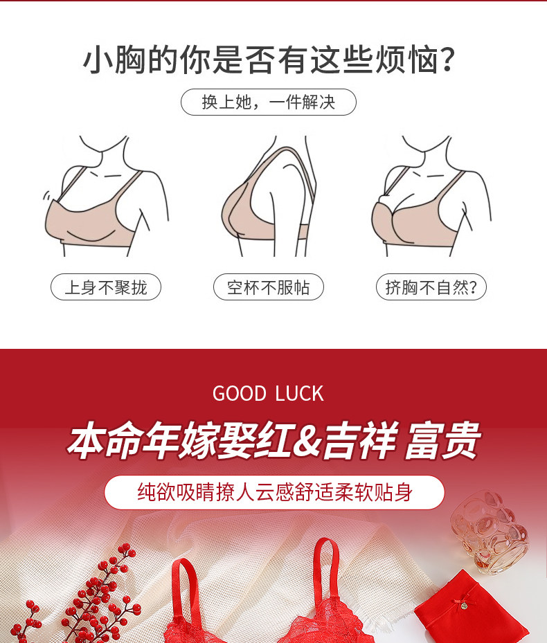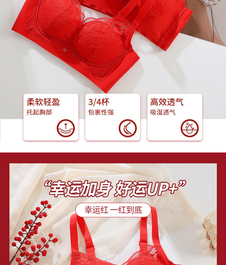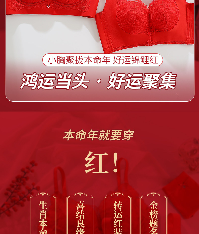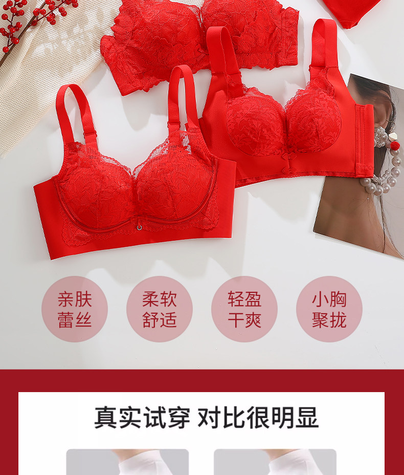 紅色內衣套裝女士本命年2025蛇年新款小胸聚攏上托無鋼圈文胸內褲