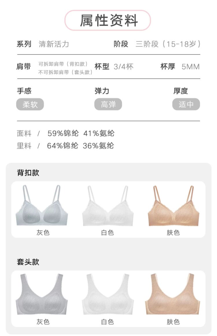 曼妮芬少女文胸無鋼圈無痕蕾絲內衣運動風學生透氣胸罩20400435