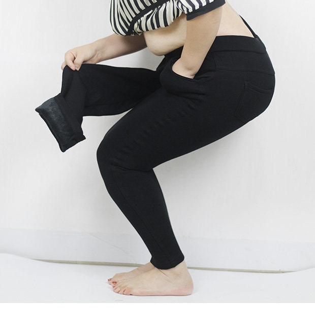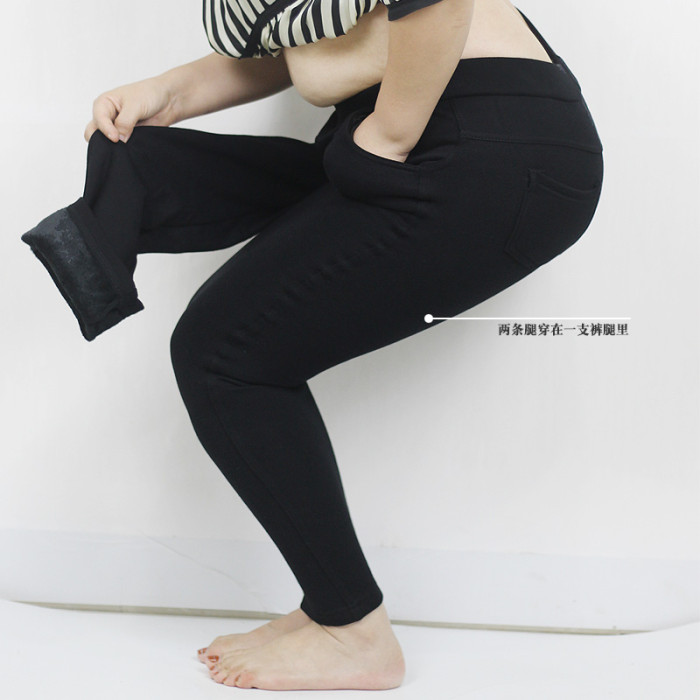 胖mm特大碼300斤高腰彈力黑色打底保暖長褲 加肥加絨顯瘦小腳褲子