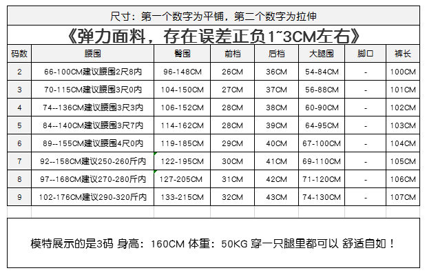 | 褲長 | 長褲 |