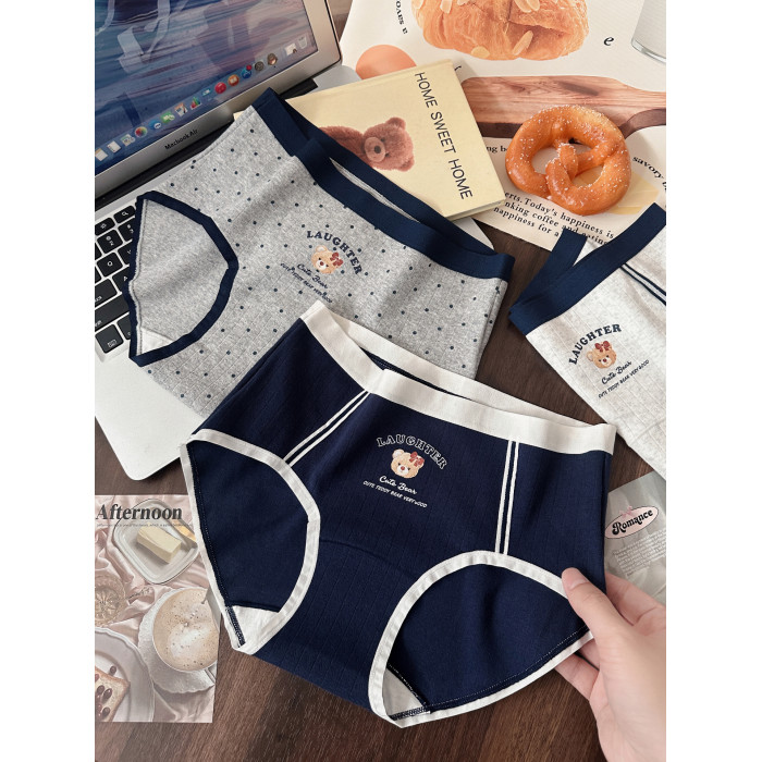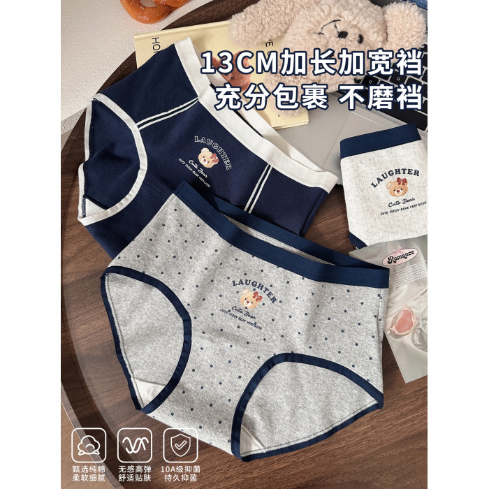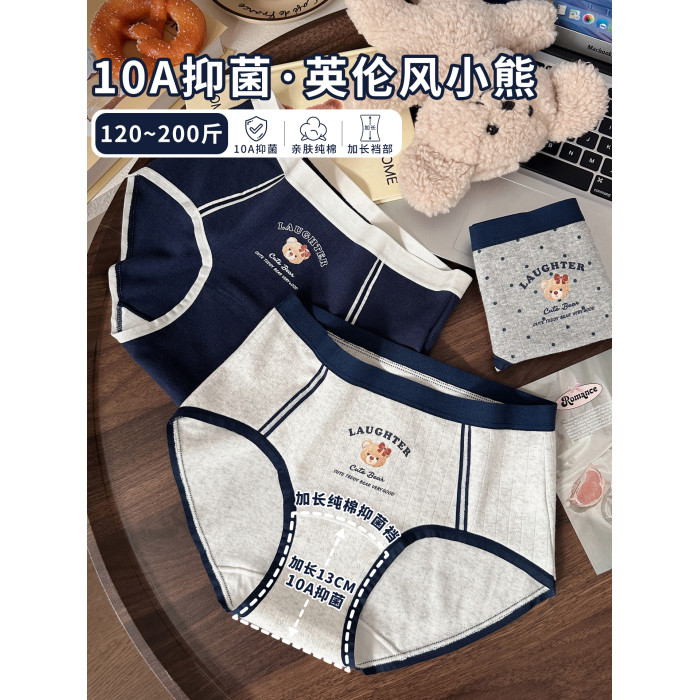 英倫風小熊純棉大碼內褲女胖MM全棉加長襠2026新款10A抗菌三角褲