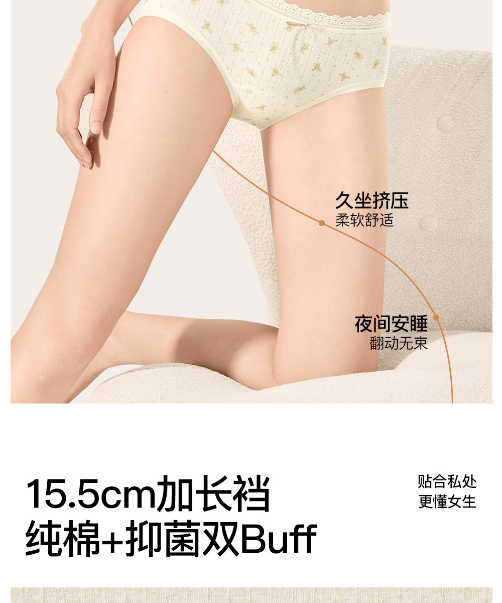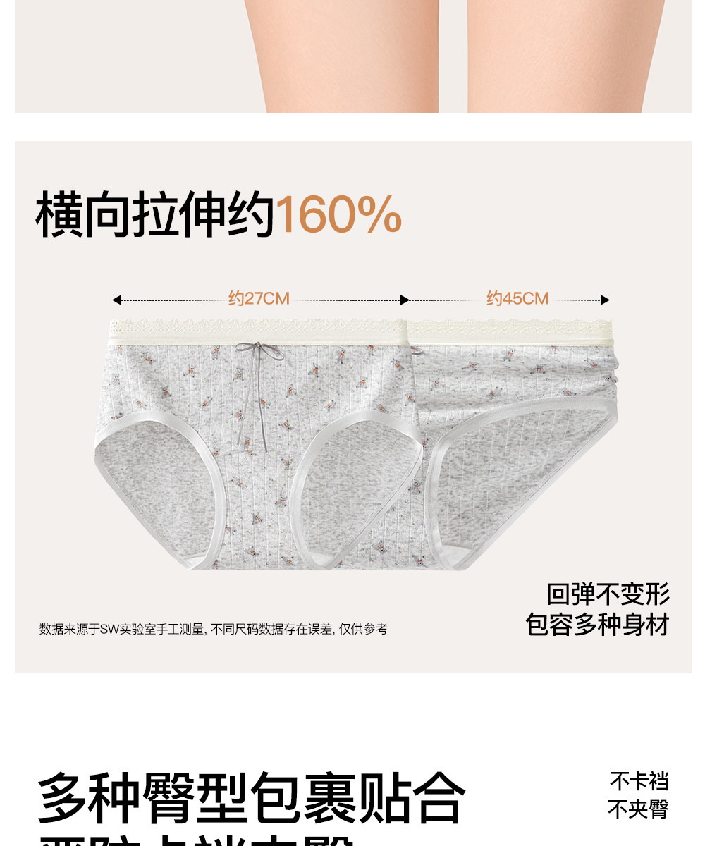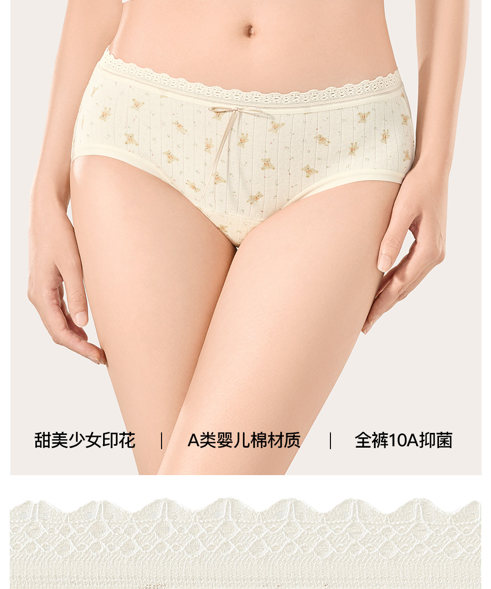 SW內褲女純棉10A抑菌全棉加長襠不夾臀學生少女甜美三角短褲