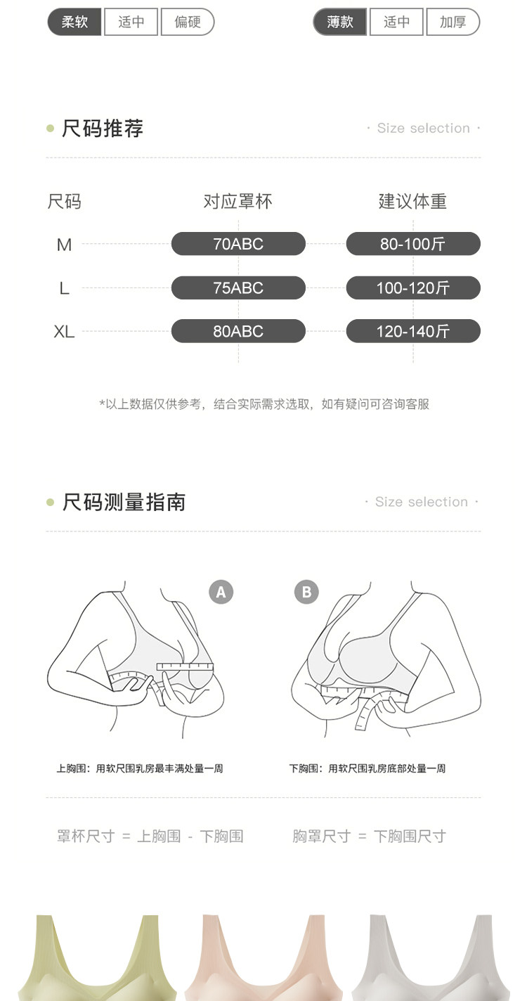 | 罩杯厚度 | 上薄下厚模杯 |