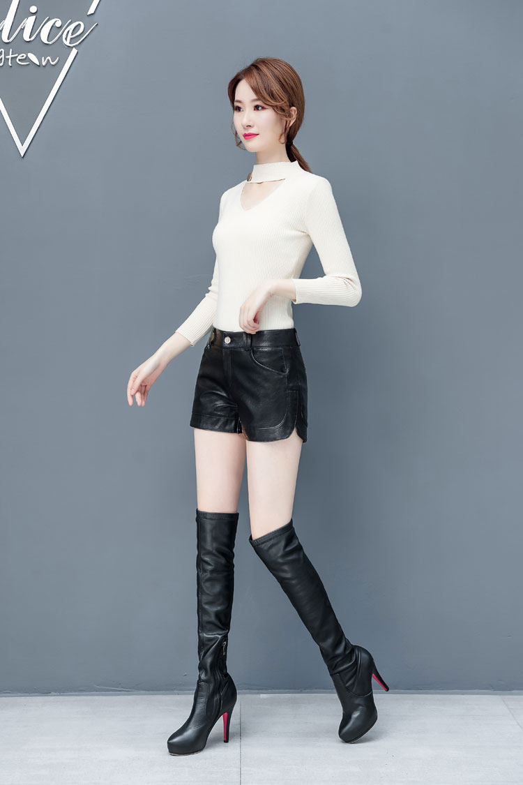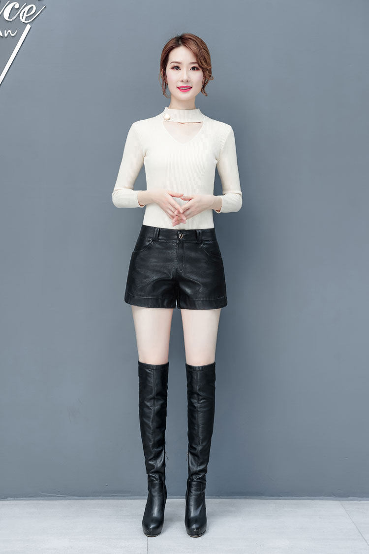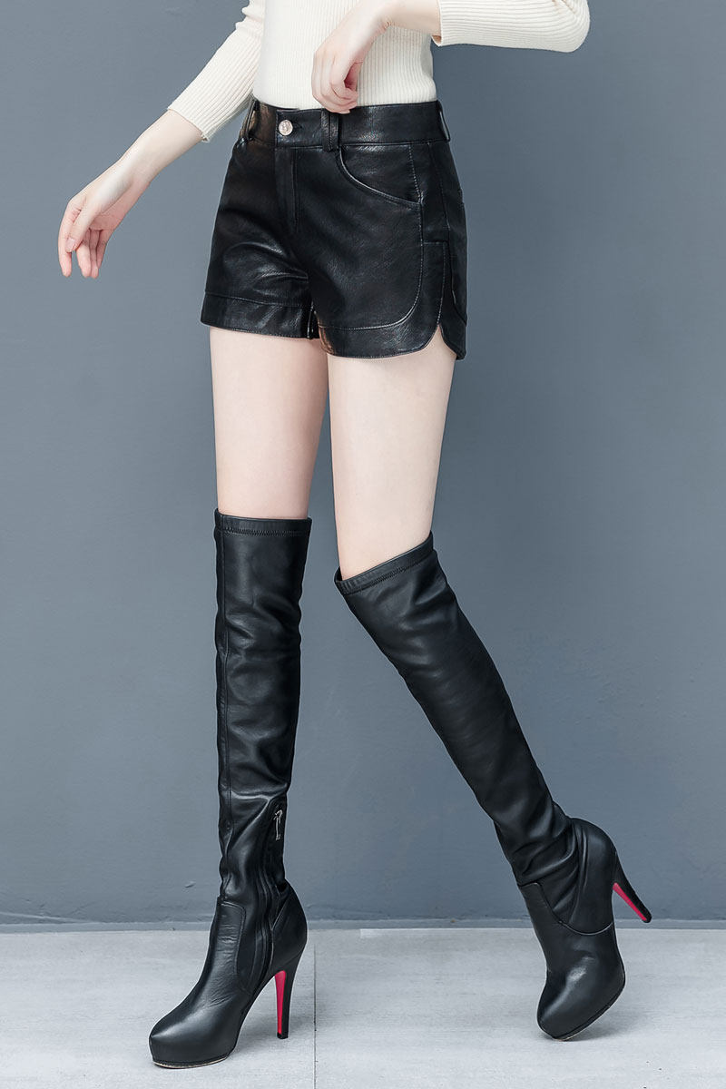 歐洲站女士2025秋冬新款真皮短褲顯瘦靴褲外穿綿羊皮海甯皮褲子潮