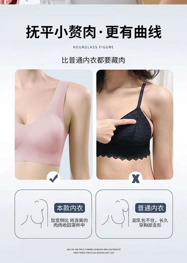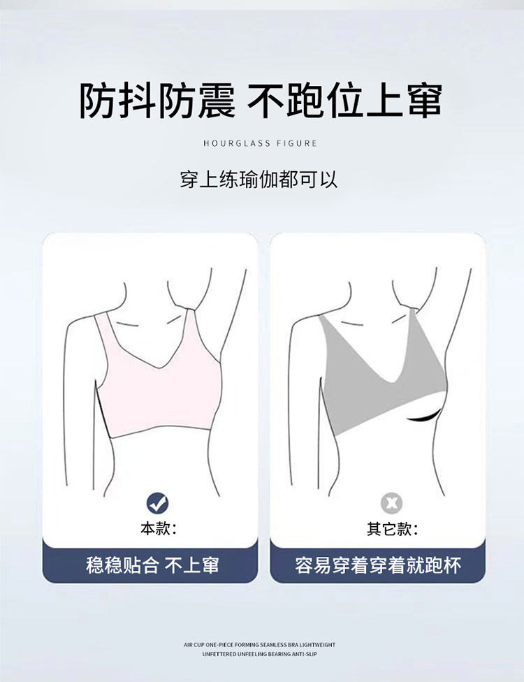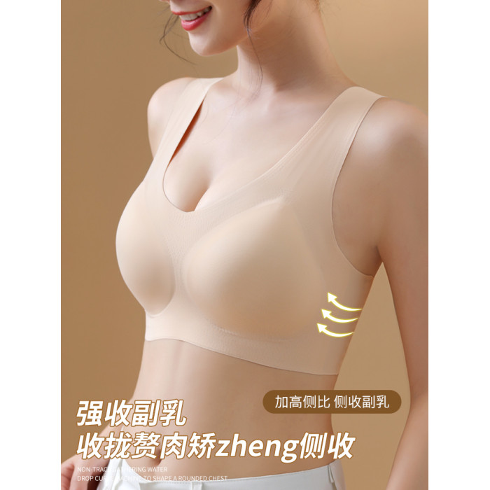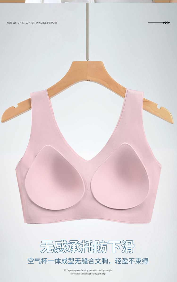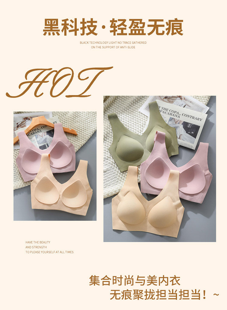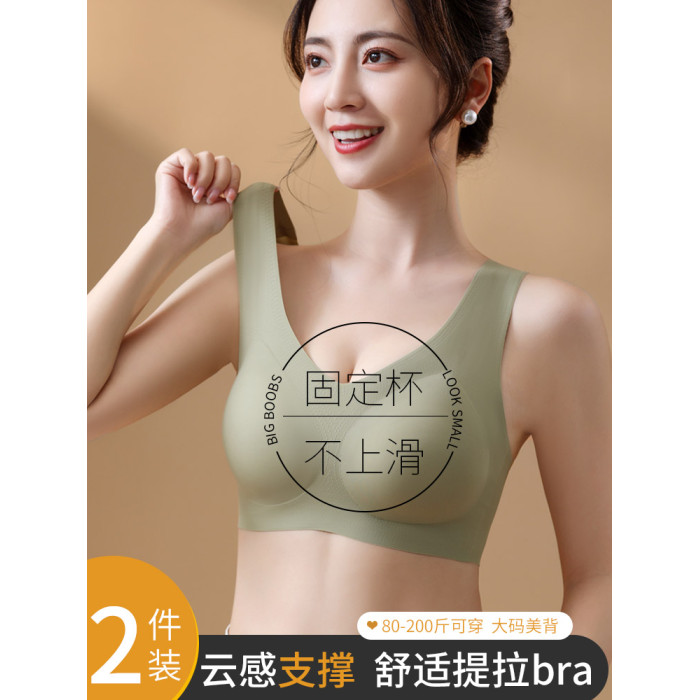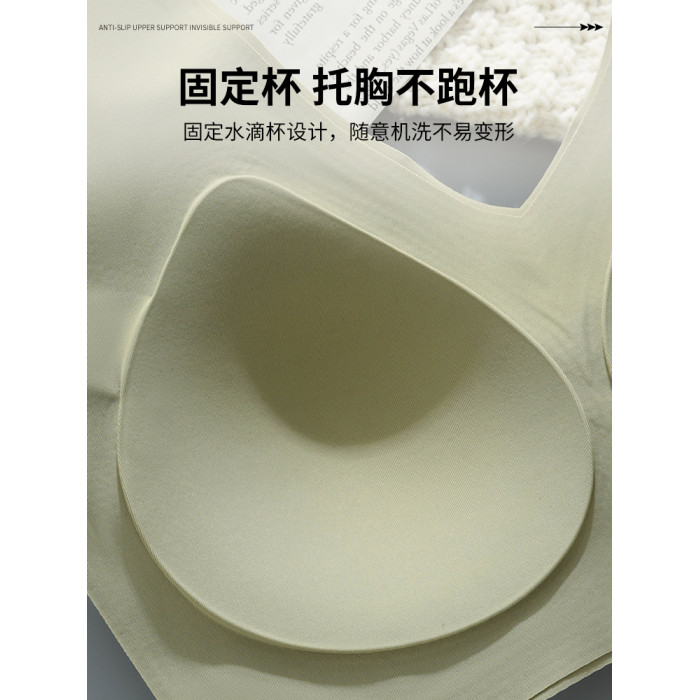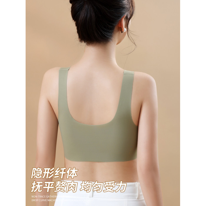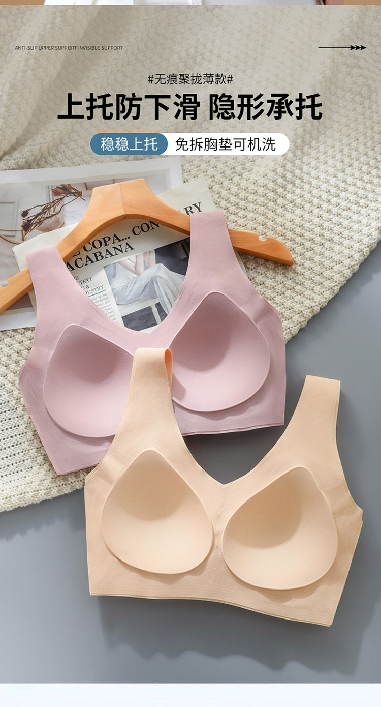大碼無痕內衣女大胸顯小無鋼圈可機洗固定杯一體美背心式運動文胸