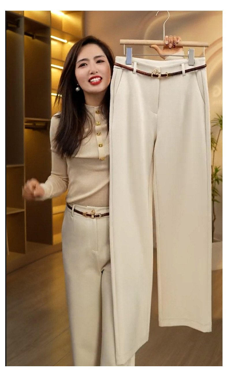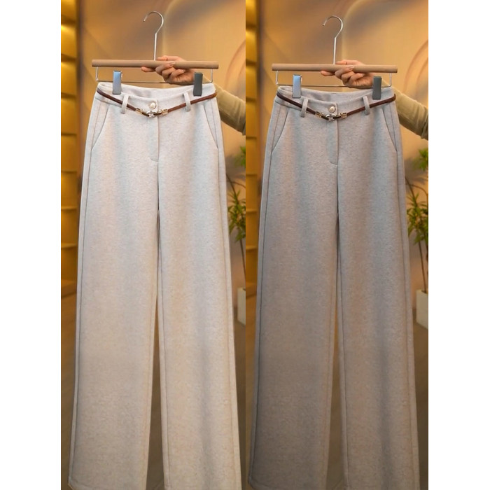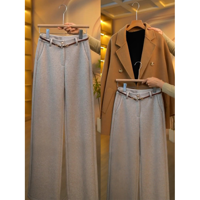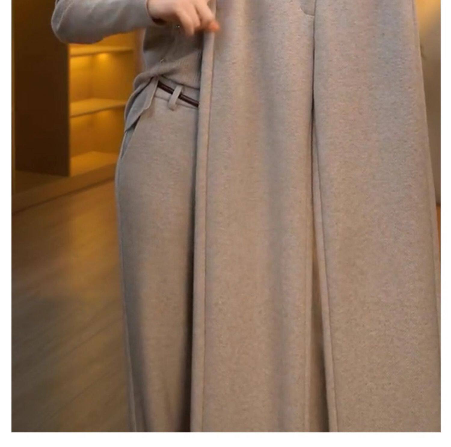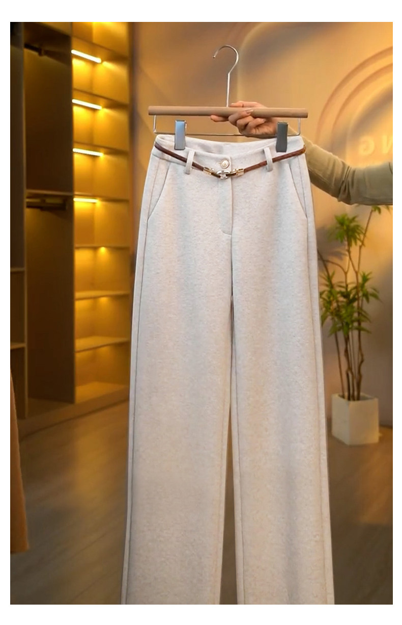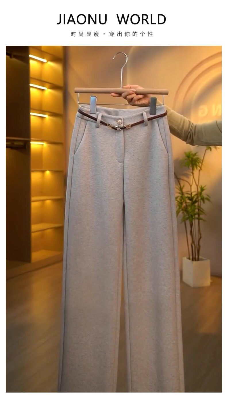 高腰休閒褲秋冬加絨濶腿褲女2025新款西裝褲窄版直筒褲羊毛呢褲子