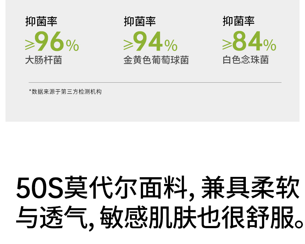 | 材質成分 | 莫代爾纖維(莫代爾)68.6% 聚醯胺纖維(錦綸)25.6% 聚氨酯彈性纖維(氨綸)5.8% |