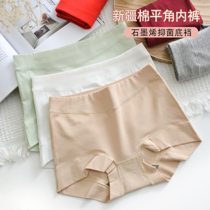 純棉平角內褲女士中高腰石墨烯抑菌襠防走光四角褲安全褲大碼透氣