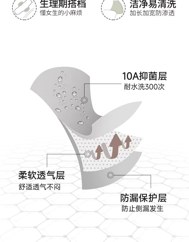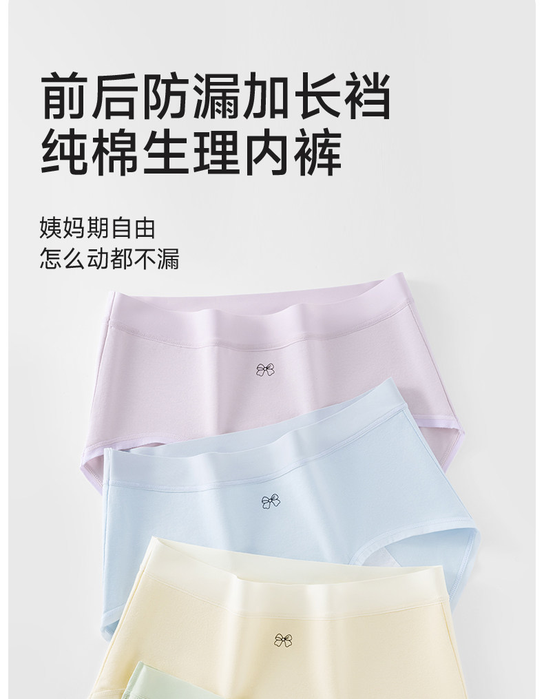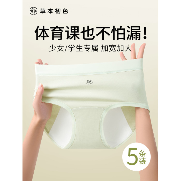 草本初色少女生理內褲初中生純棉10A抗菌加長襠運動月經期專用