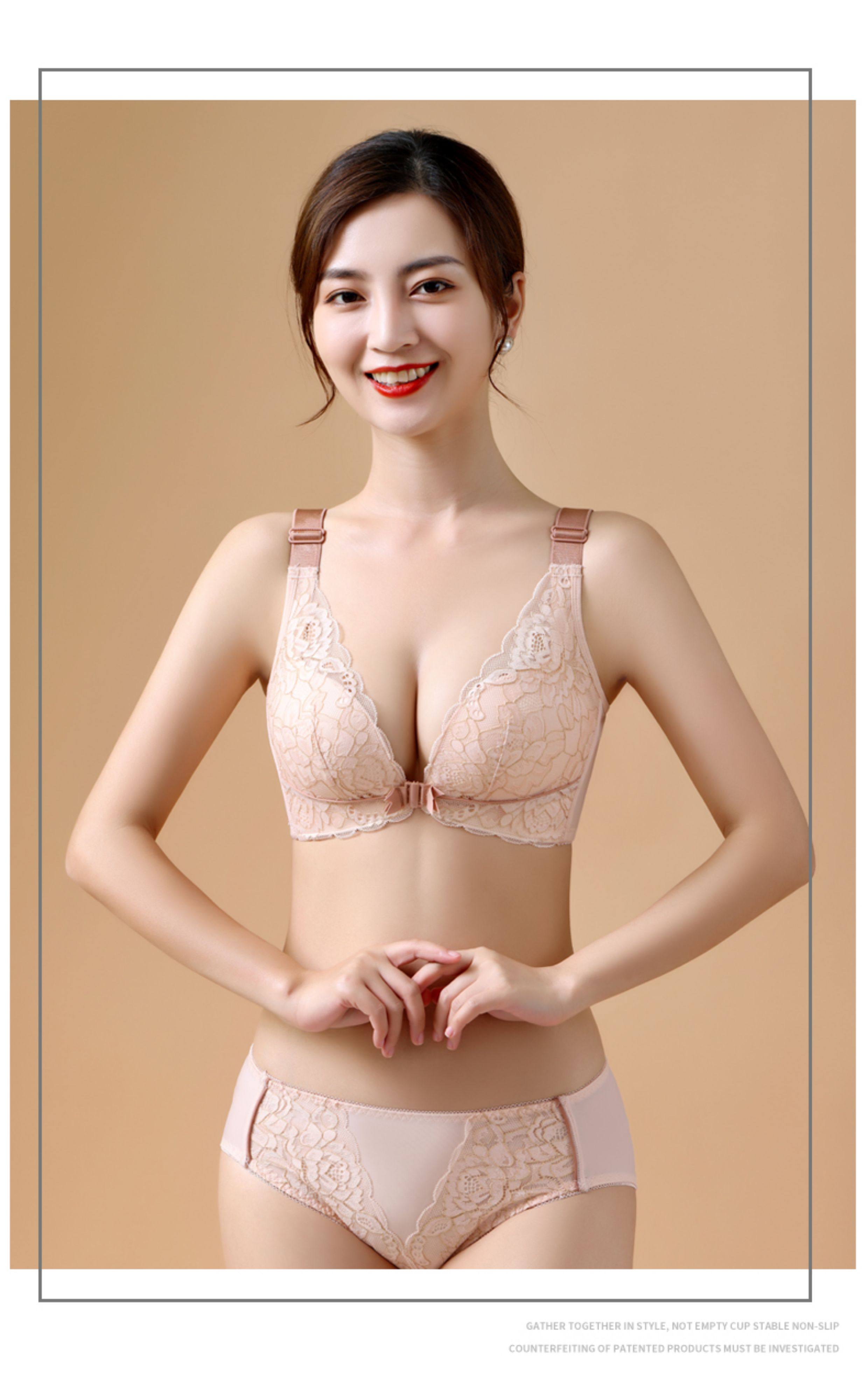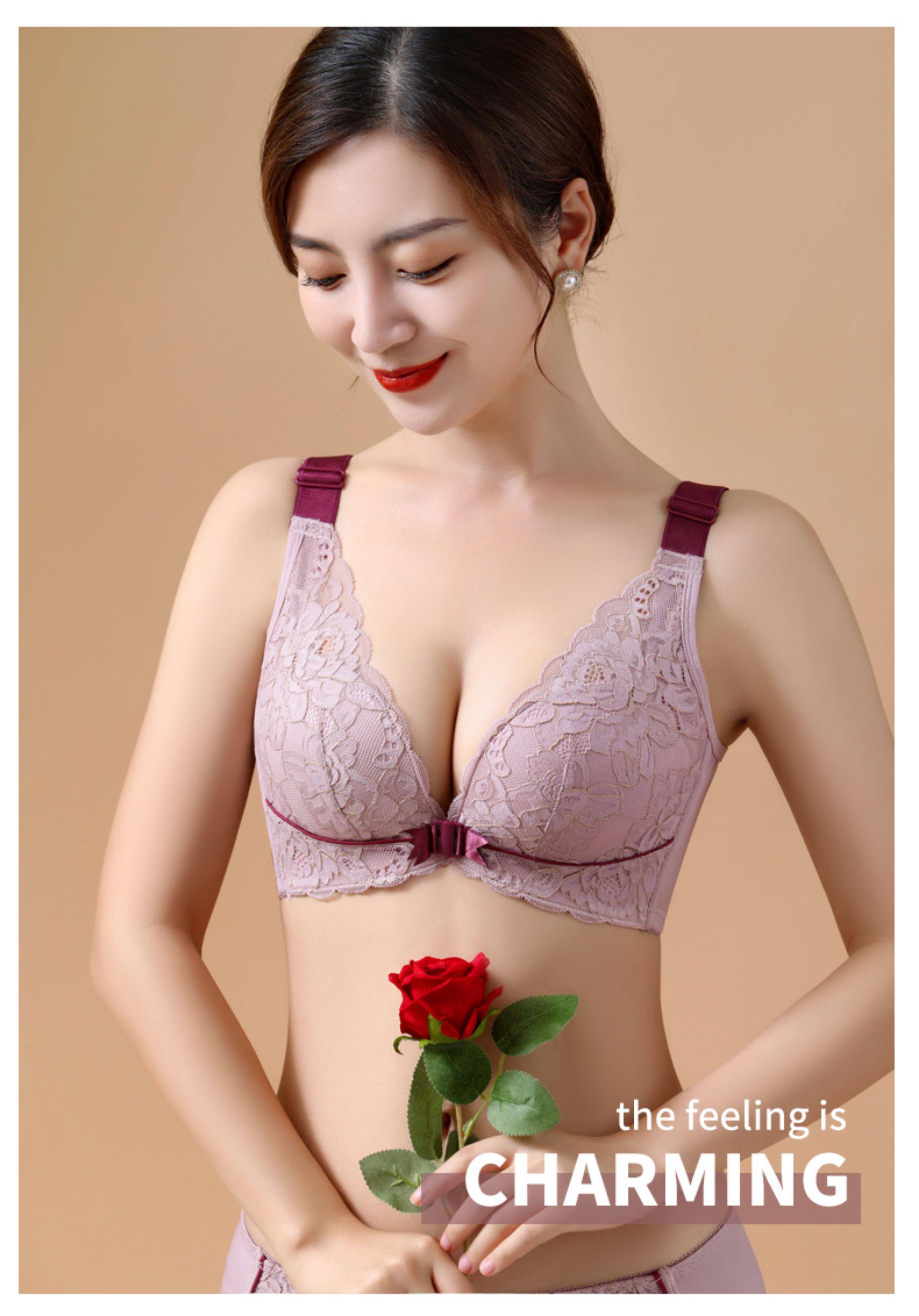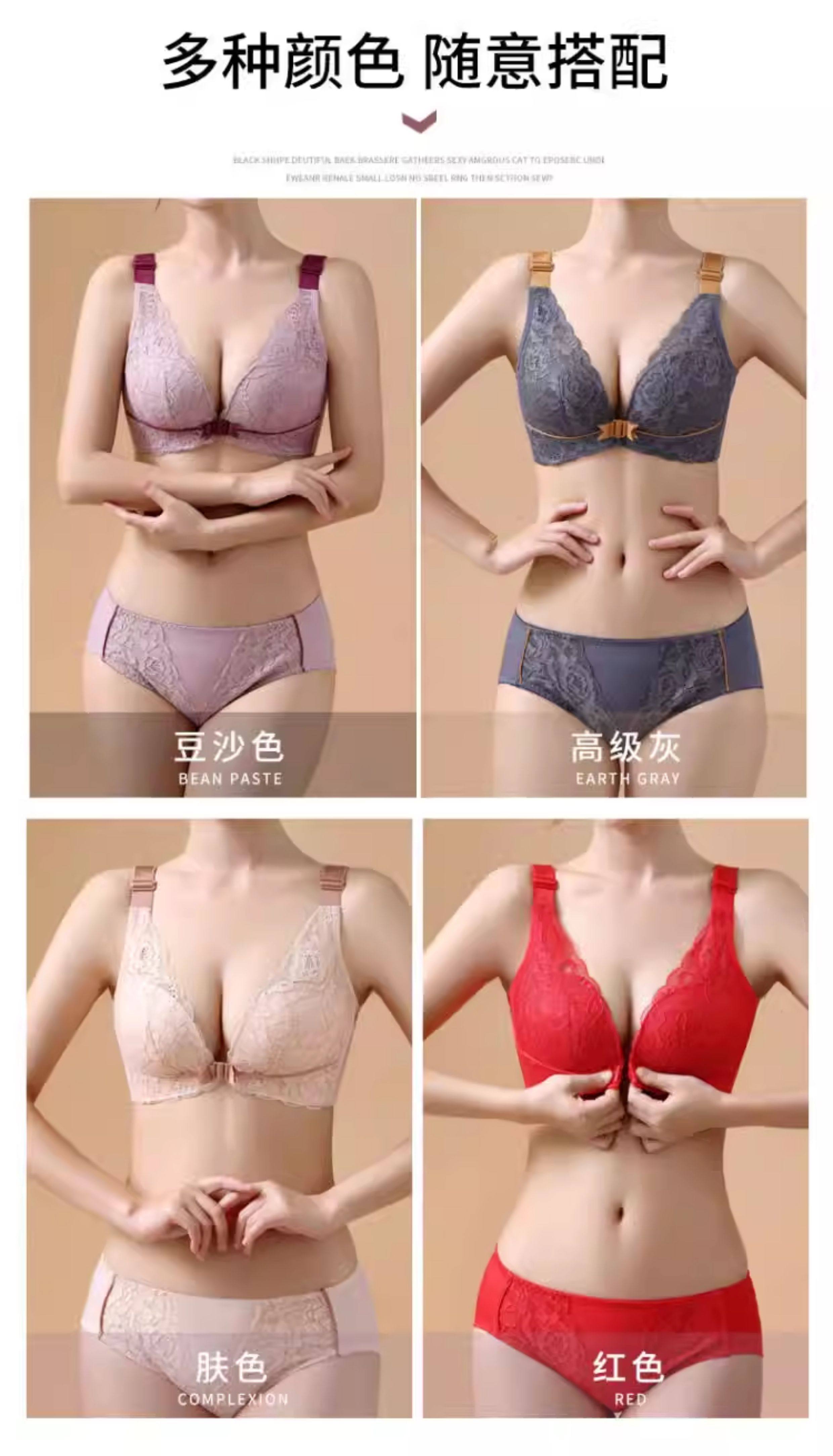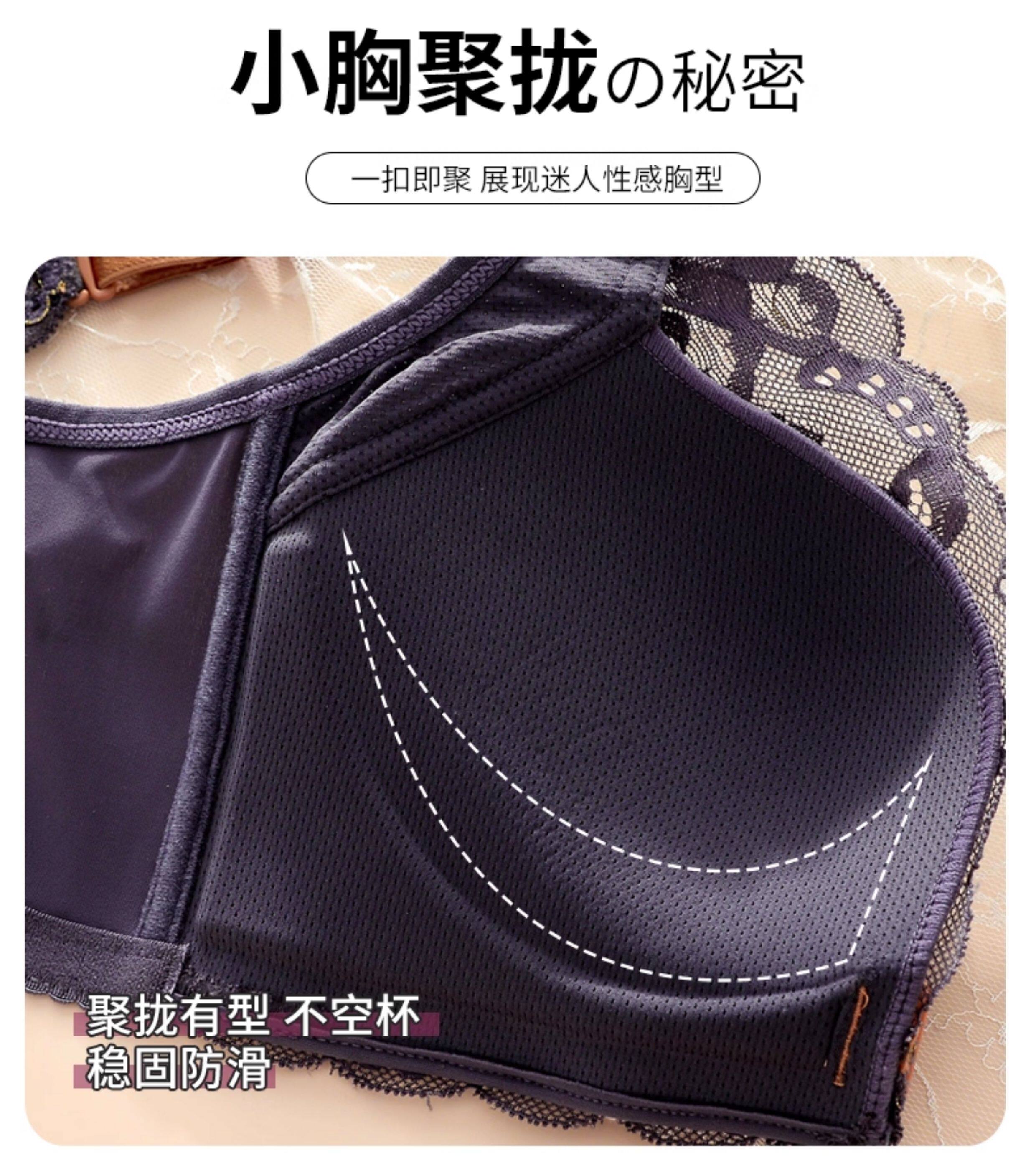 前釦內衣女小胸聚攏收副乳防下垂無鋼圈美背文胸套裝2025新款爆款