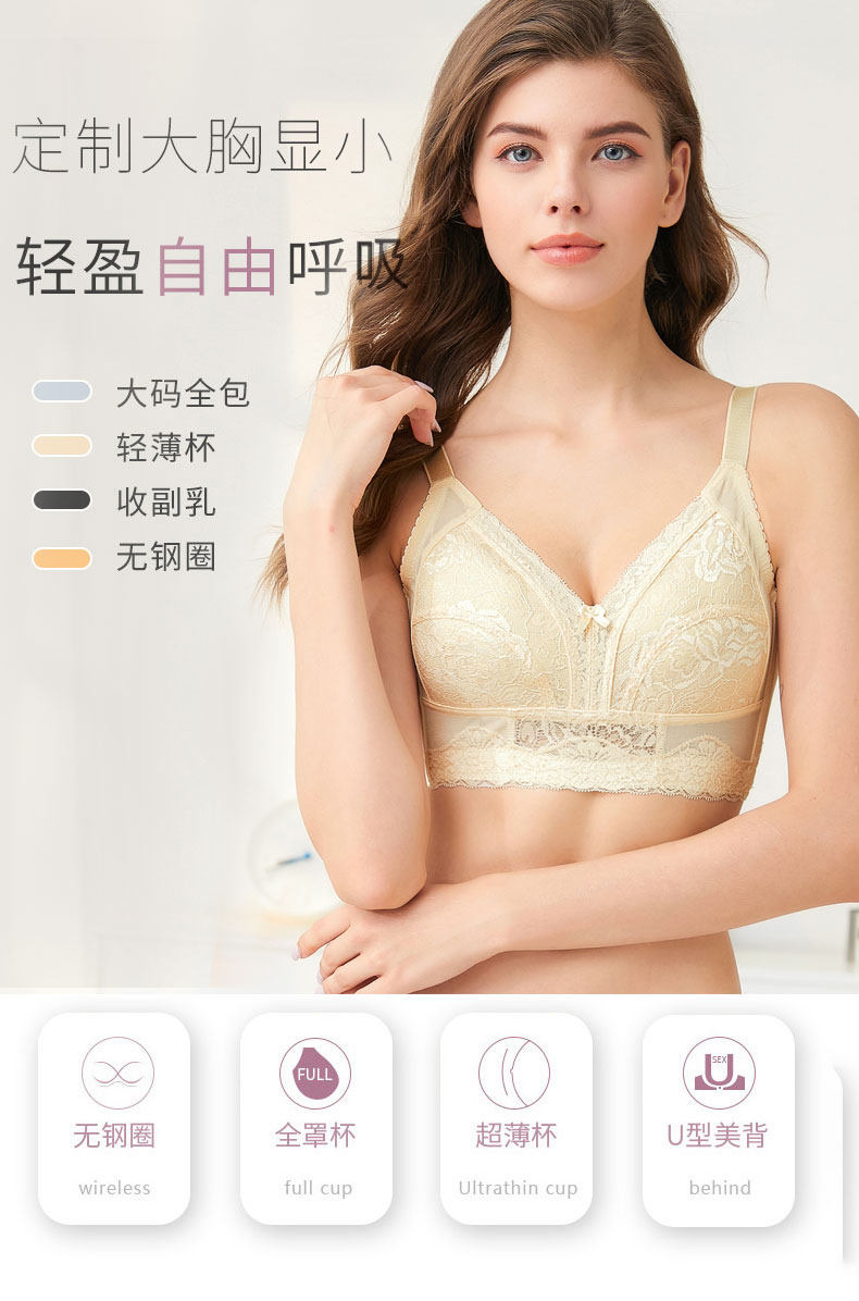 大碼胸罩薄款無鋼圈大胸顯小神器全罩杯文胸超薄胖mm縮胸內衣女夏