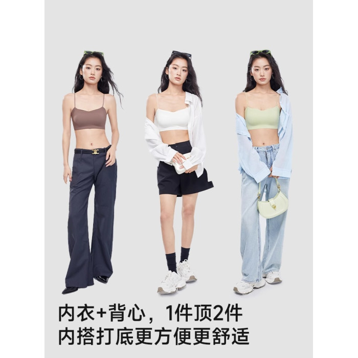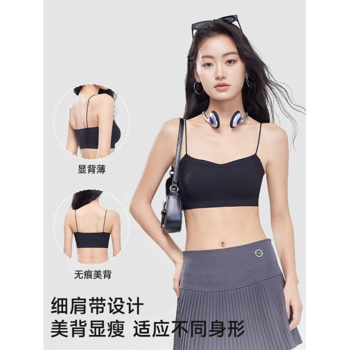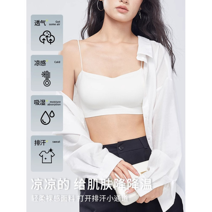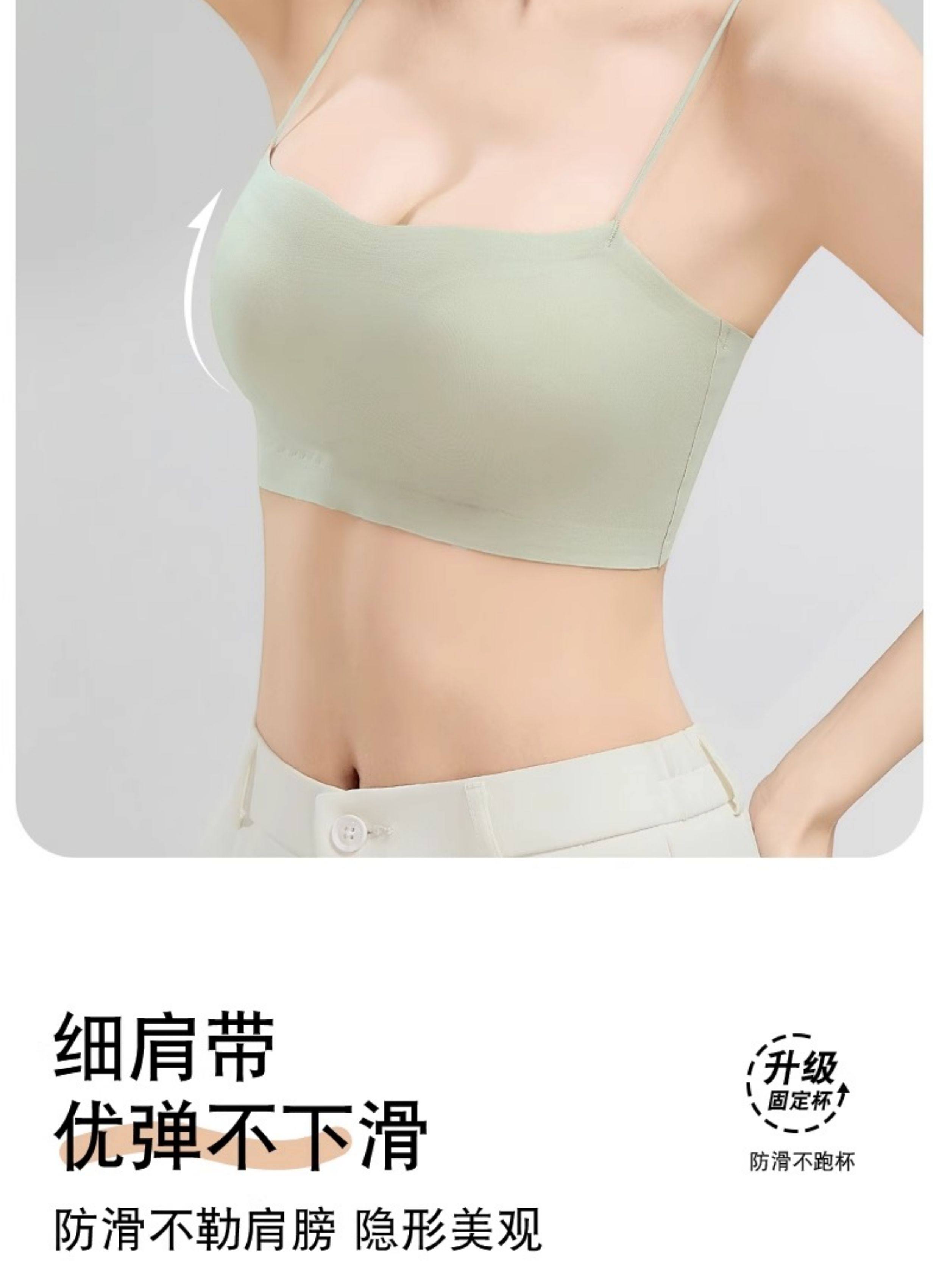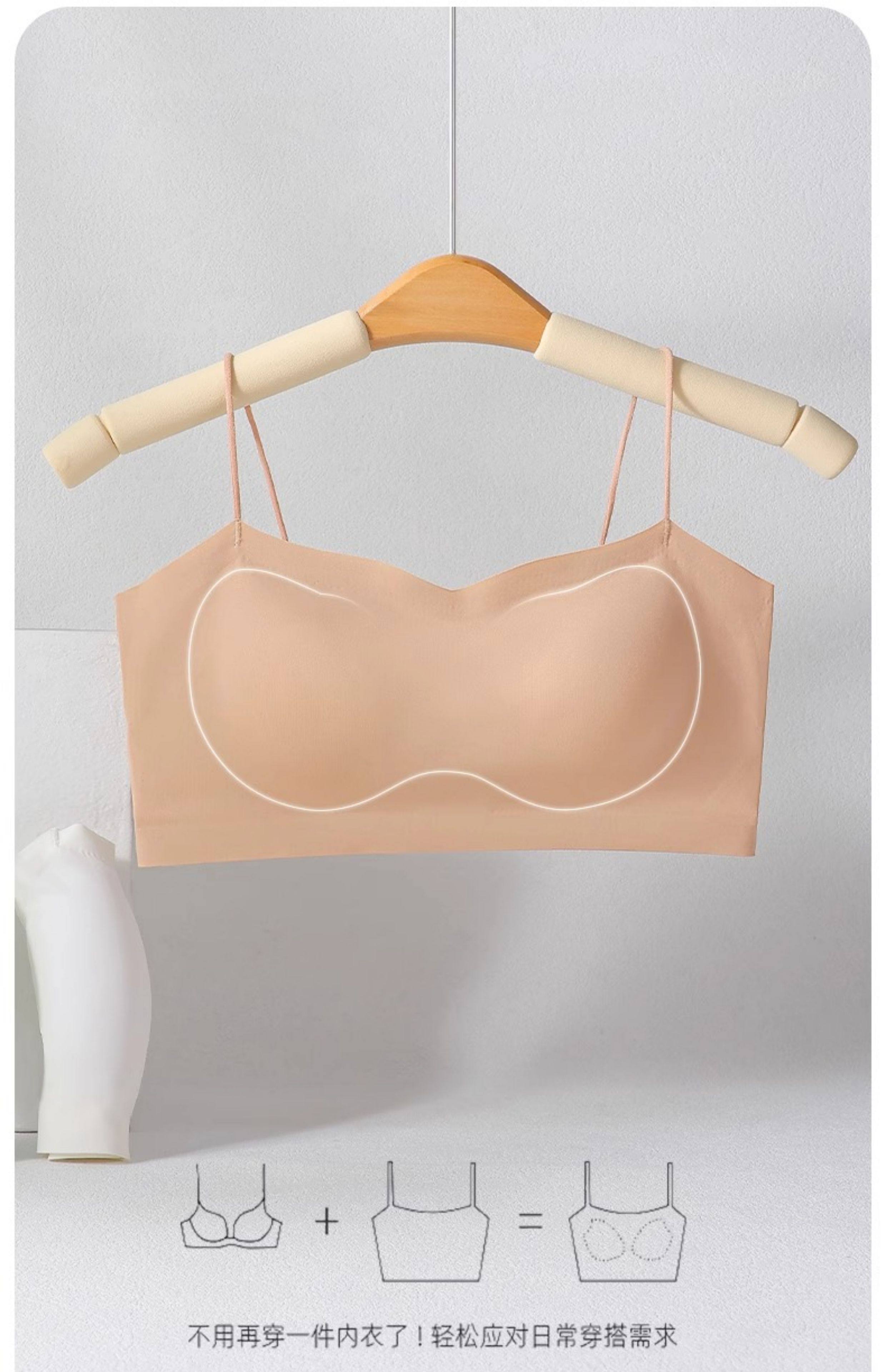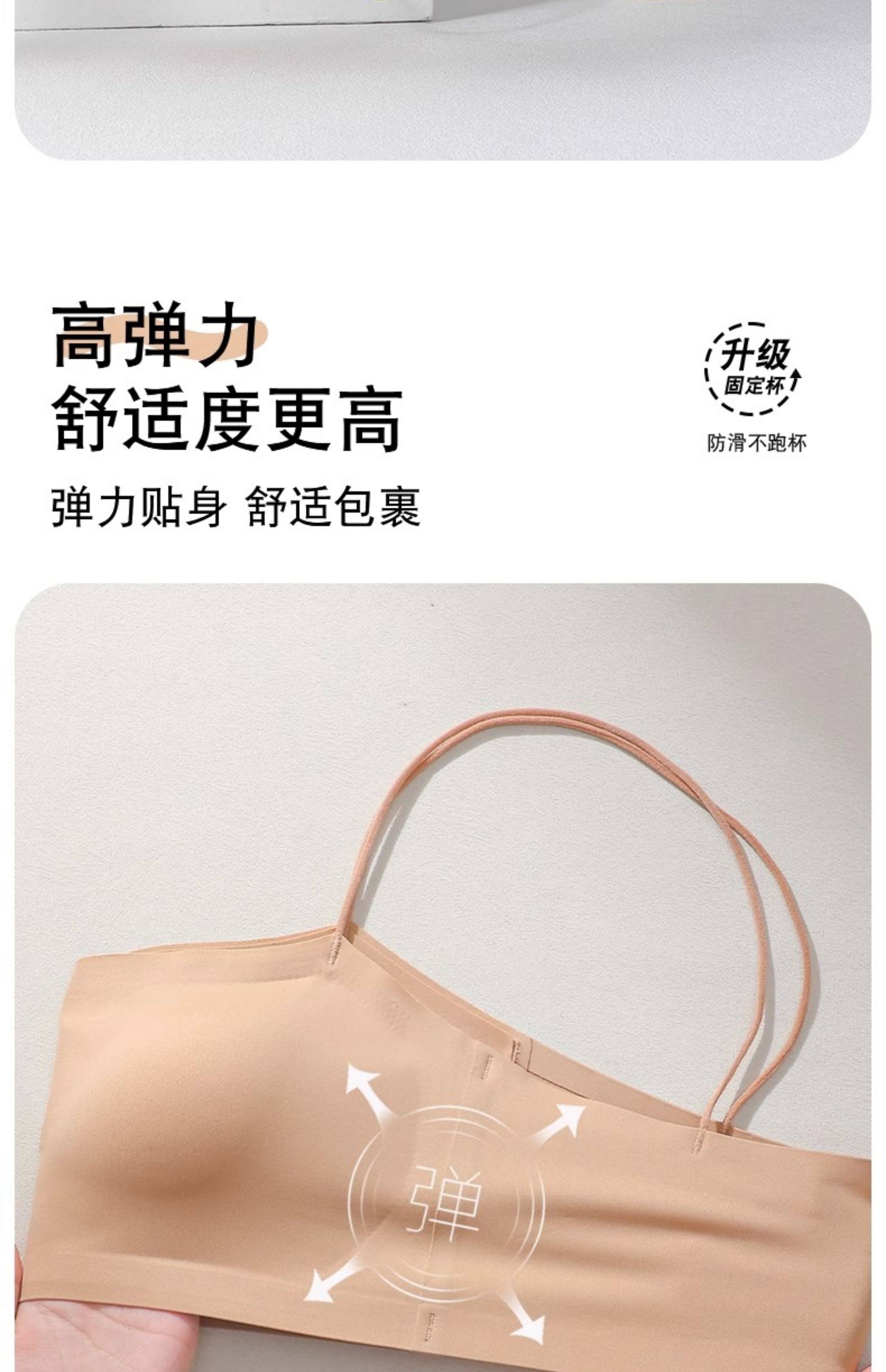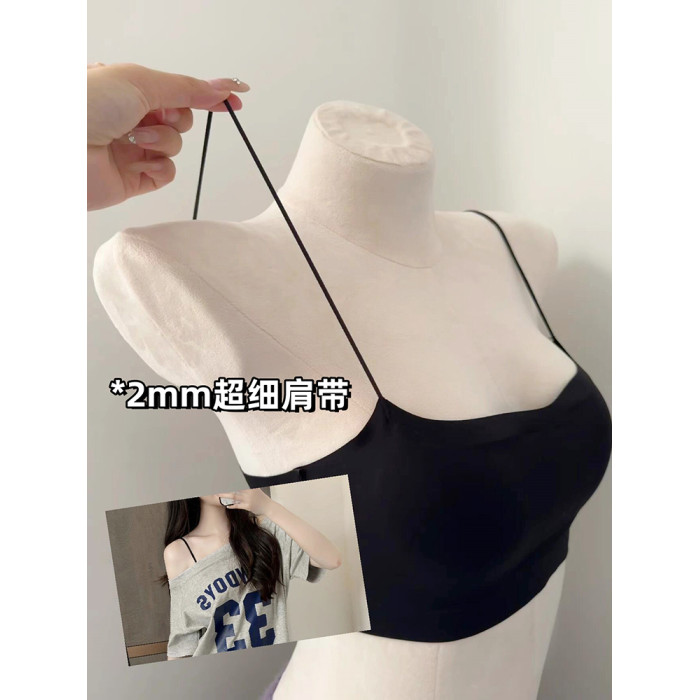 斜肩吊帶裙專用美背內衣細肩帶可外露無痕隱形冰絲抹胸背心式文胸