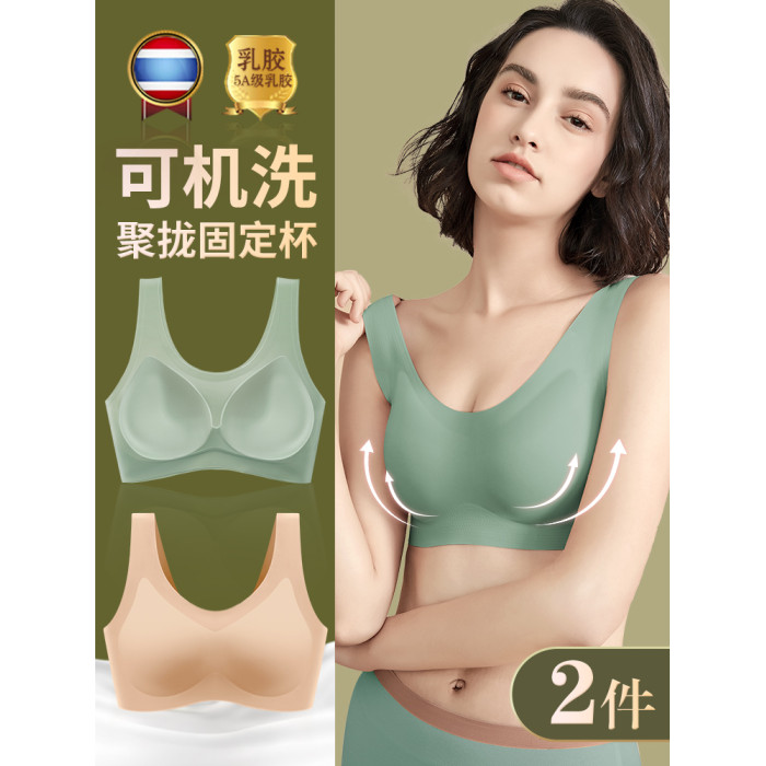 乳膠無痕內衣女小胸聚攏收副乳背心式無鋼圈運動文胸胸罩薄款夏季