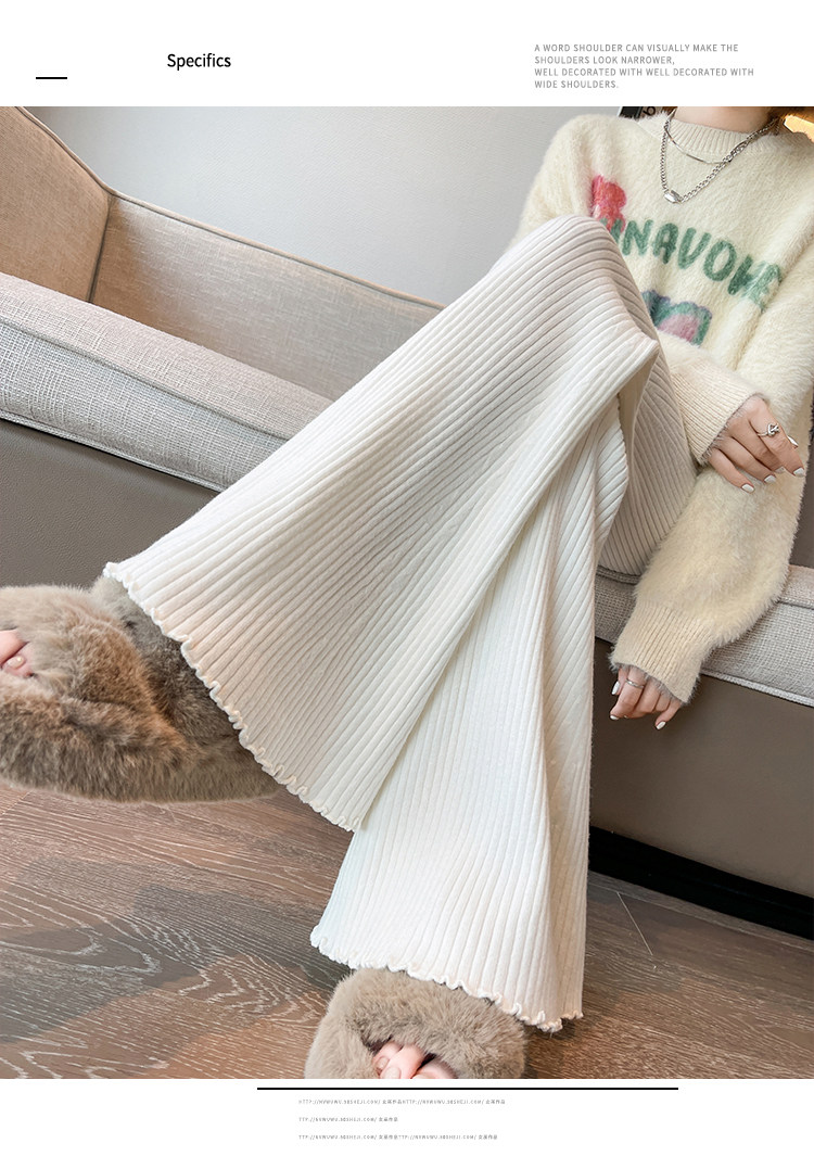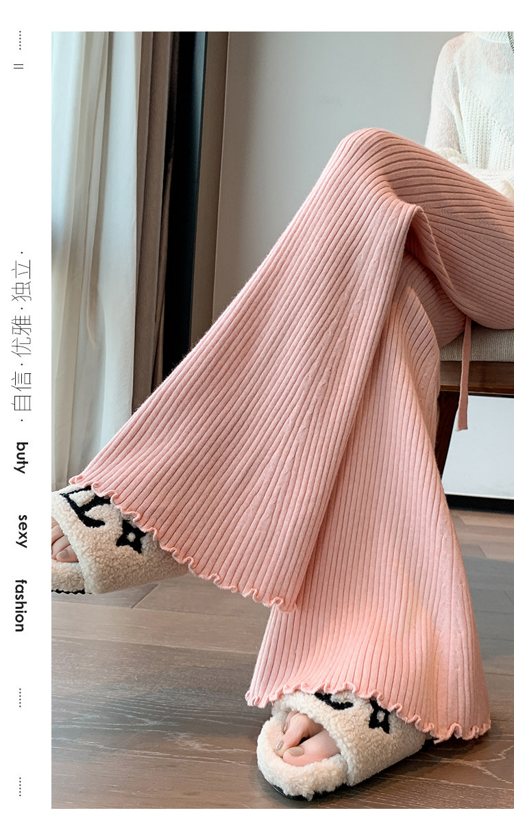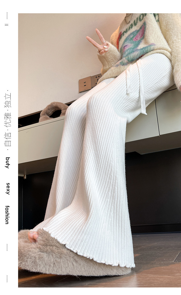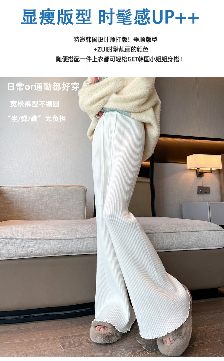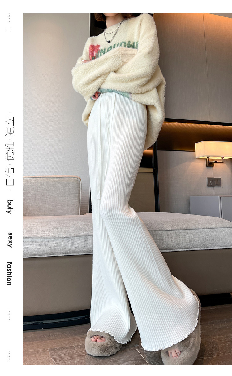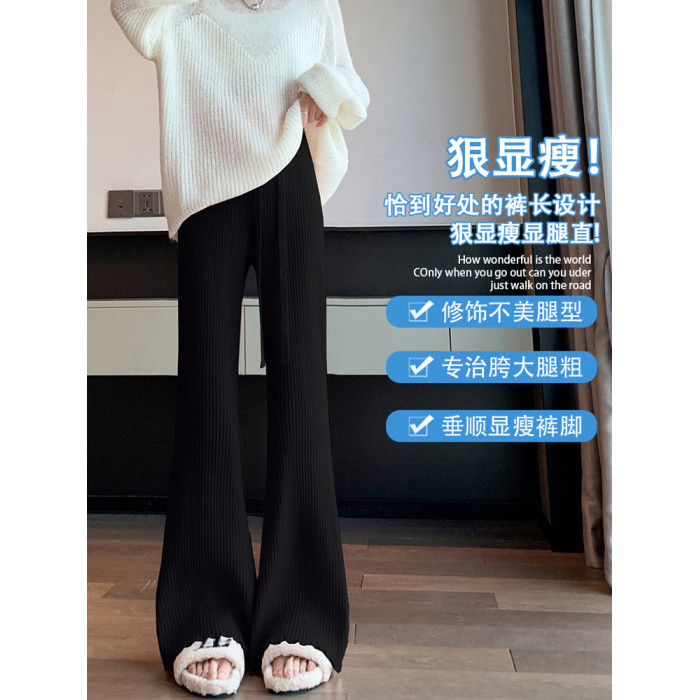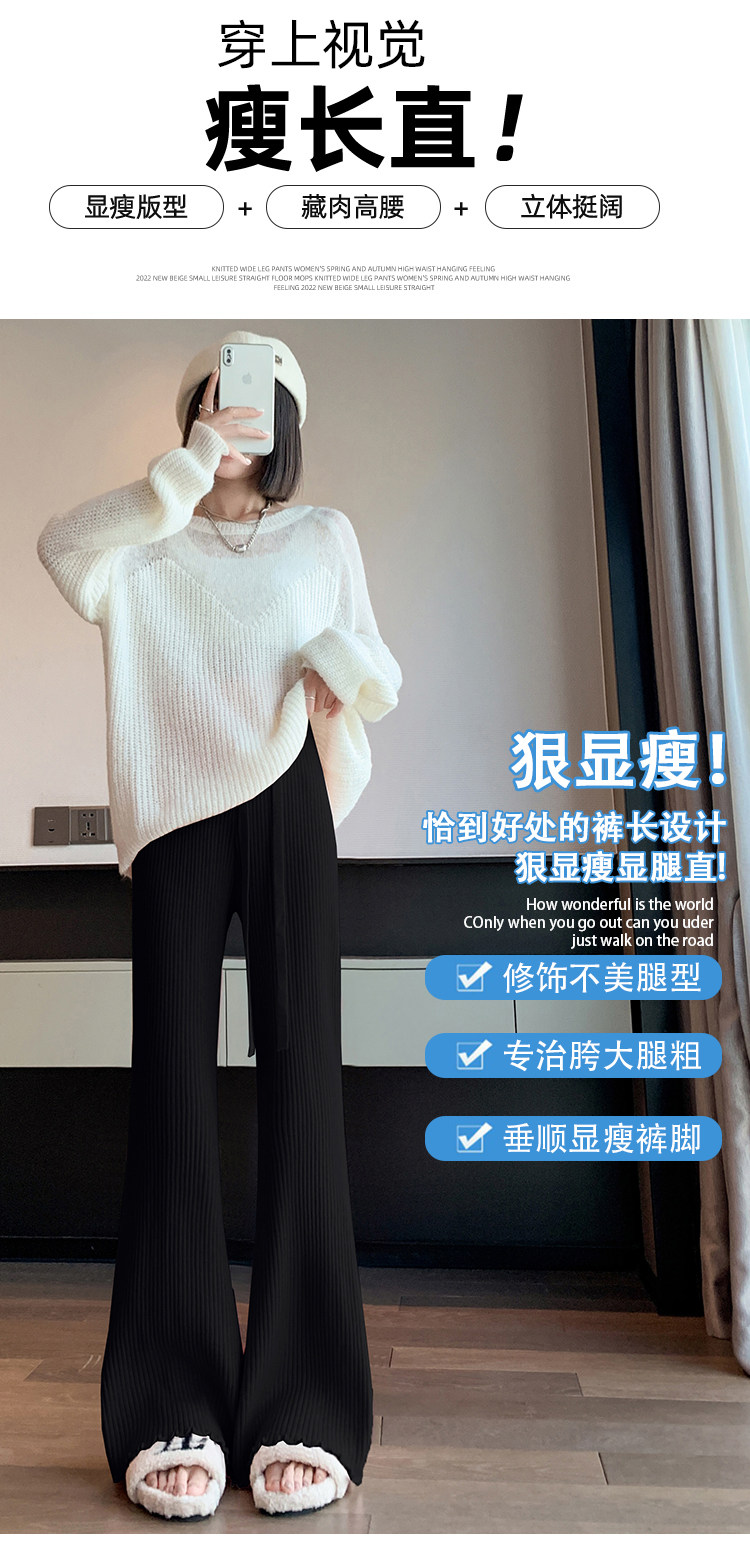軟糯坑條針織褲子女秋冬加厚高腰顯瘦濶腿褲寬鬆休閒垂感微喇叭褲