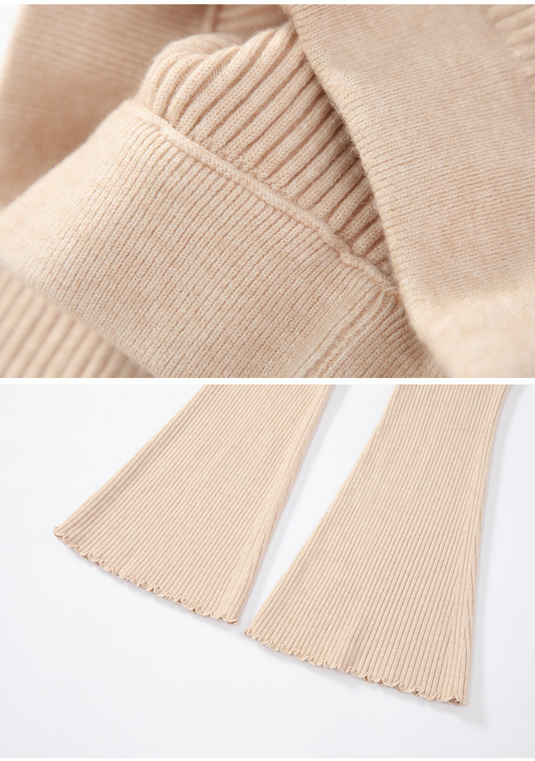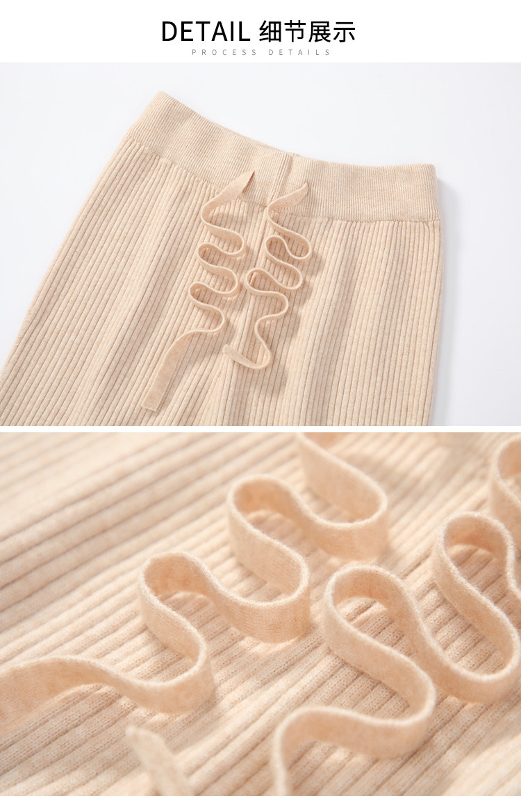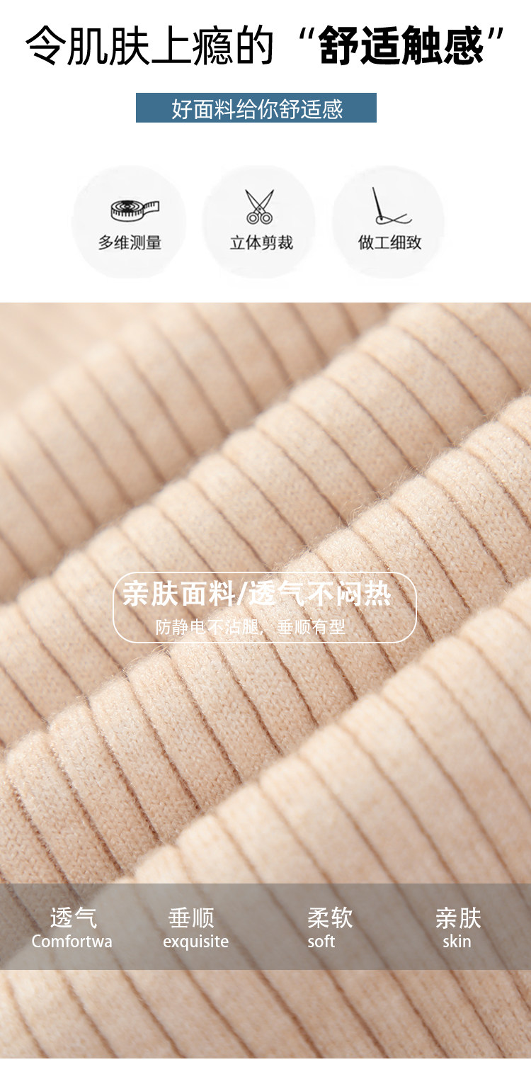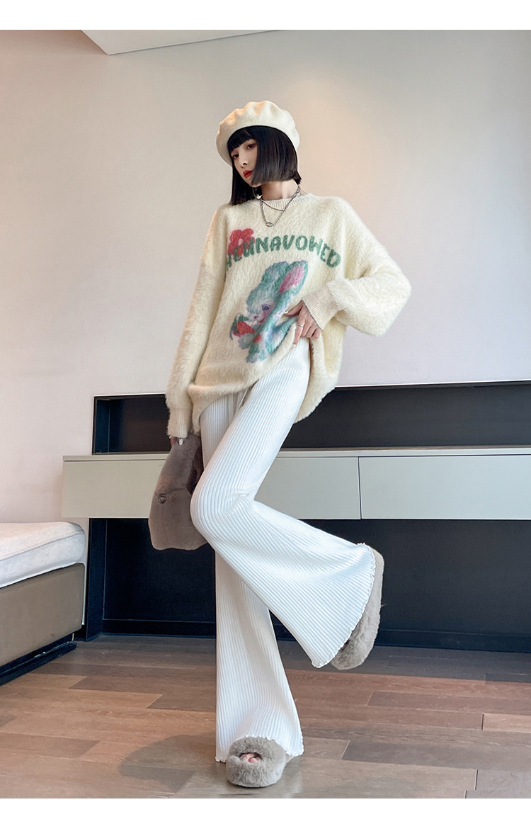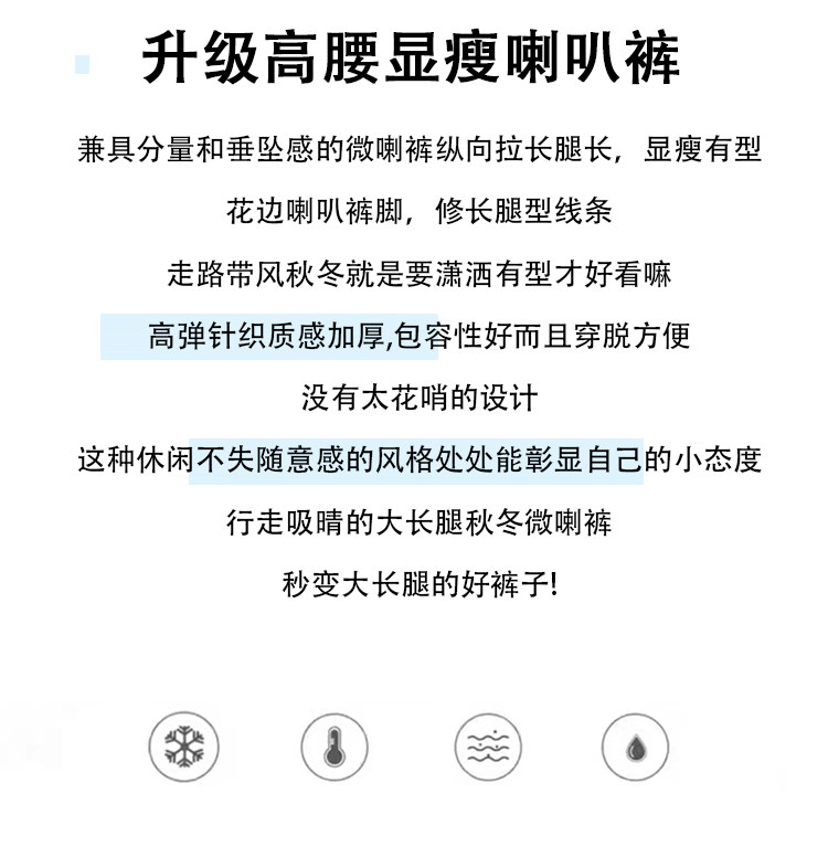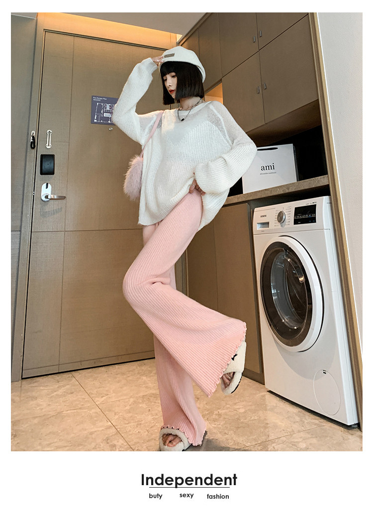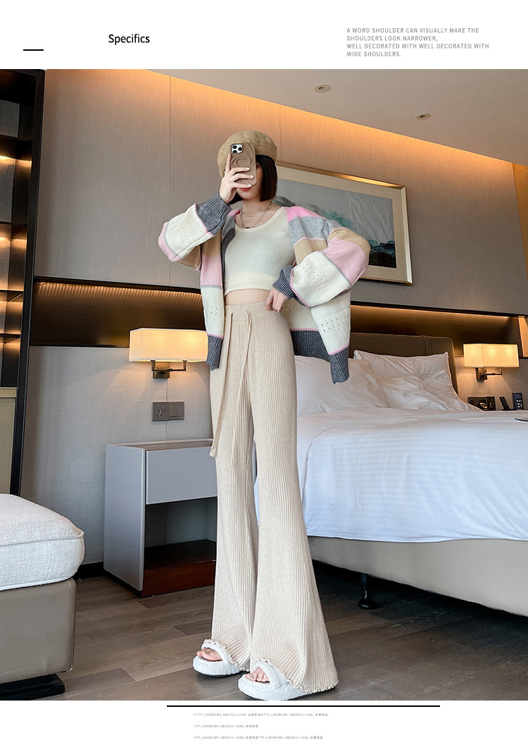 軟糯坑條針織褲子女秋冬加厚高腰顯瘦濶腿褲寬鬆休閒垂感微喇叭褲