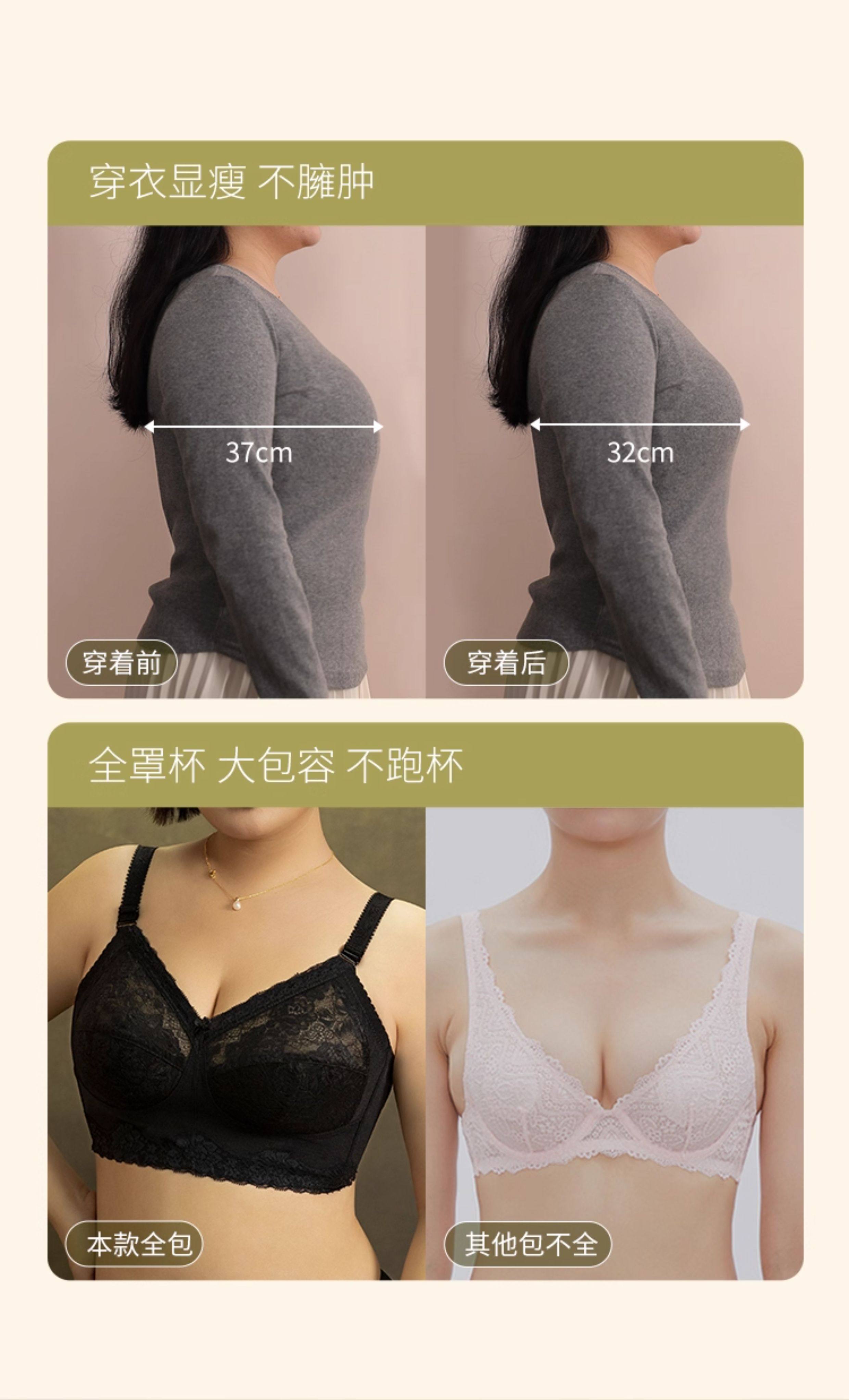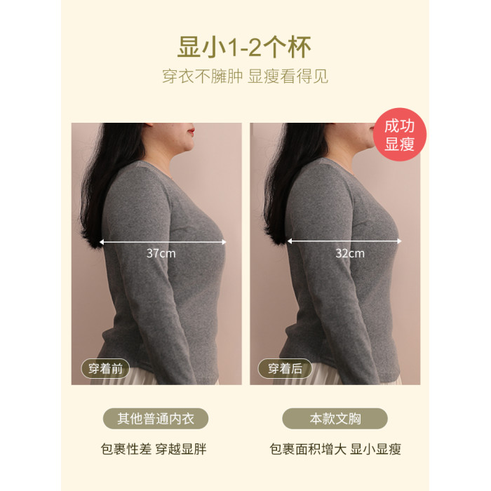 大胸顯小內衣女薄款無鋼圈大碼胖mm200斤收副乳大罩杯文胸夏季bra