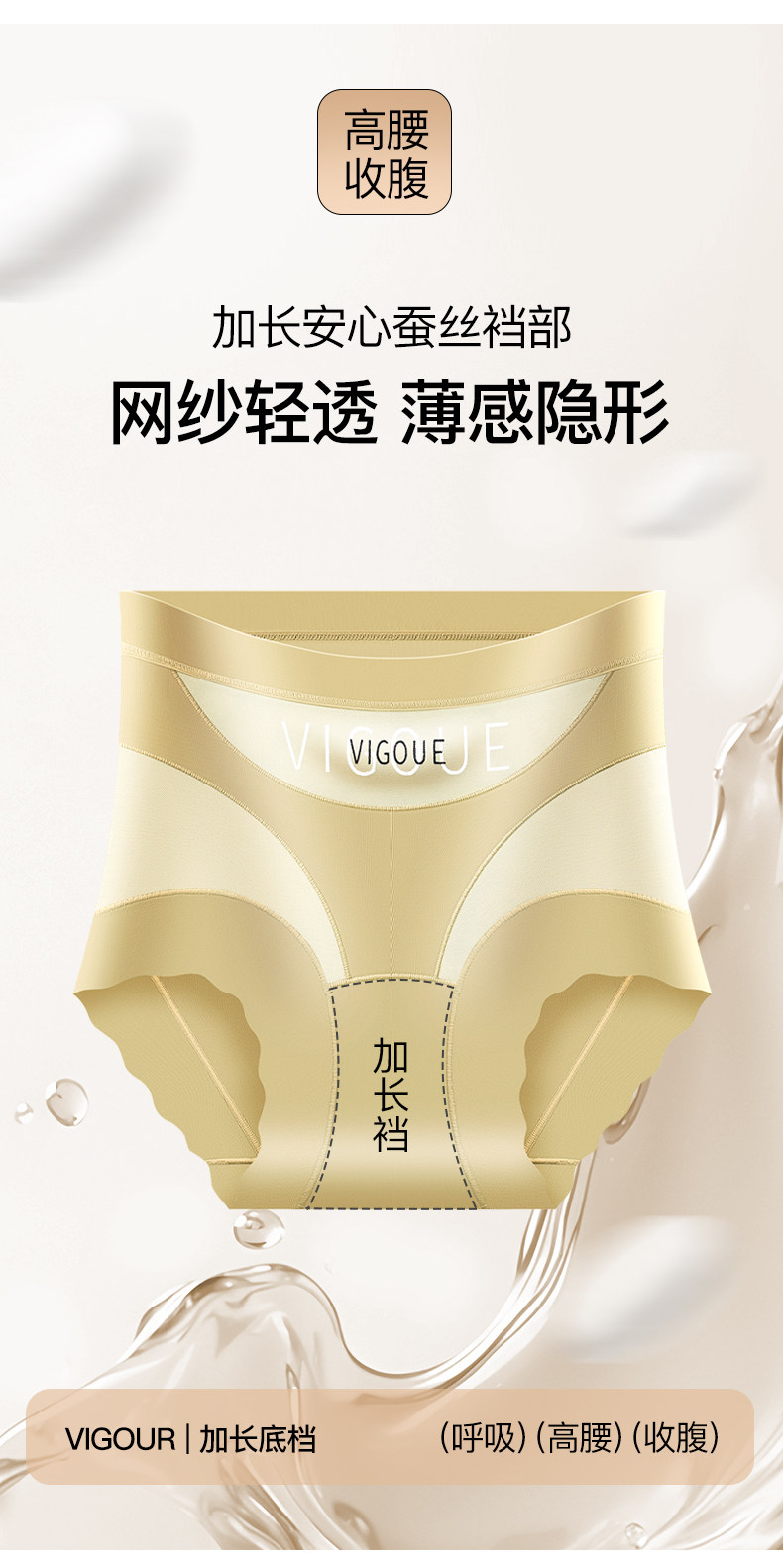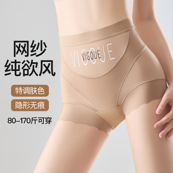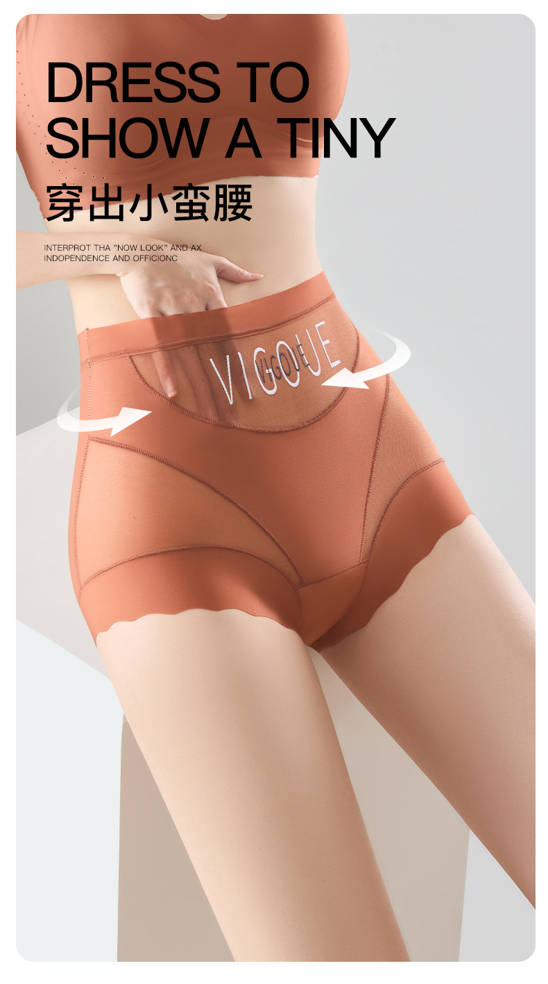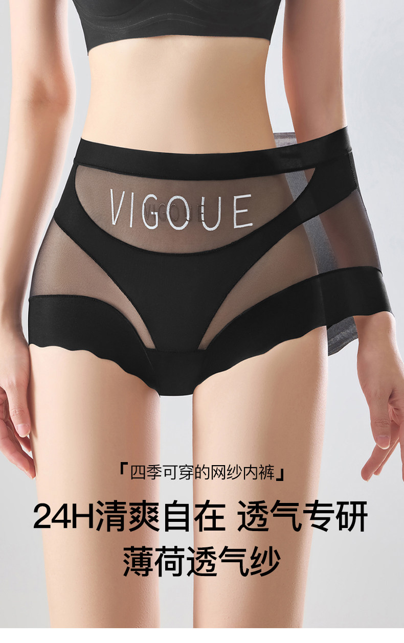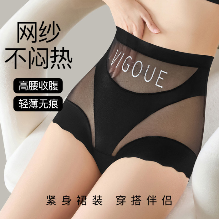高腰收腹提臀內褲抑菌桑蠶絲襠女士薄款網紗透氣無痕塑身三角褲女
