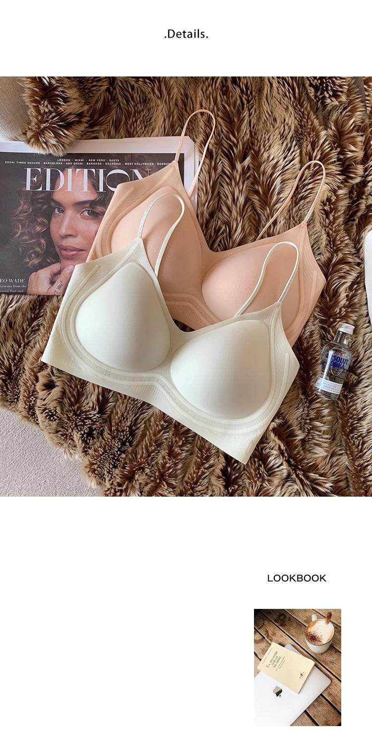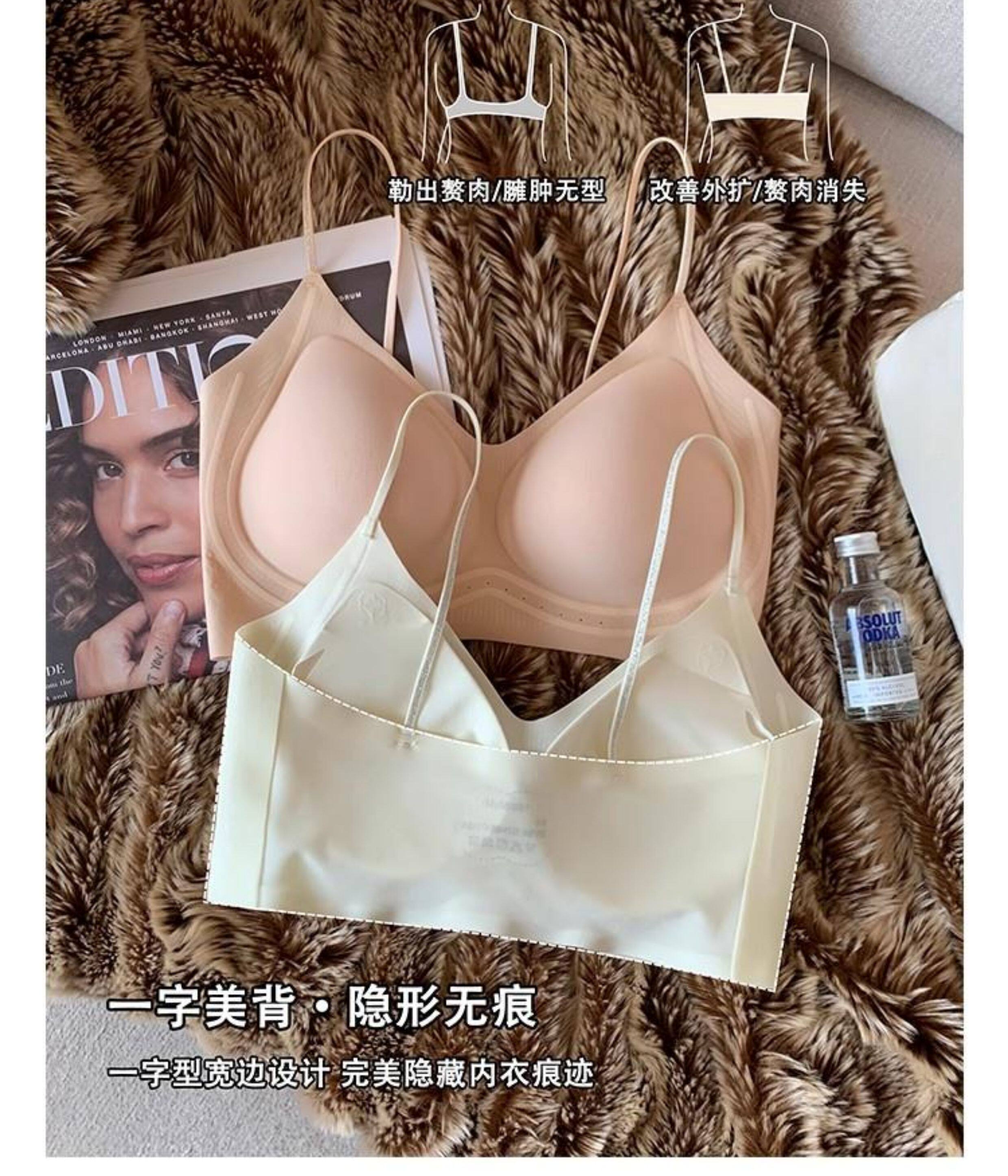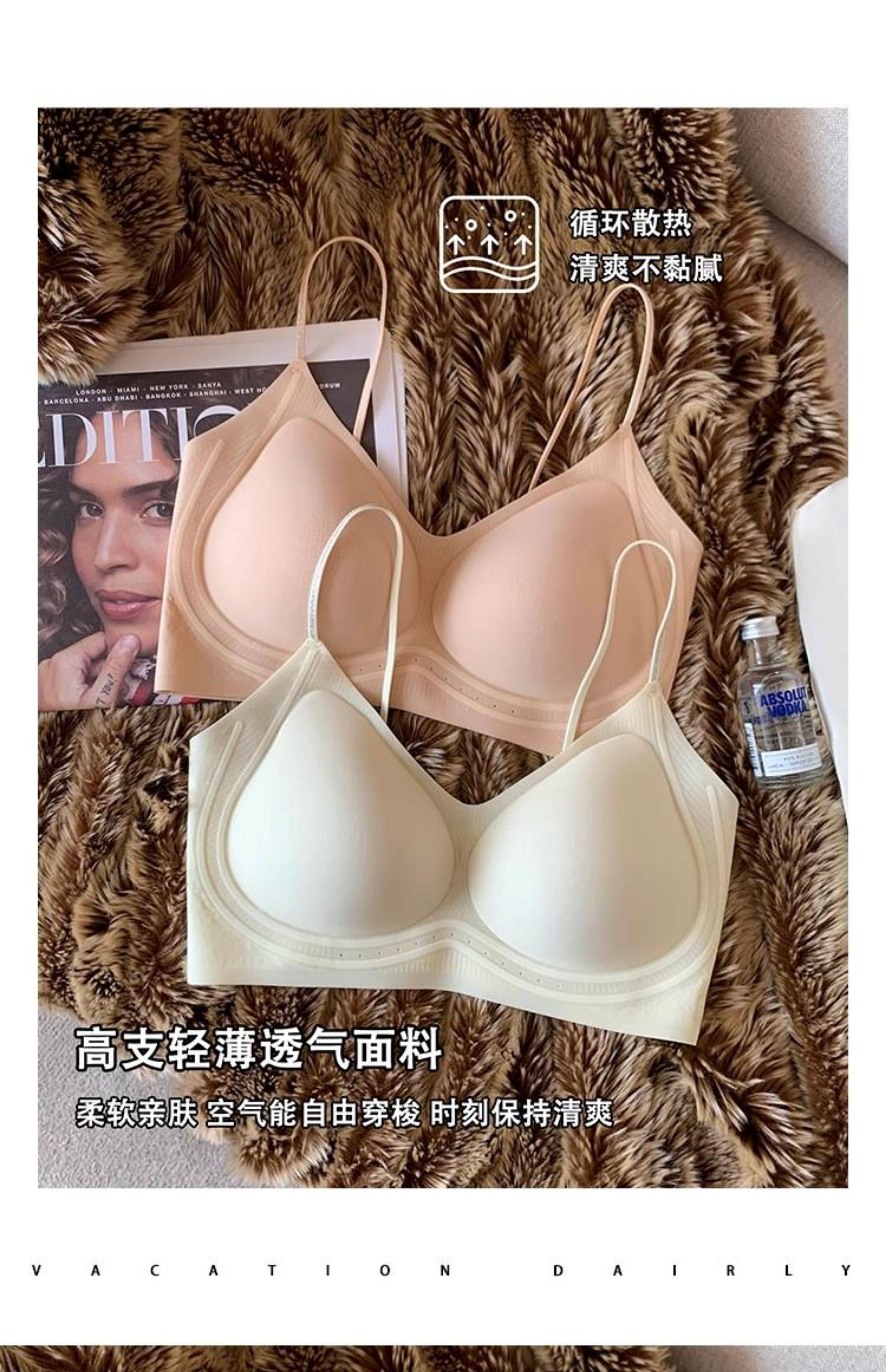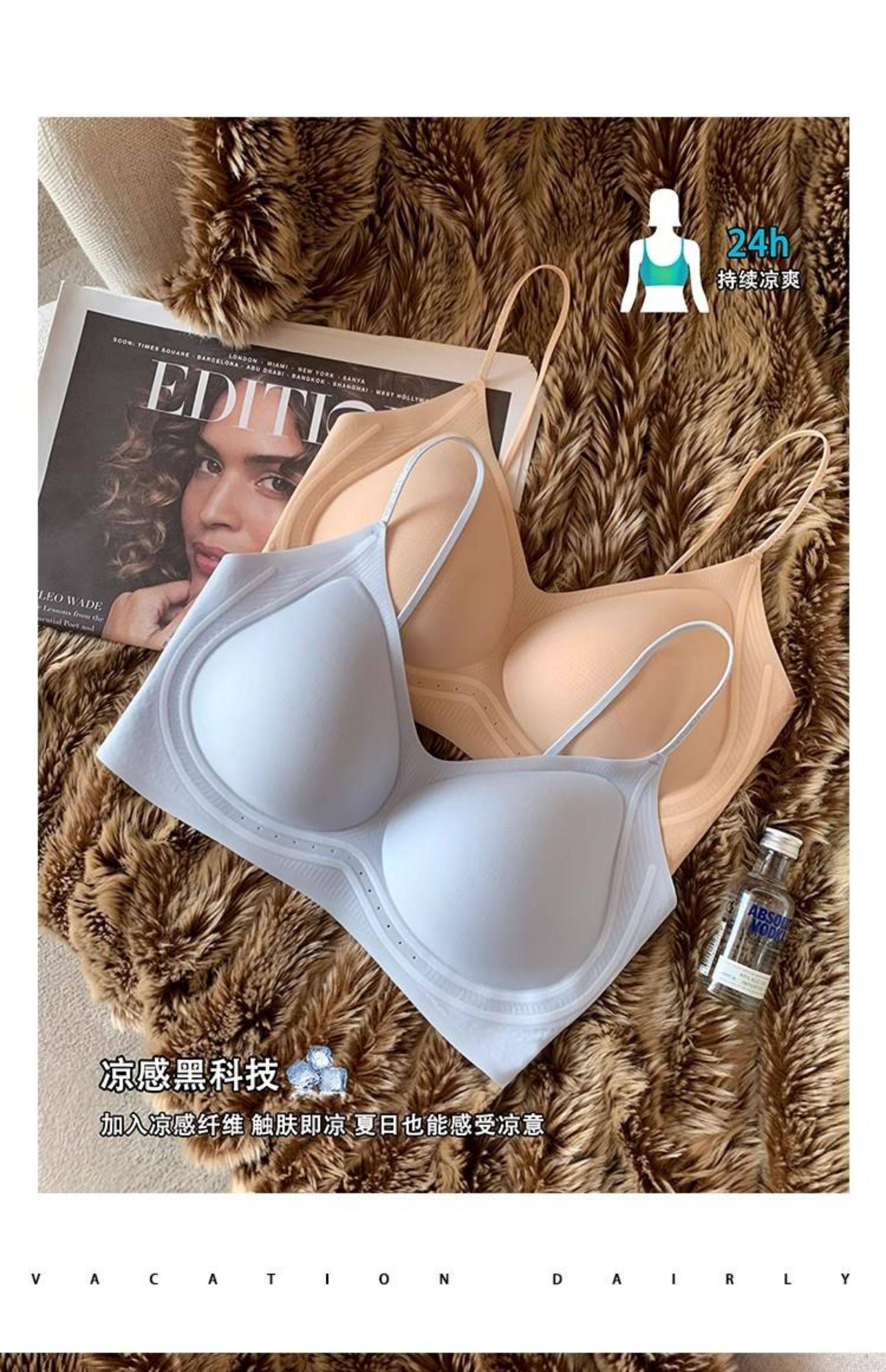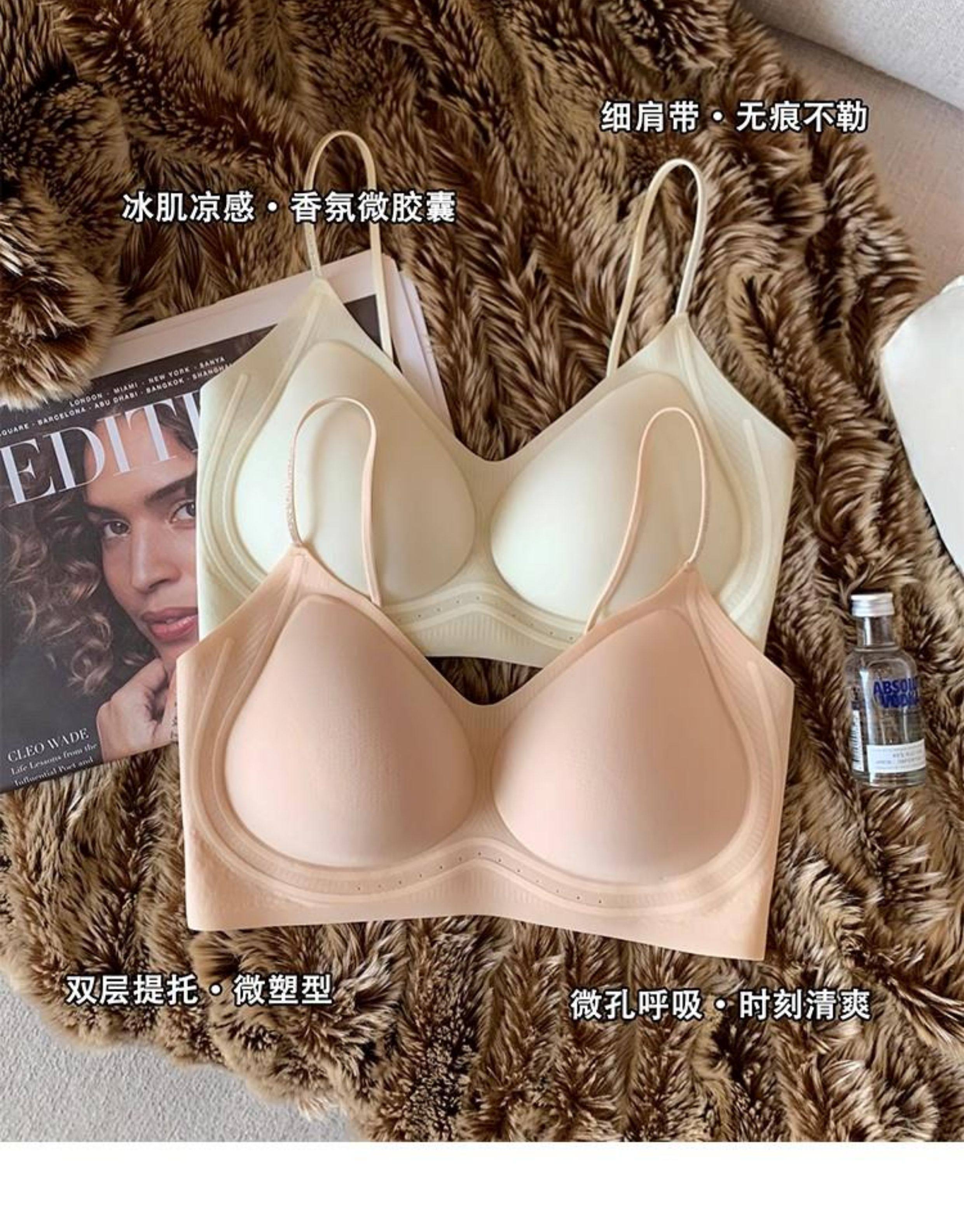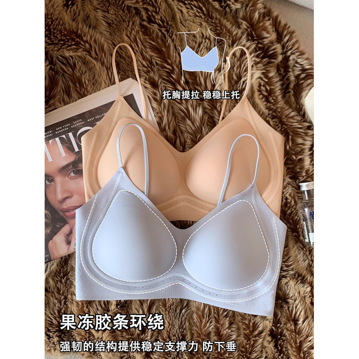 超薄涼感無痕粉底液透氣內衣女小胸聚攏細肩帶美背運動背心文胸夏