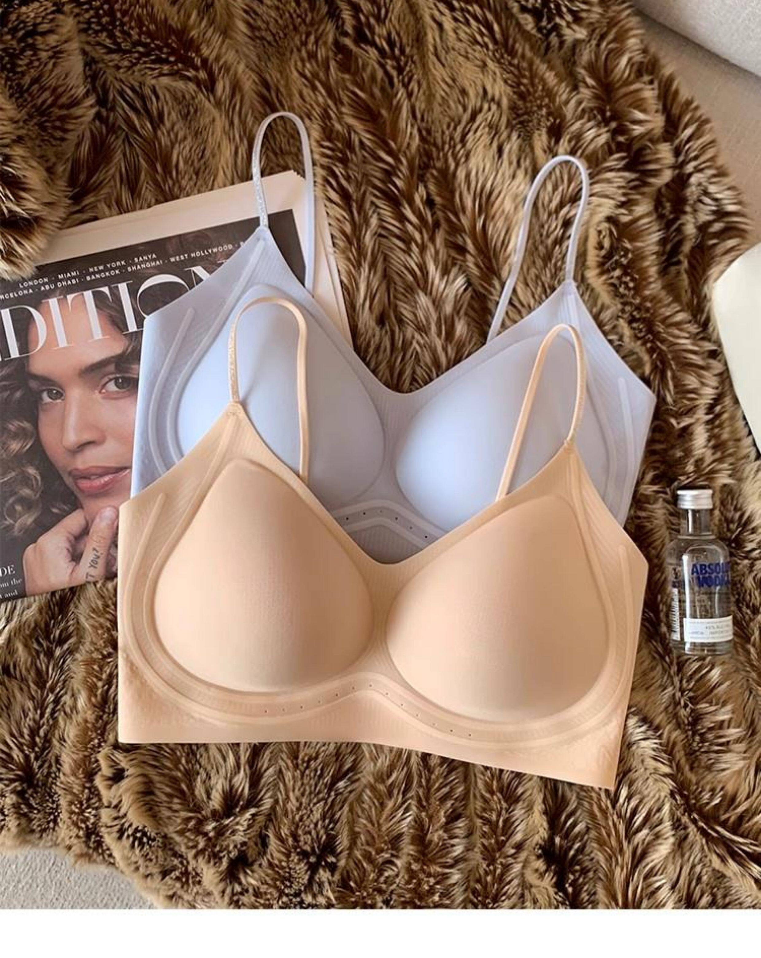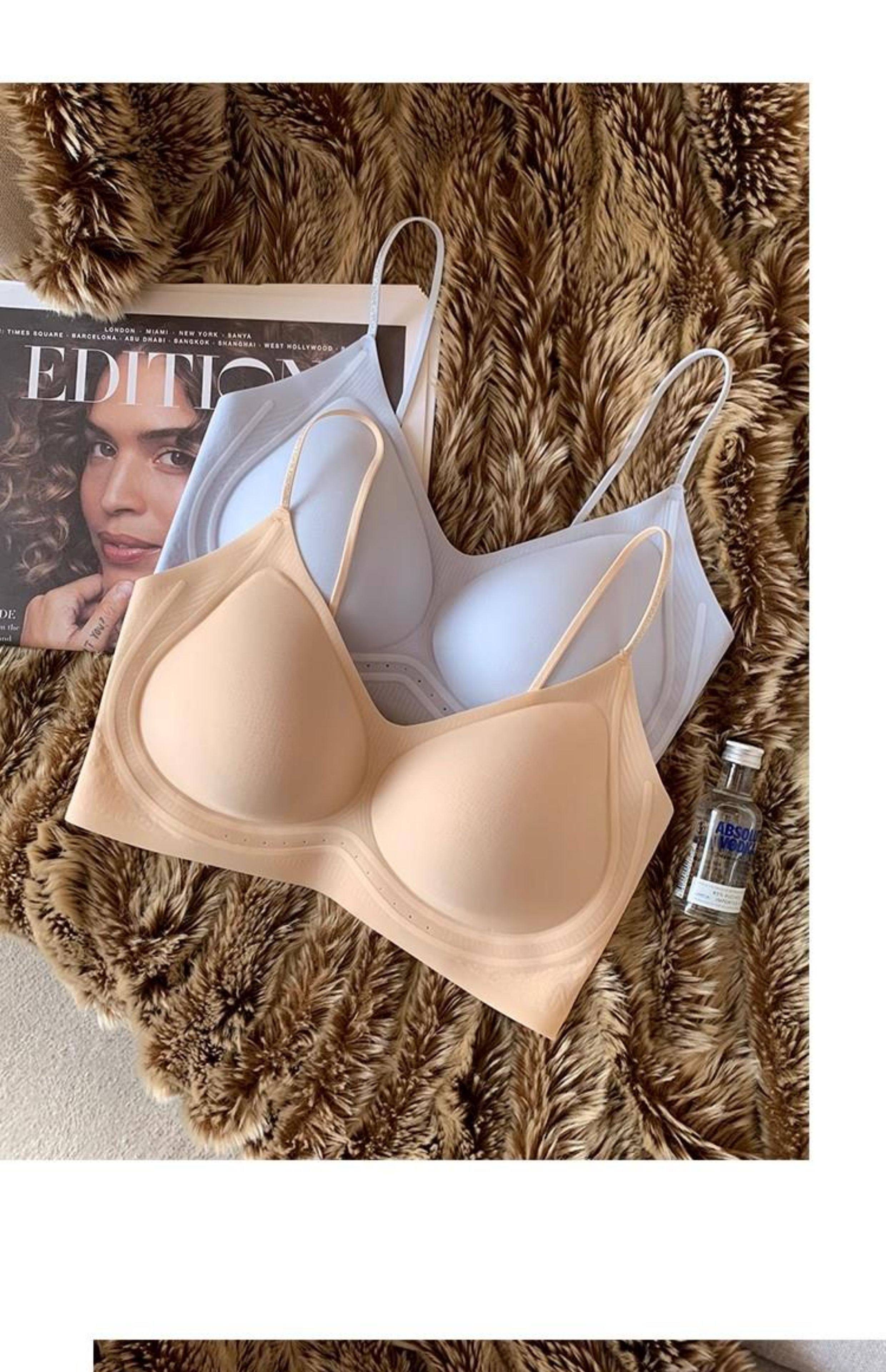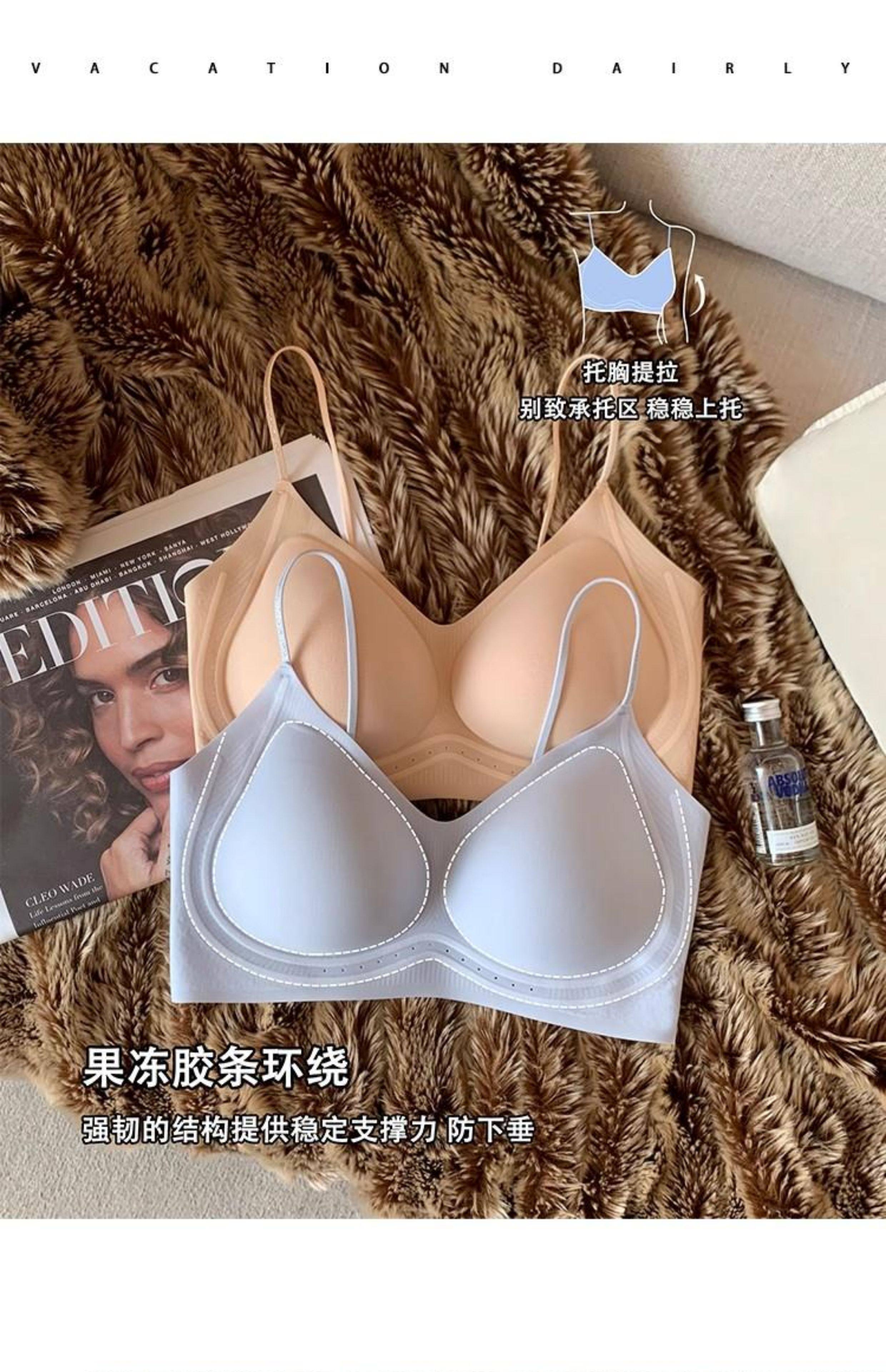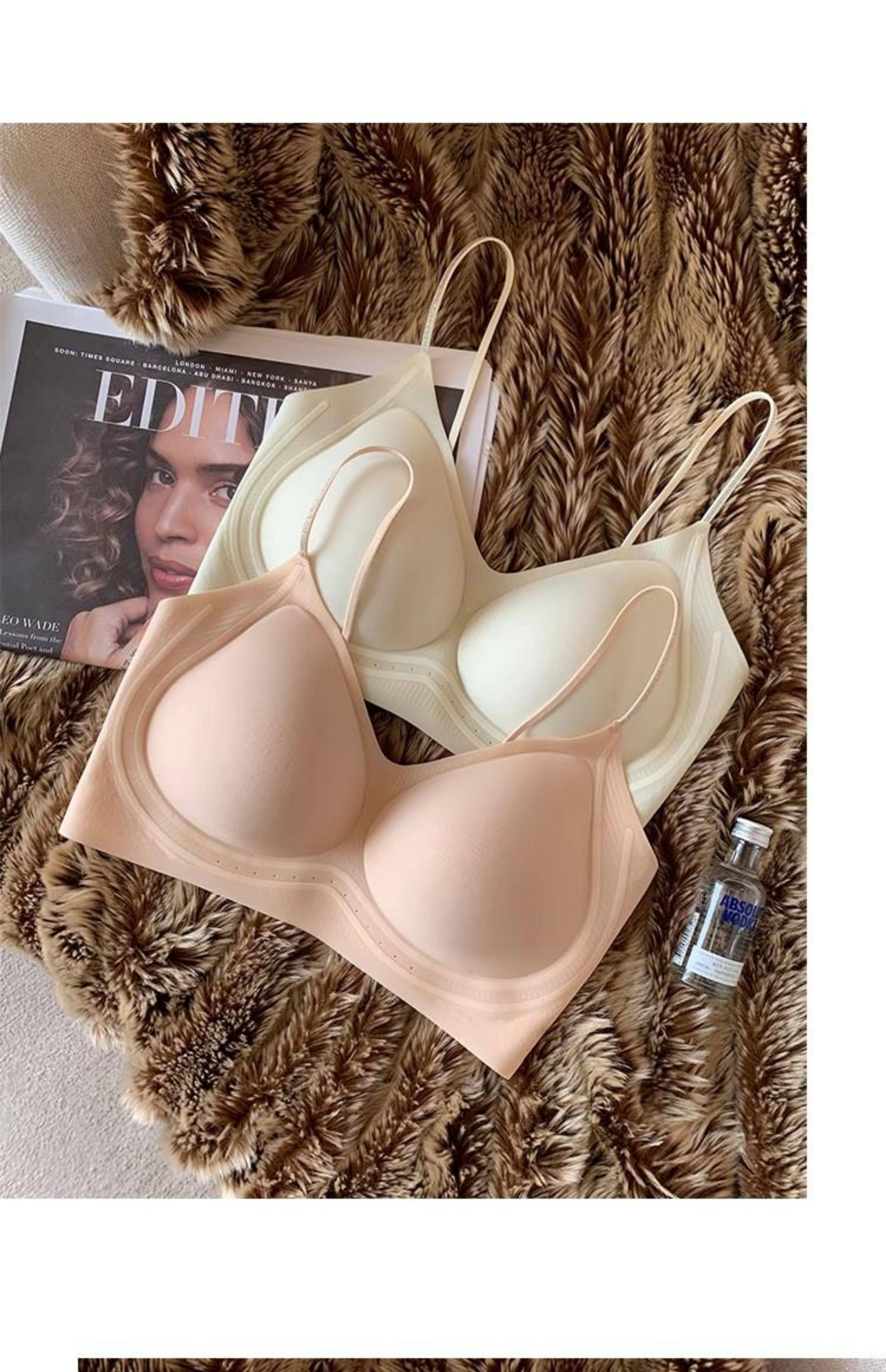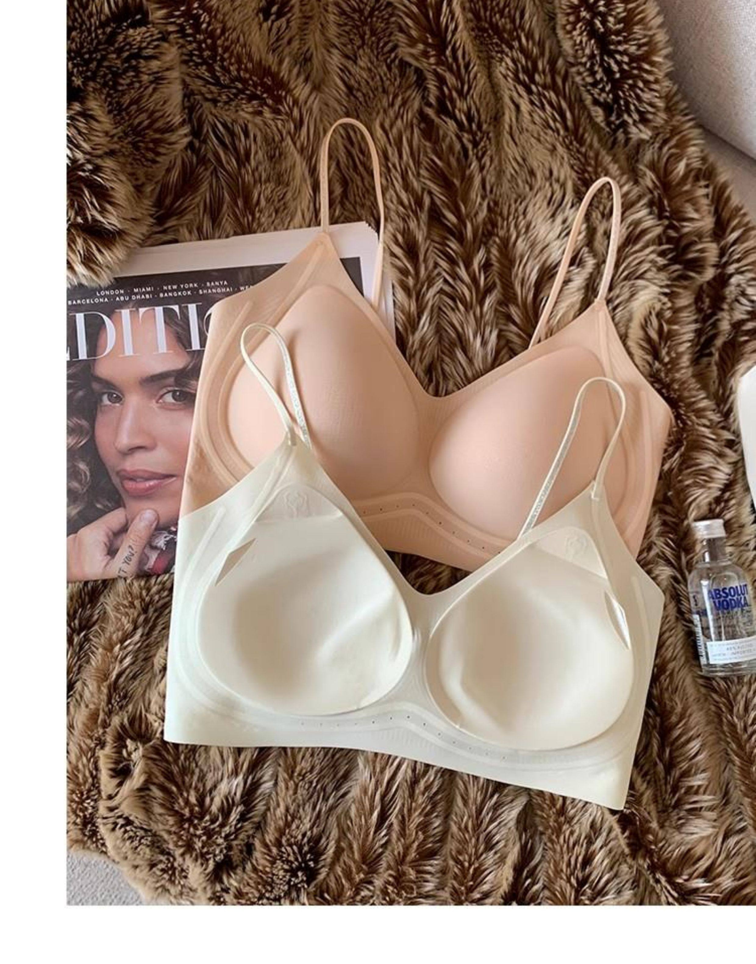超薄涼感無痕粉底液透氣內衣女小胸聚攏細肩帶美背運動背心文胸夏