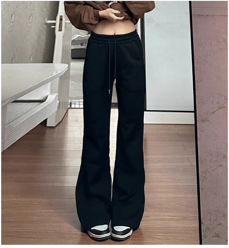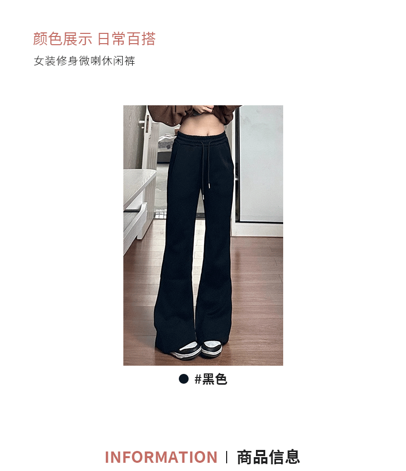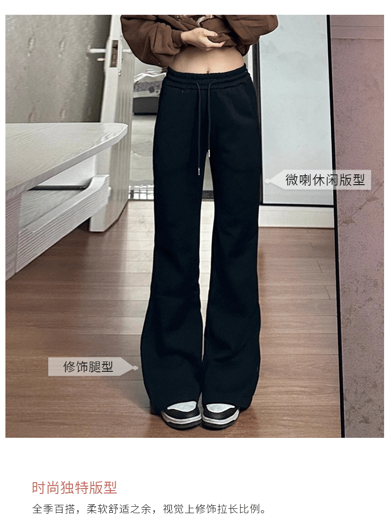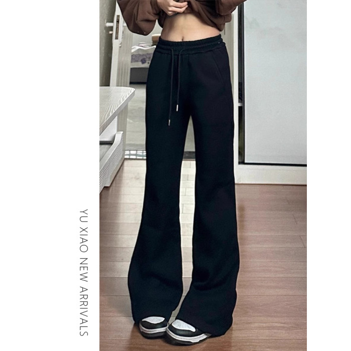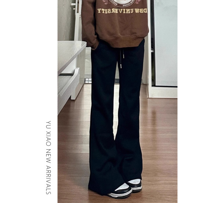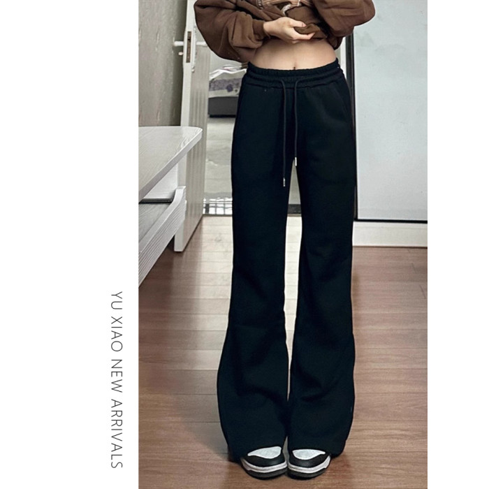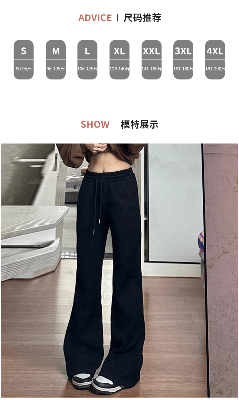 黑色休閒微喇褲女春季新款大碼顯瘦胖mm彈力梨形身材運動喇叭衛褲