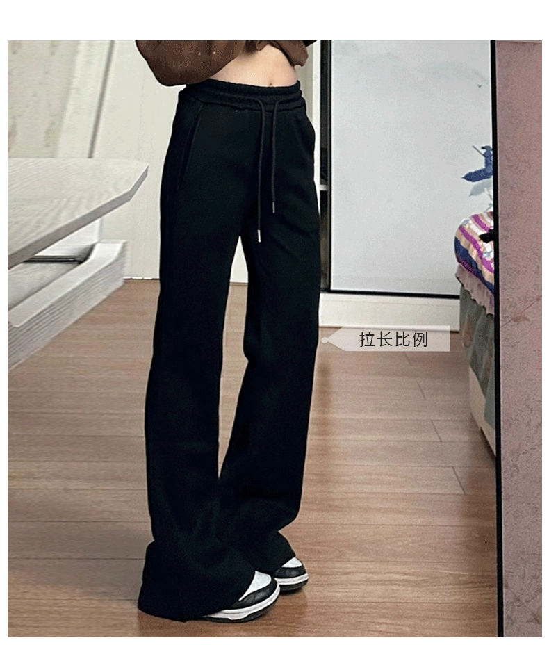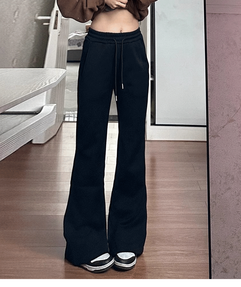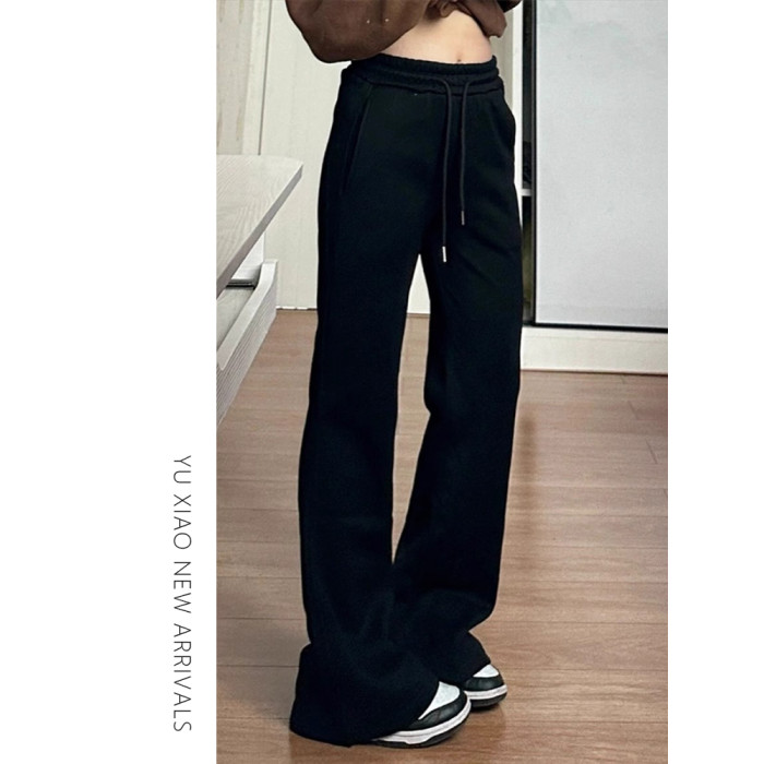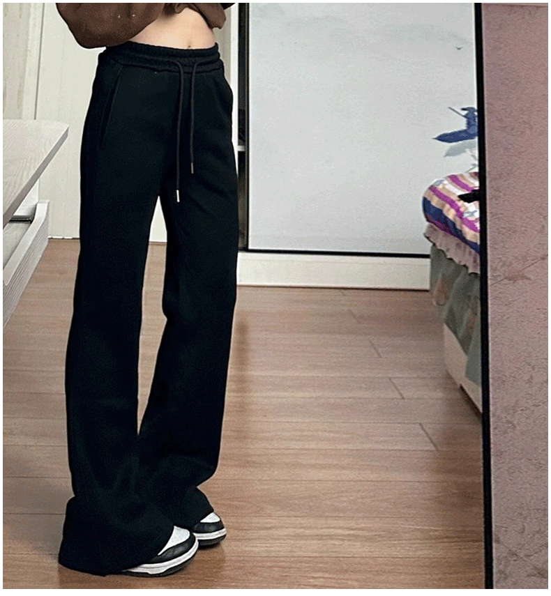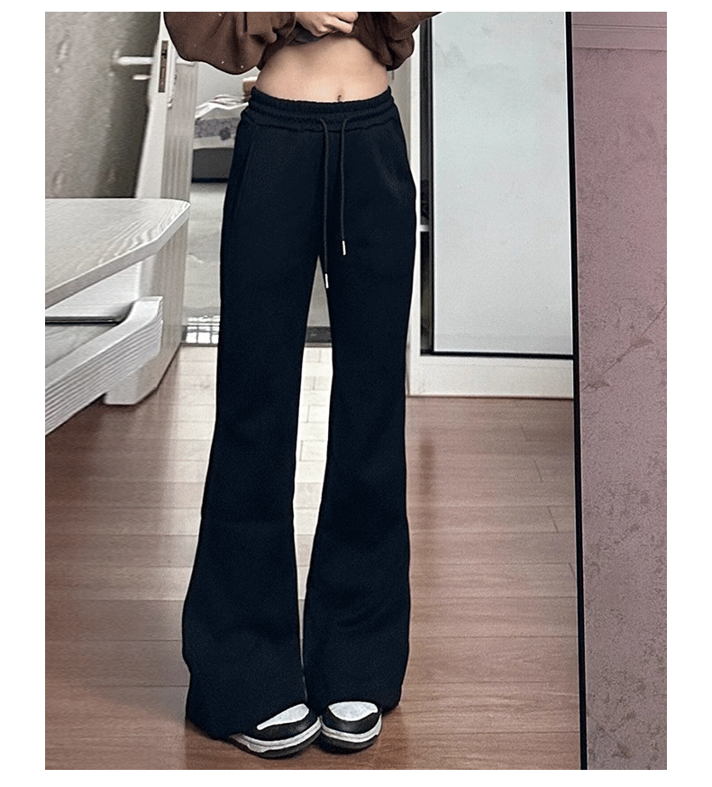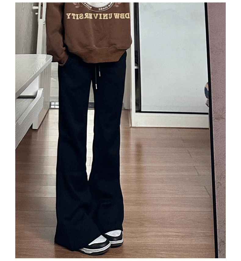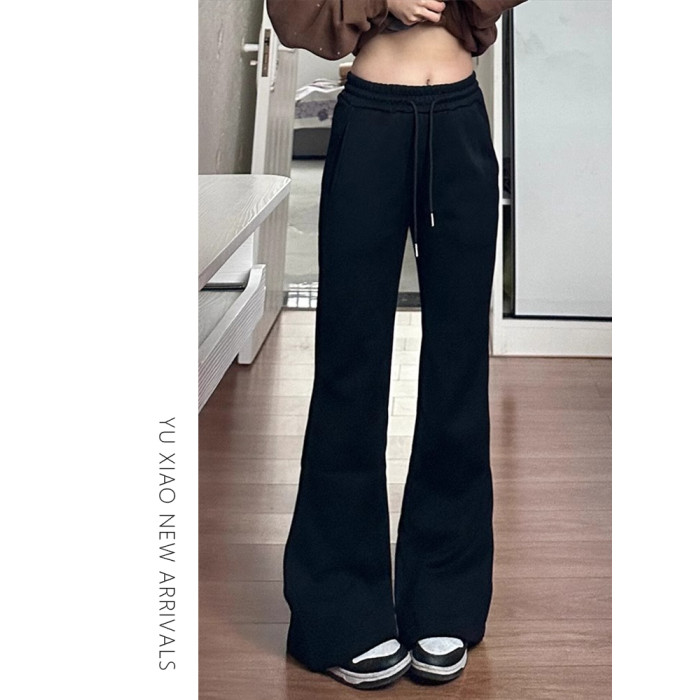 黑色休閒微喇褲女春季新款大碼顯瘦胖mm彈力梨形身材運動喇叭衛褲