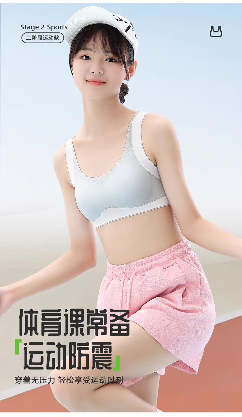 貓人新款二階段發育期內衣初高中學生女孩運動防震少女文胸背心