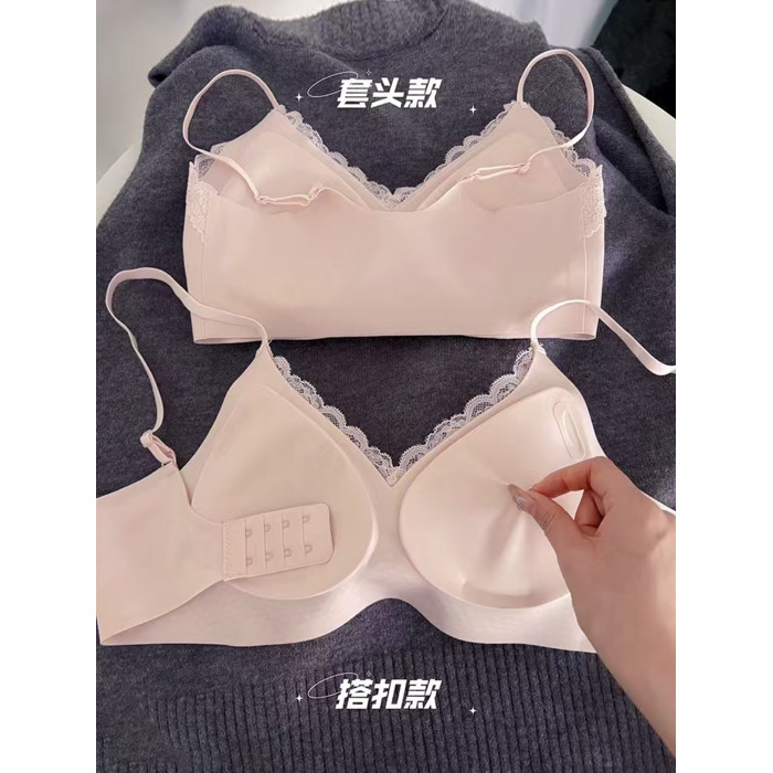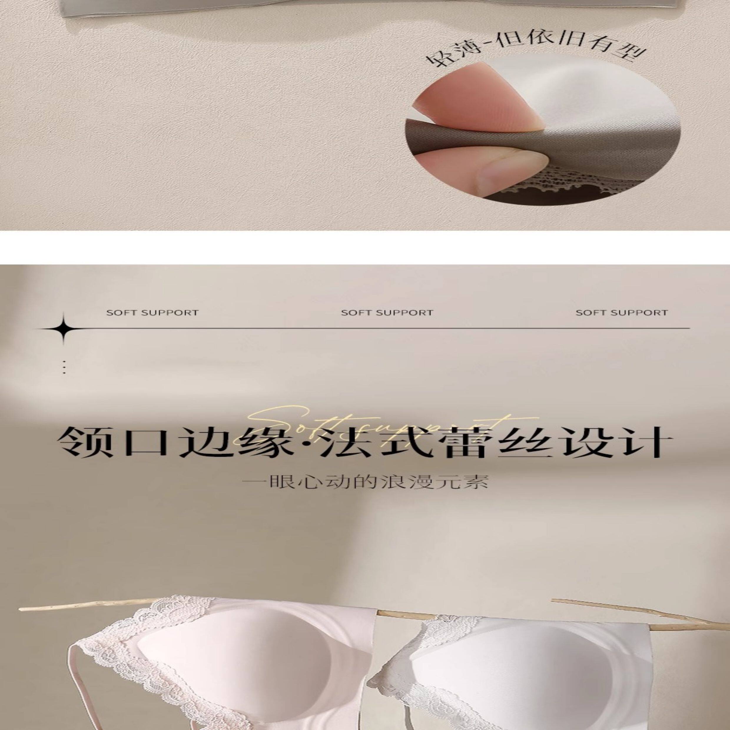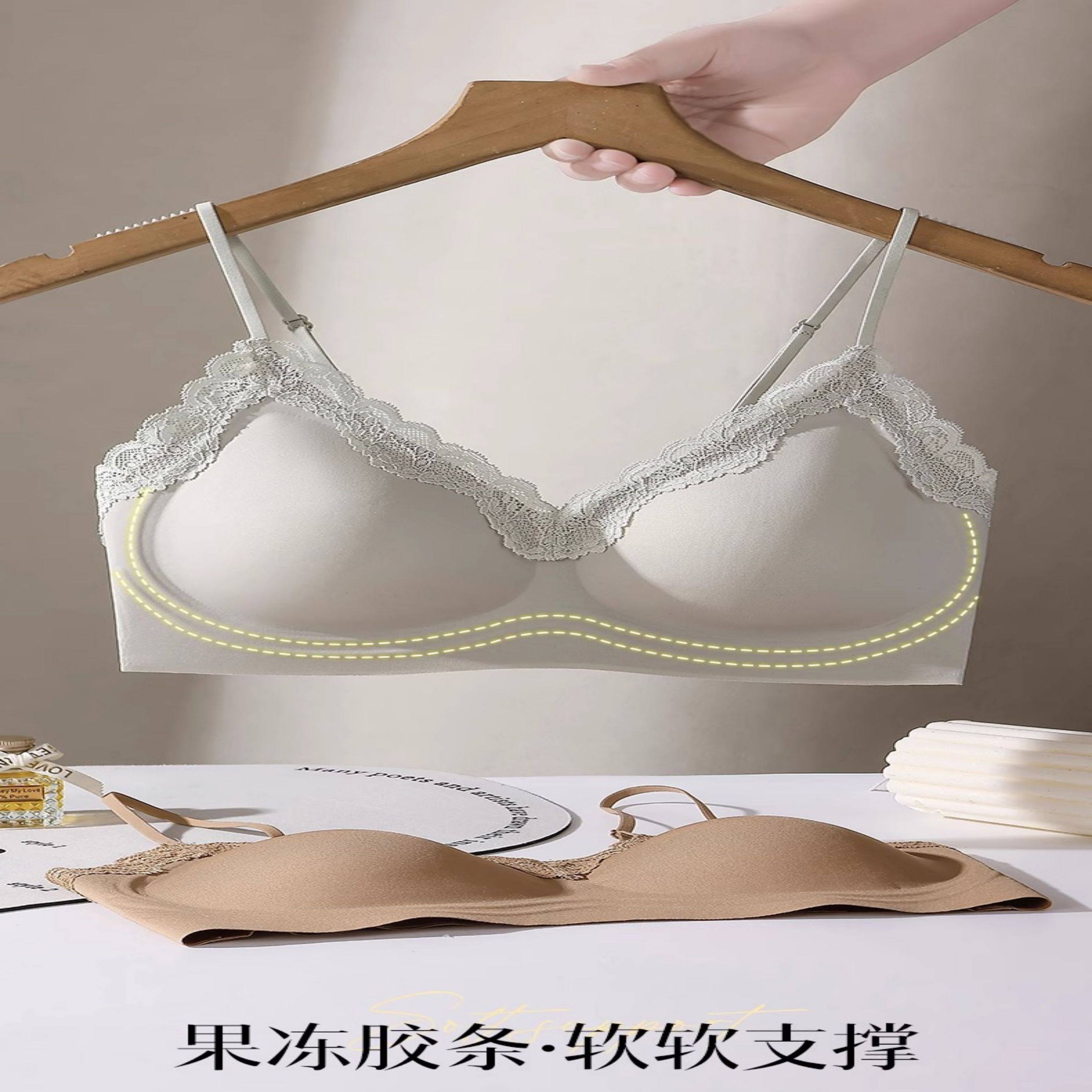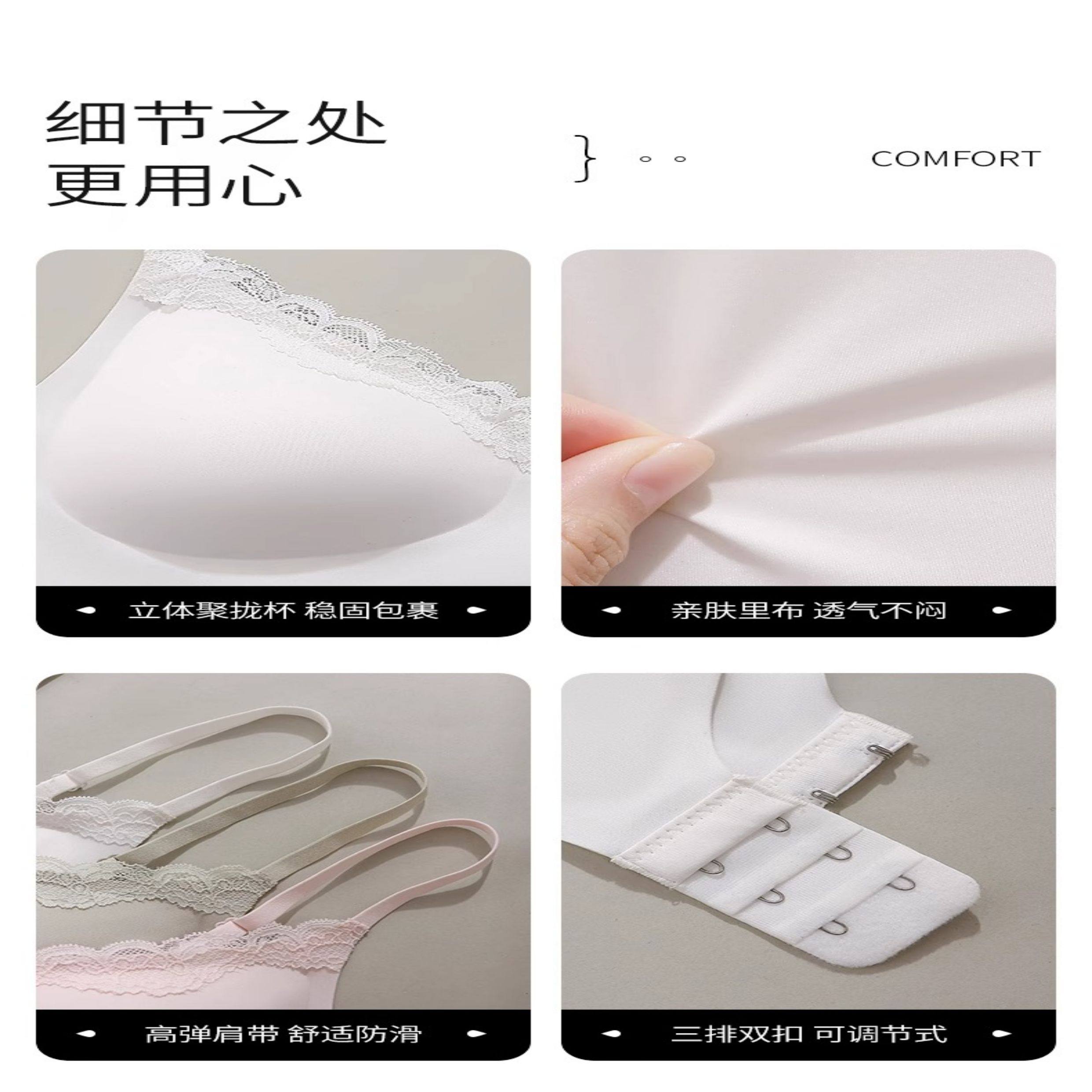 蕾絲內衣女聚攏小胸無痕無鋼圈一體式固定杯細肩帶美背夏薄款文胸