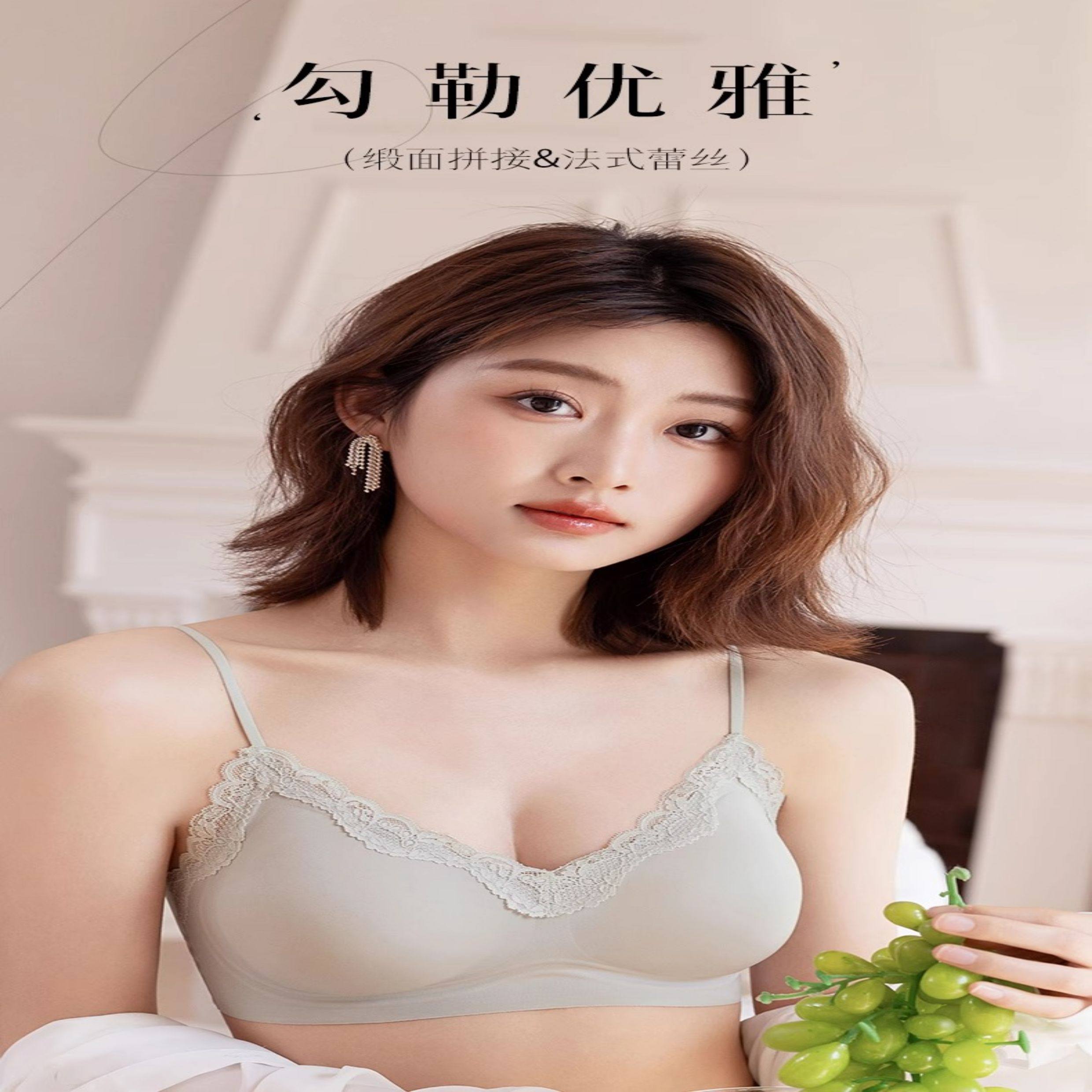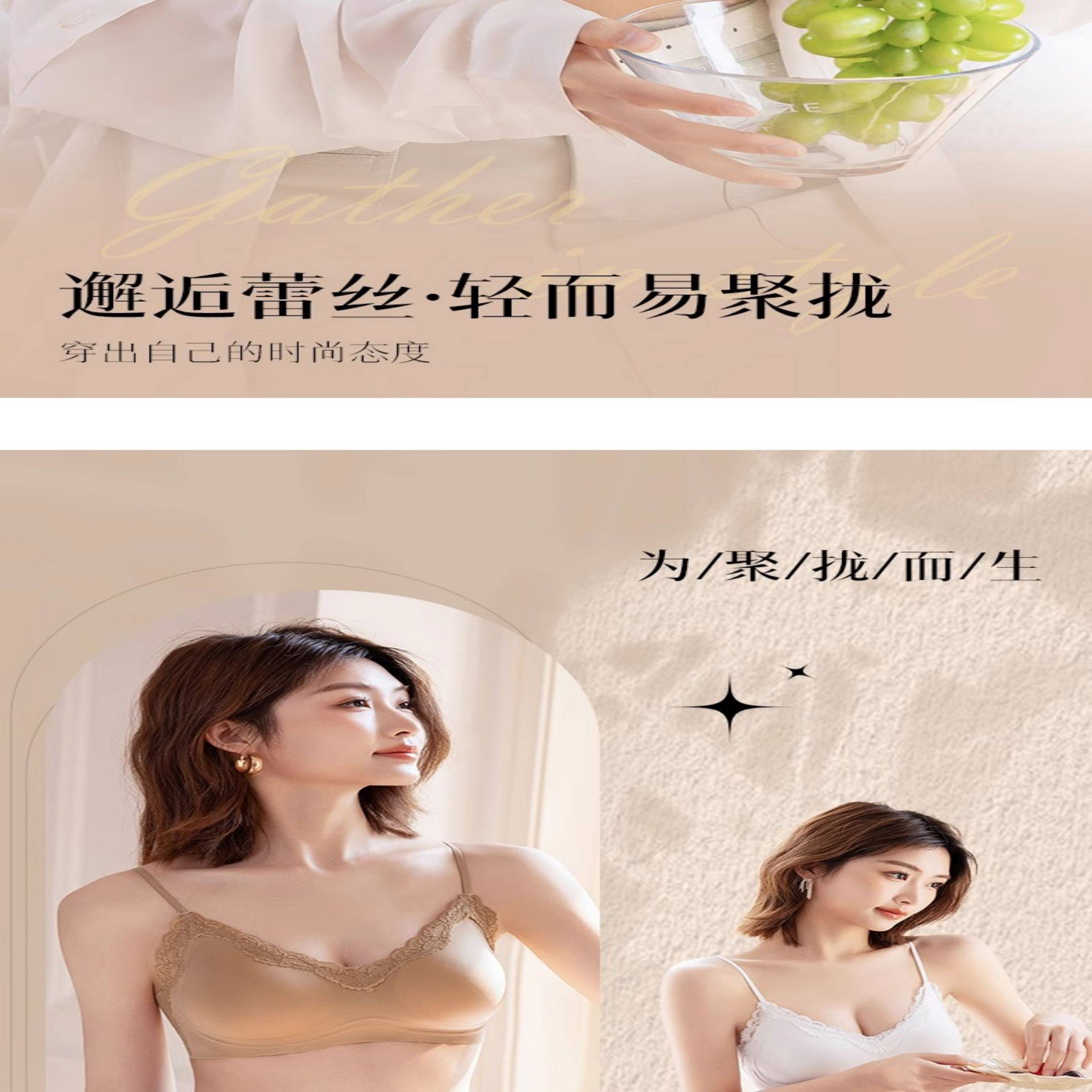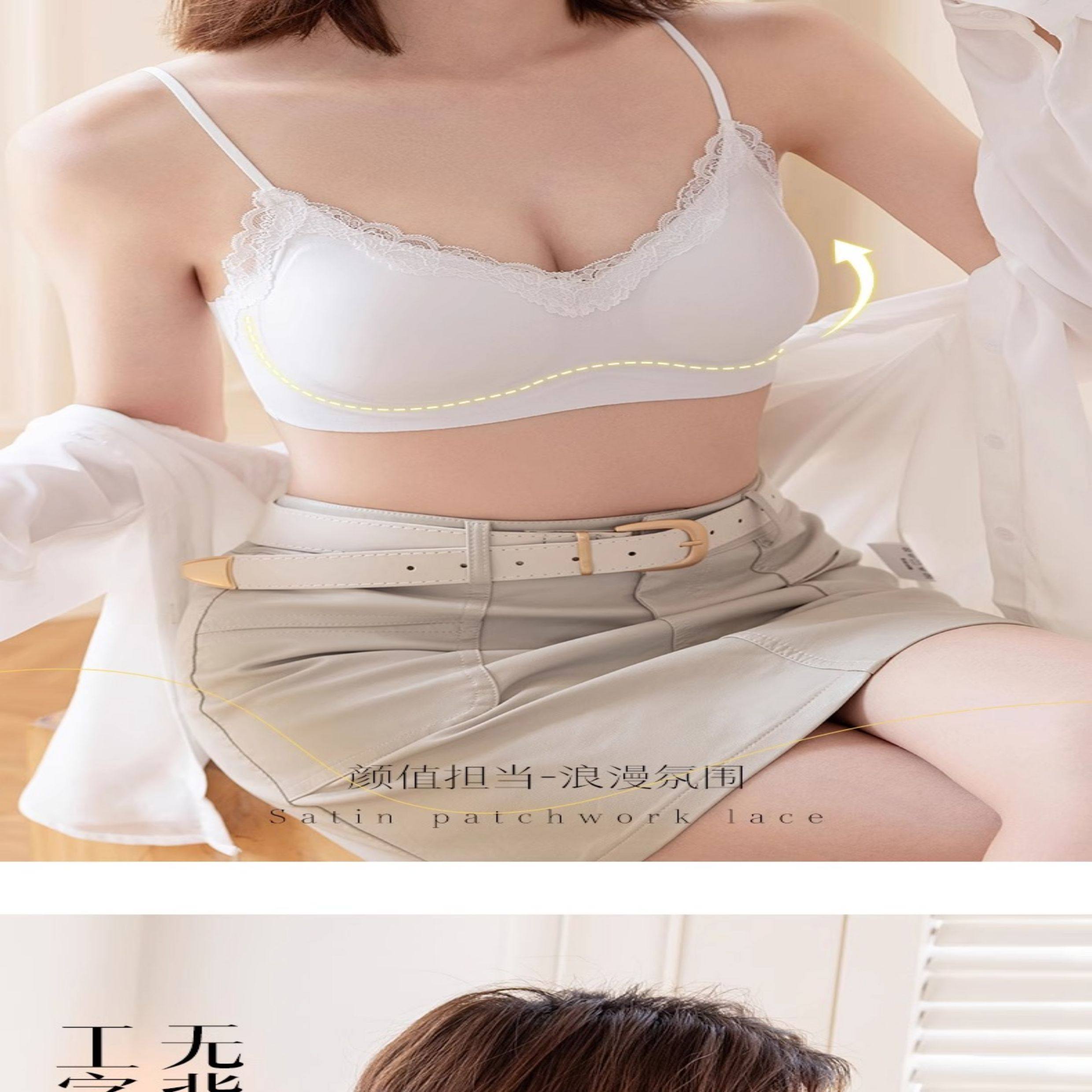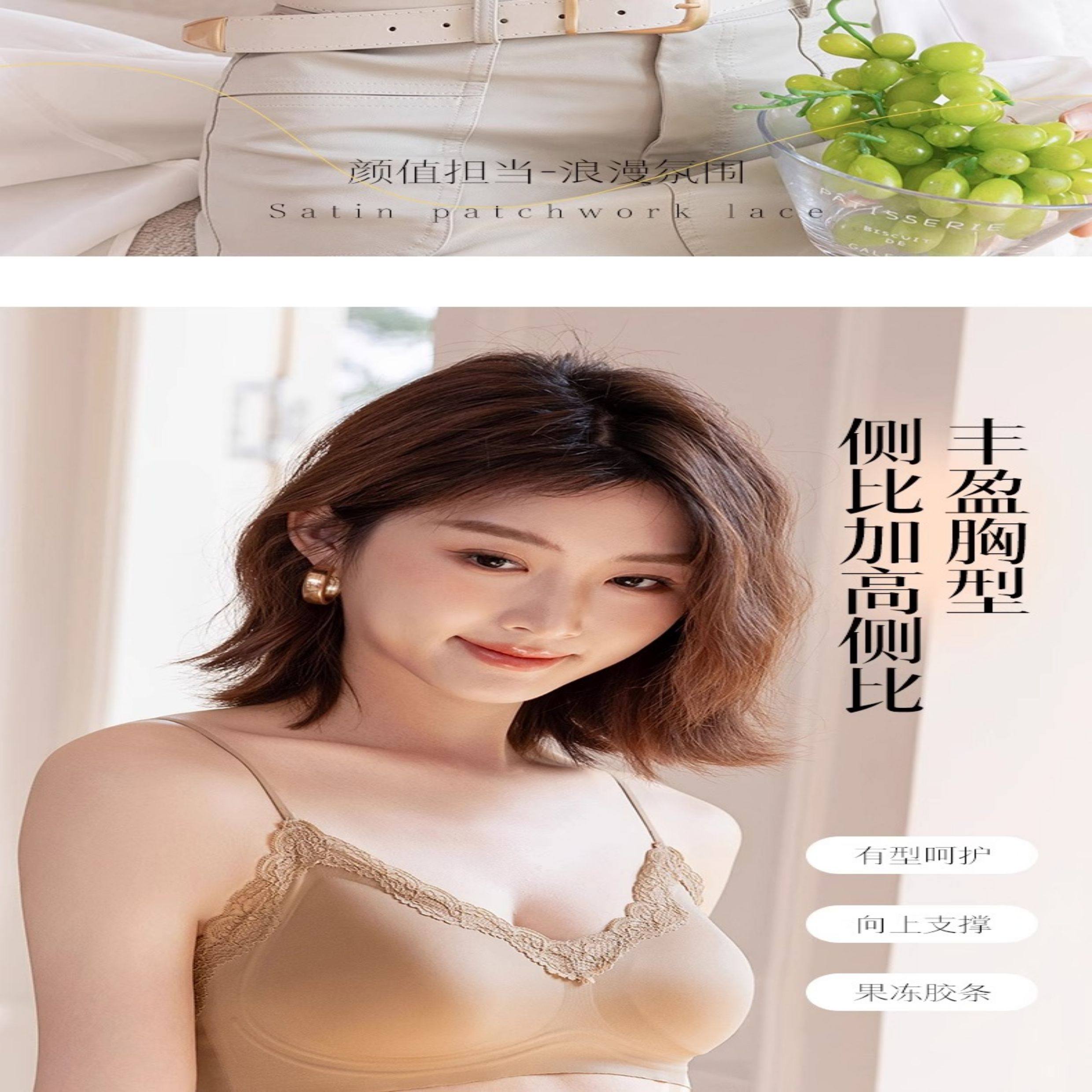 蕾絲內衣女聚攏小胸無痕無鋼圈一體式固定杯細肩帶美背夏薄款文胸