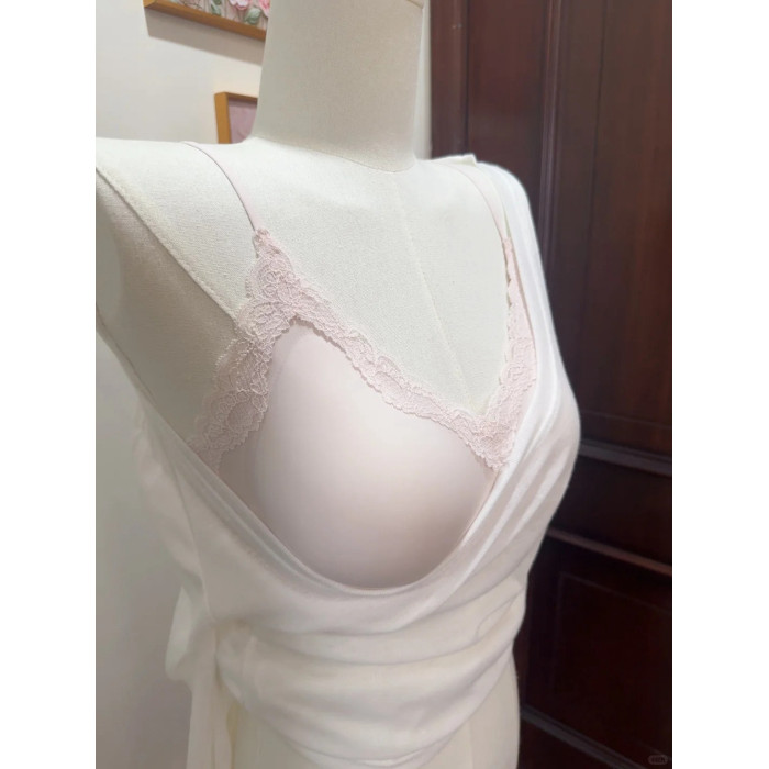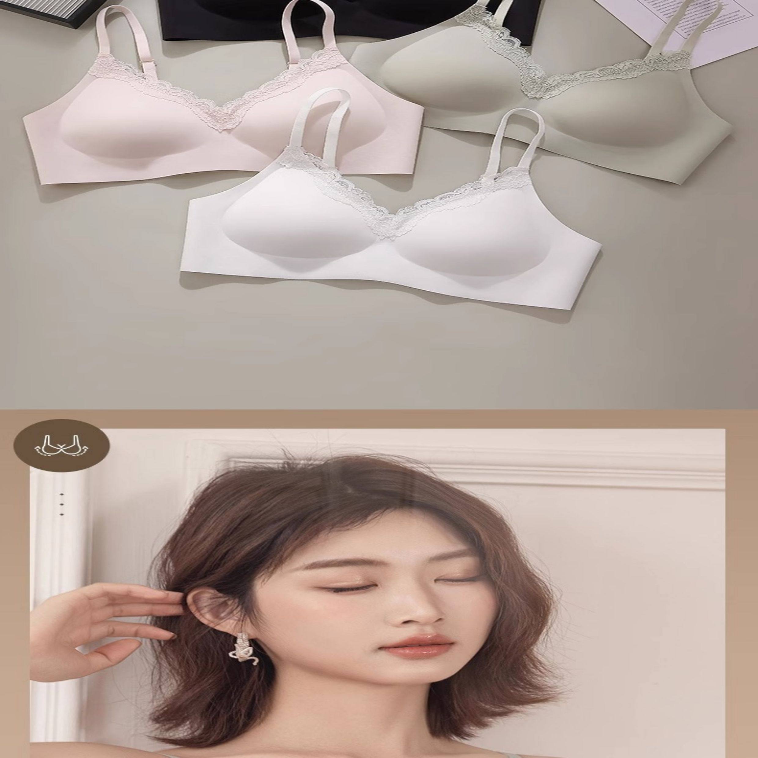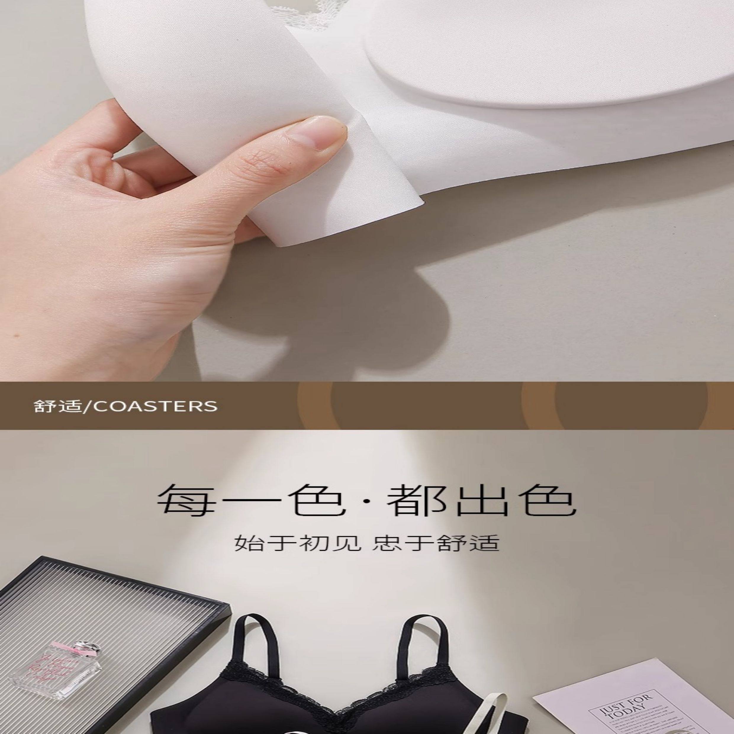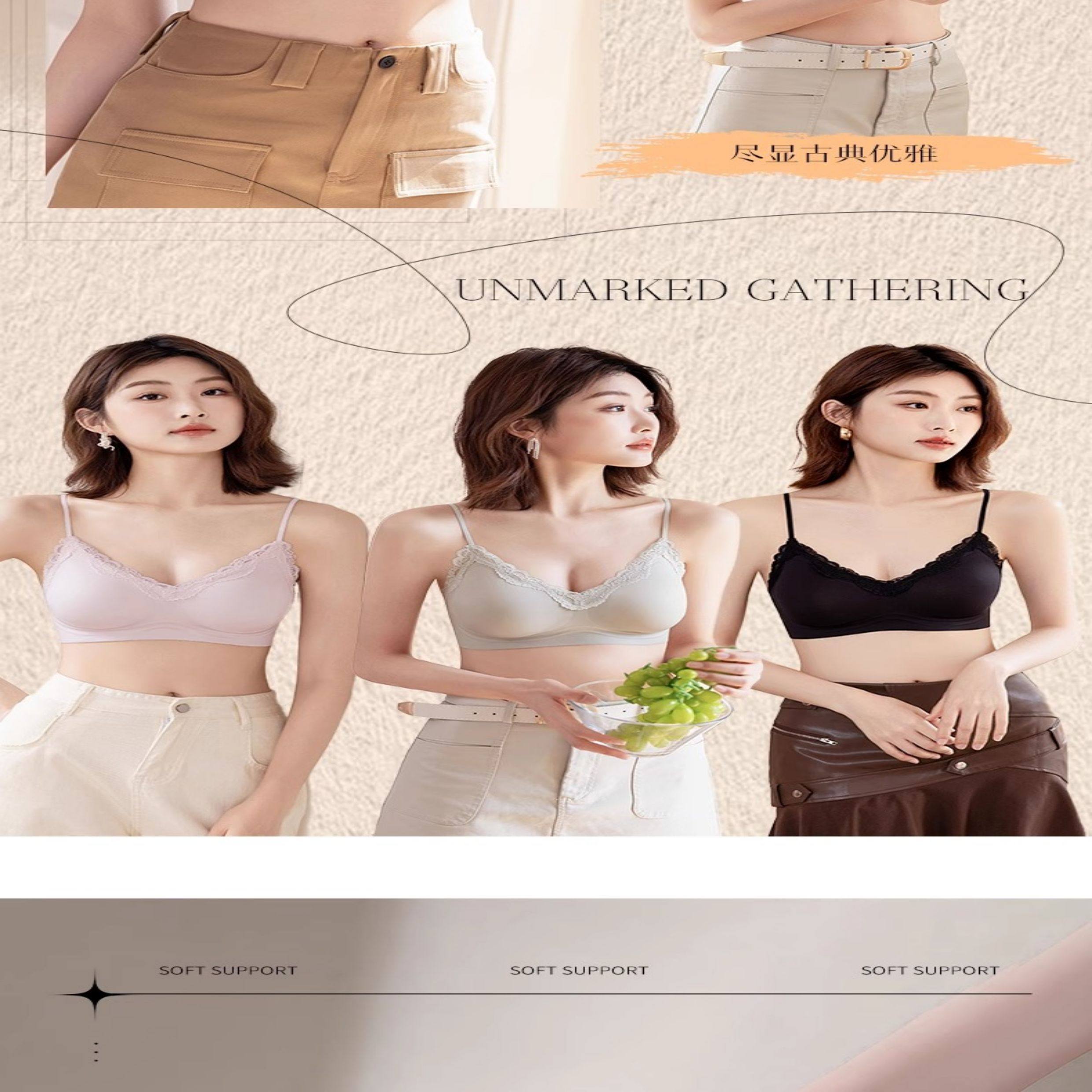 蕾絲內衣女聚攏小胸無痕無鋼圈一體式固定杯細肩帶美背夏薄款文胸