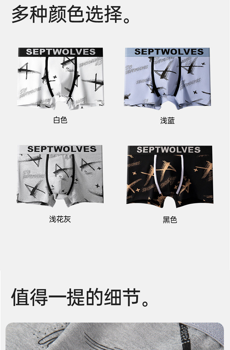 七匹狼青少年男士內褲男生四角純棉發育期男孩學生新款平角短褲頭