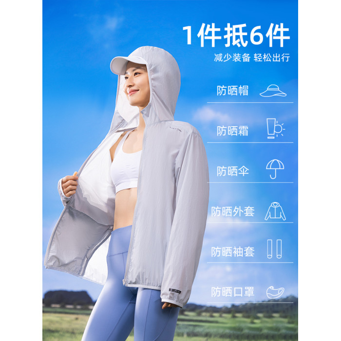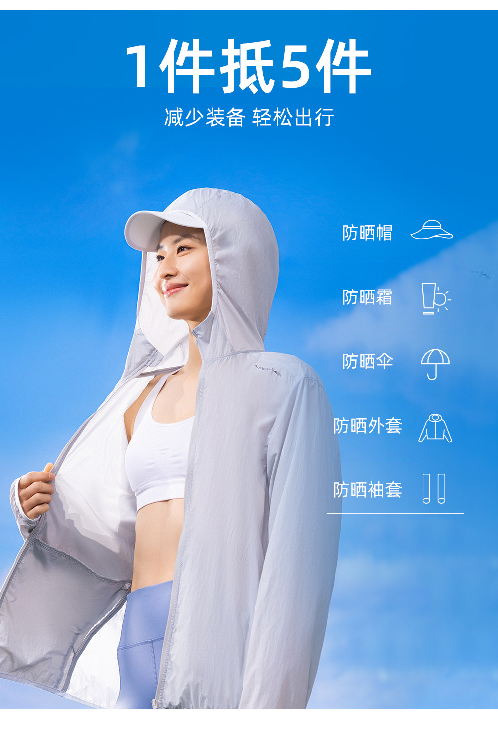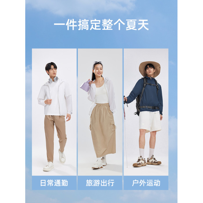 美特斯邦威雲朵防曬服男女同款夏季UPF50輕盈透氣H版顯瘦連帽上衣