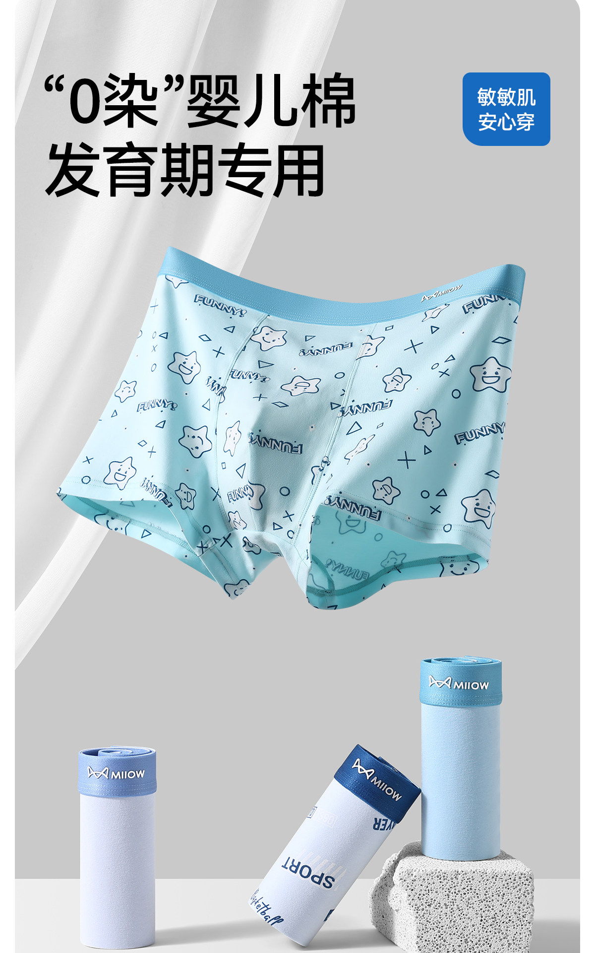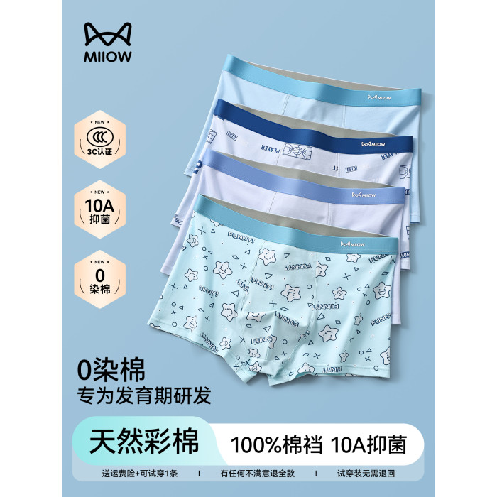 貓人0染純棉青少年內褲男生10A全棉抗菌發育期初高中學生平角短褲
