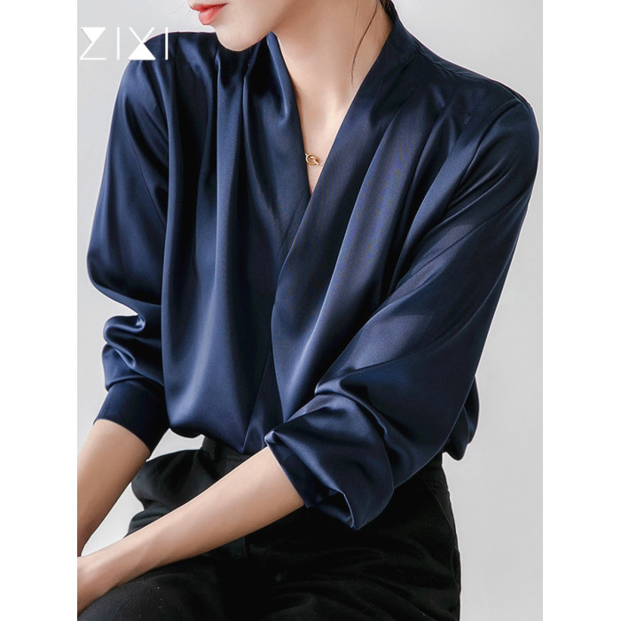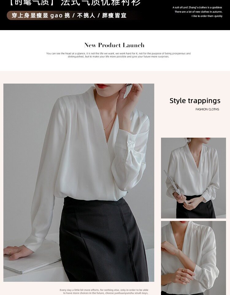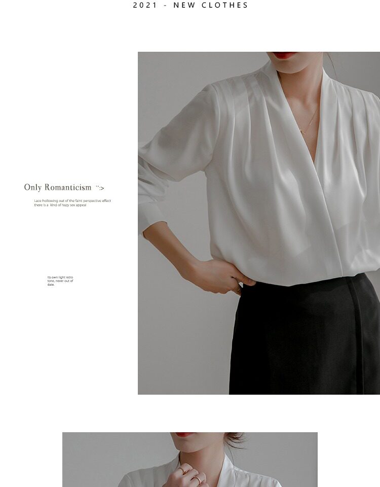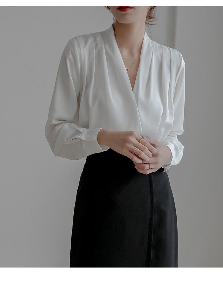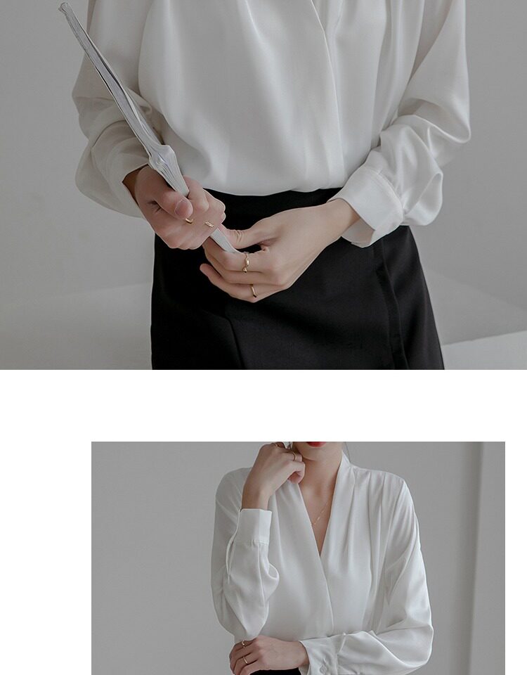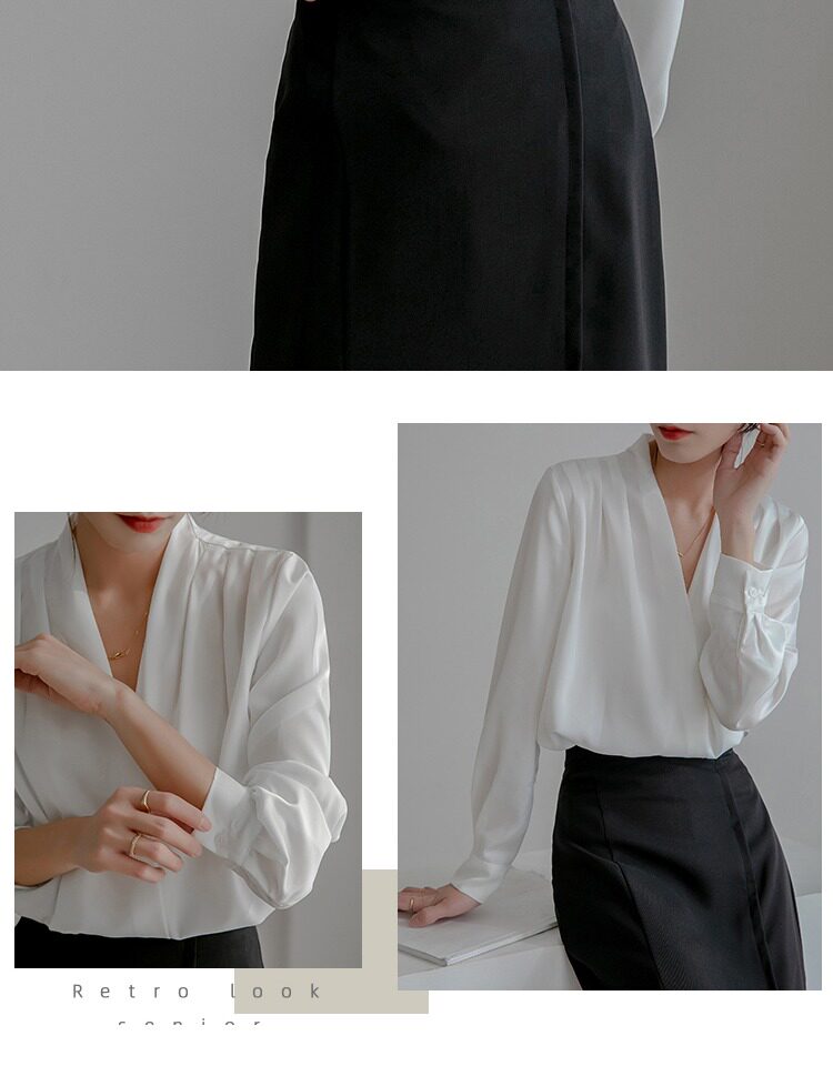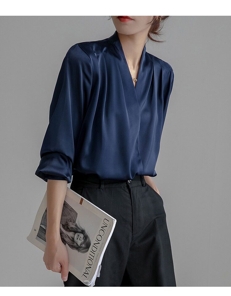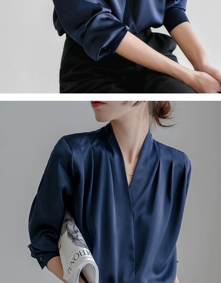 通勤襯衫女2026春季新款職業垂感v領長袖緞面襯衣OL正裝面試上衣