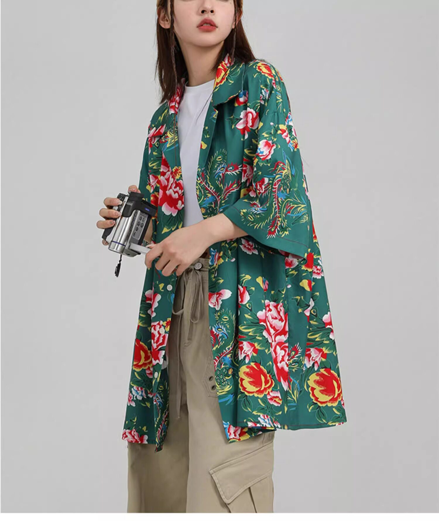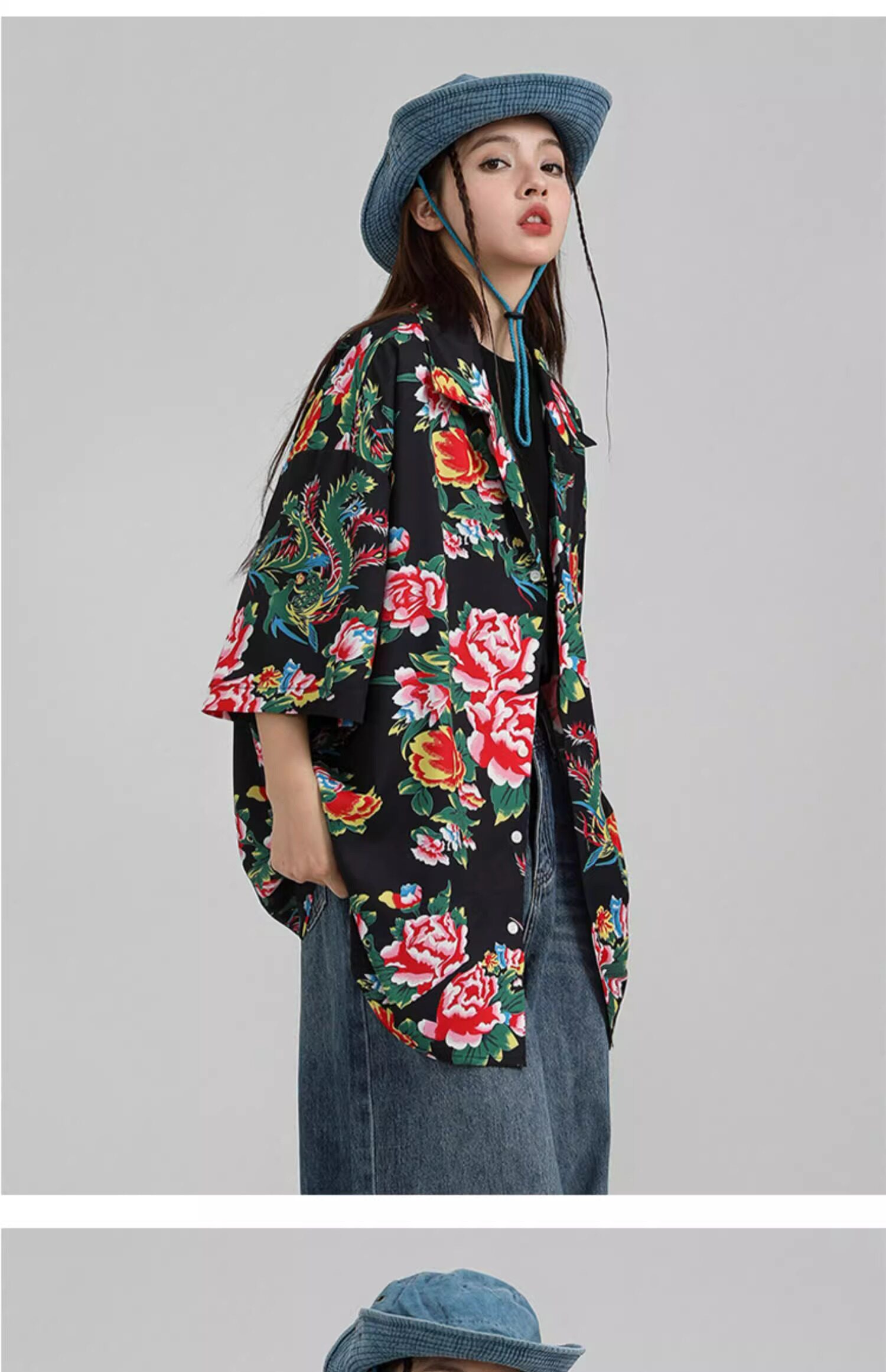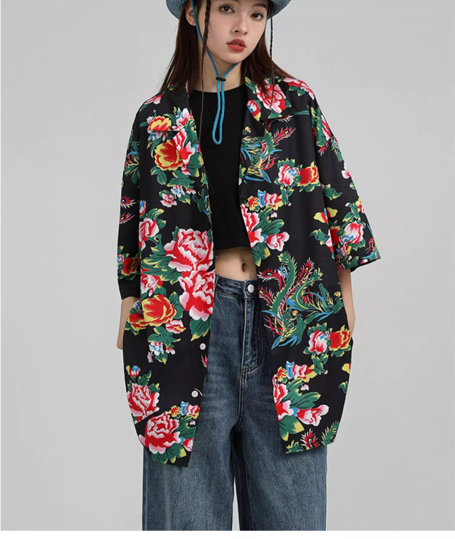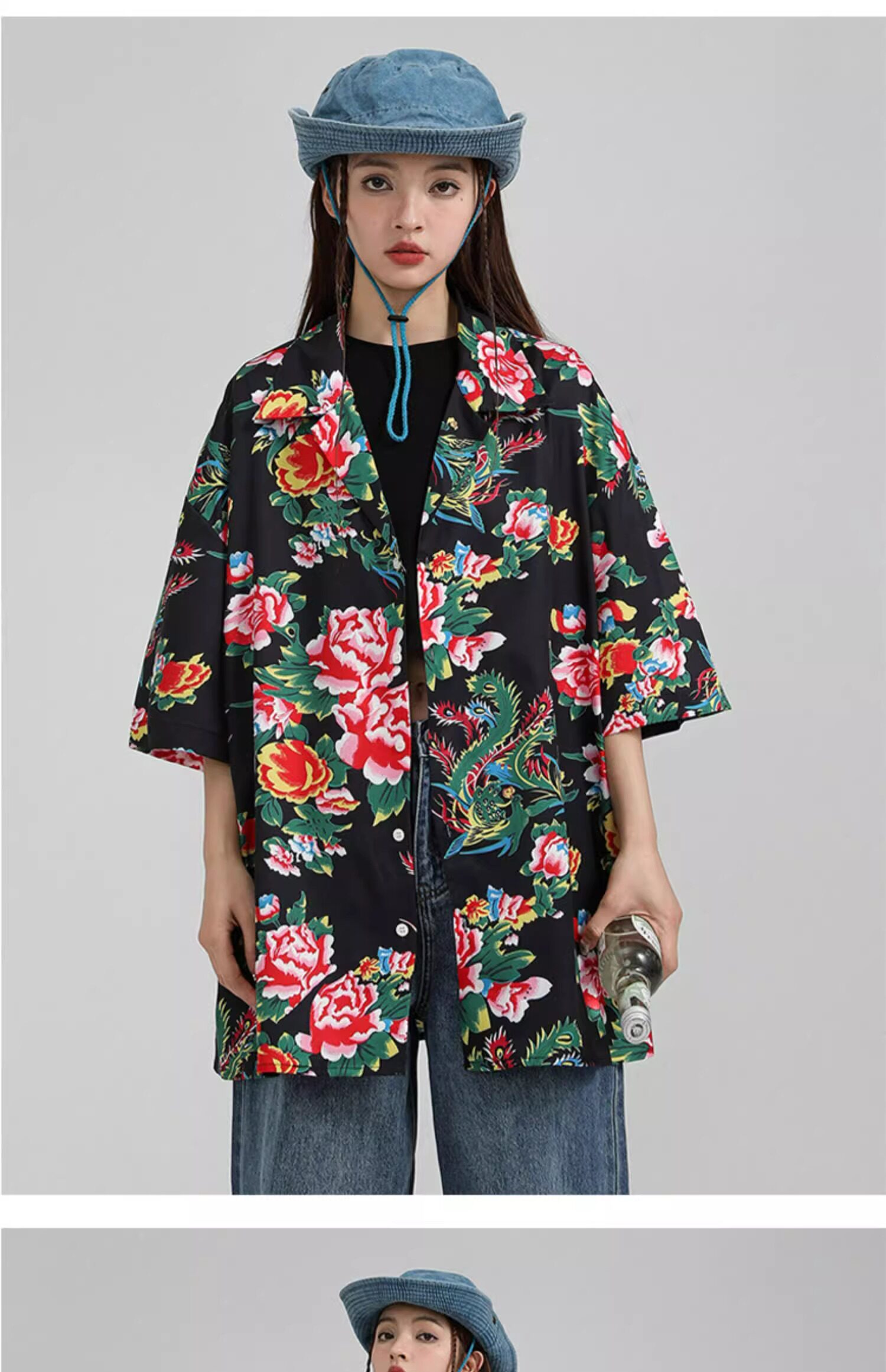 東北大花短袖襯衫女設計感小衆復古新中式國風沙灘襯衣上衣外套夏