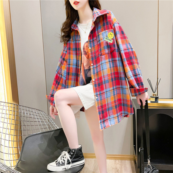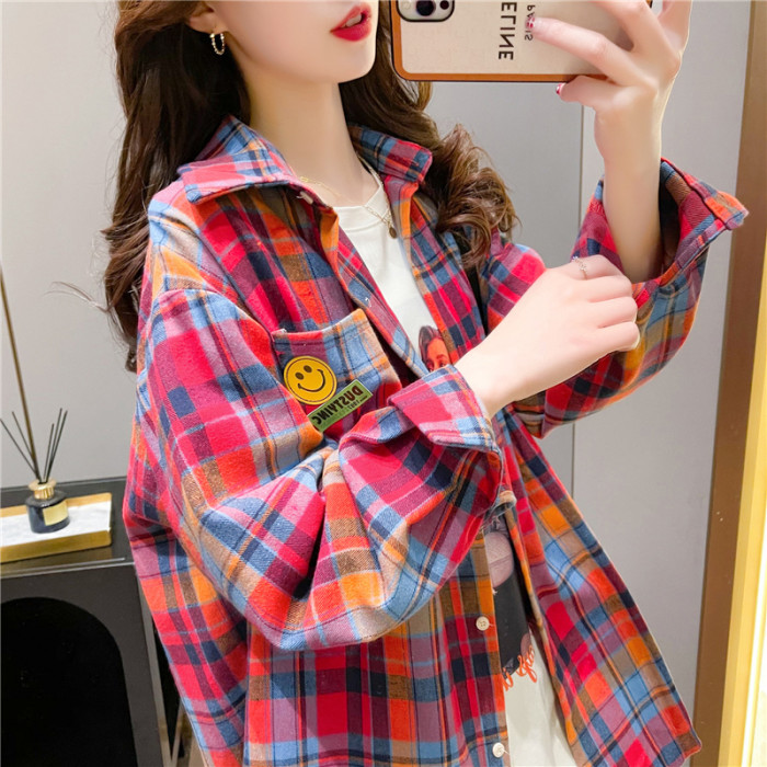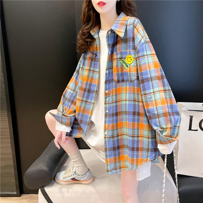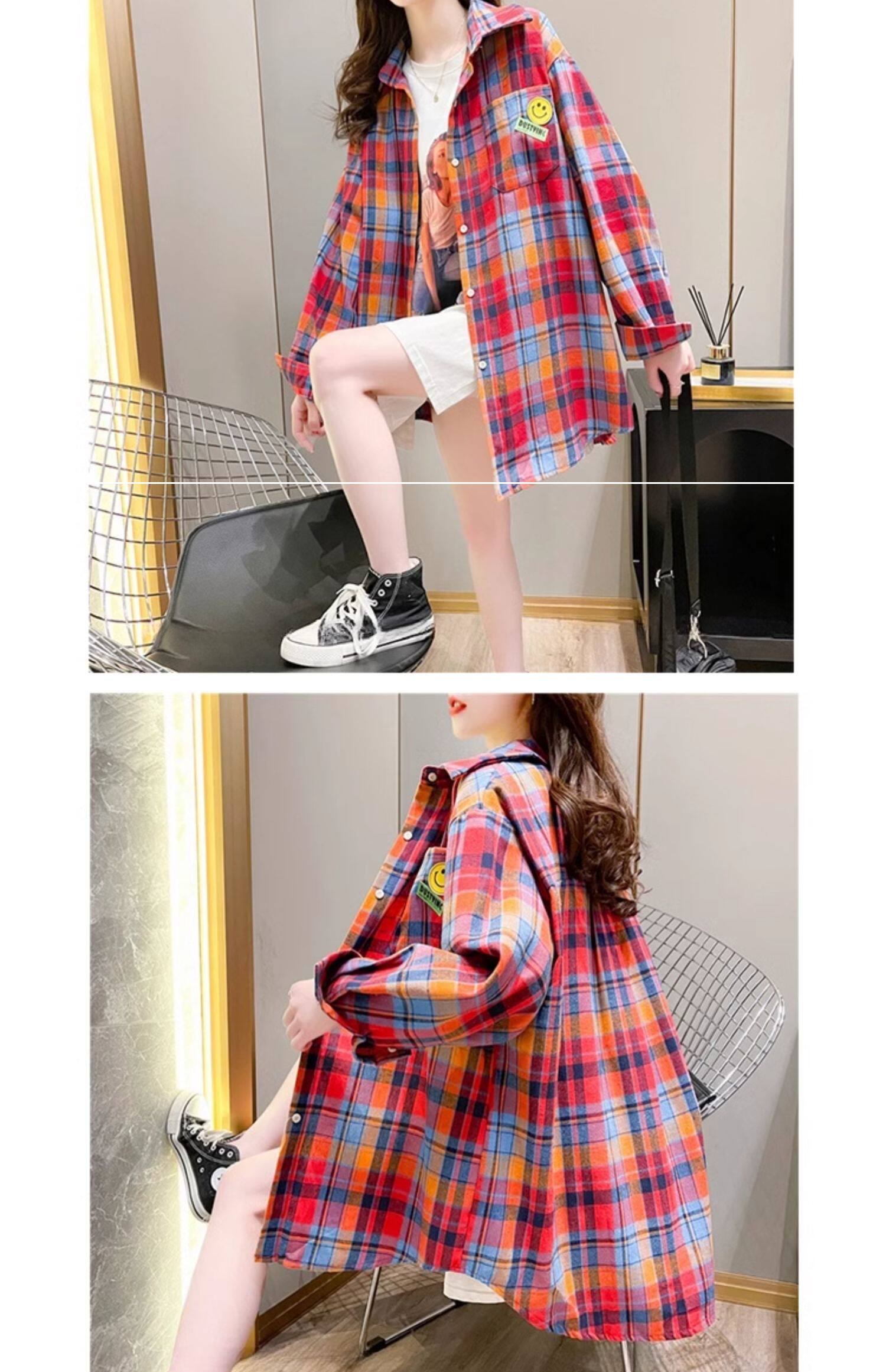 大碼女裝薄款開衫襯衫2026春秋新款設計感小衆中長款格子上衣外套
